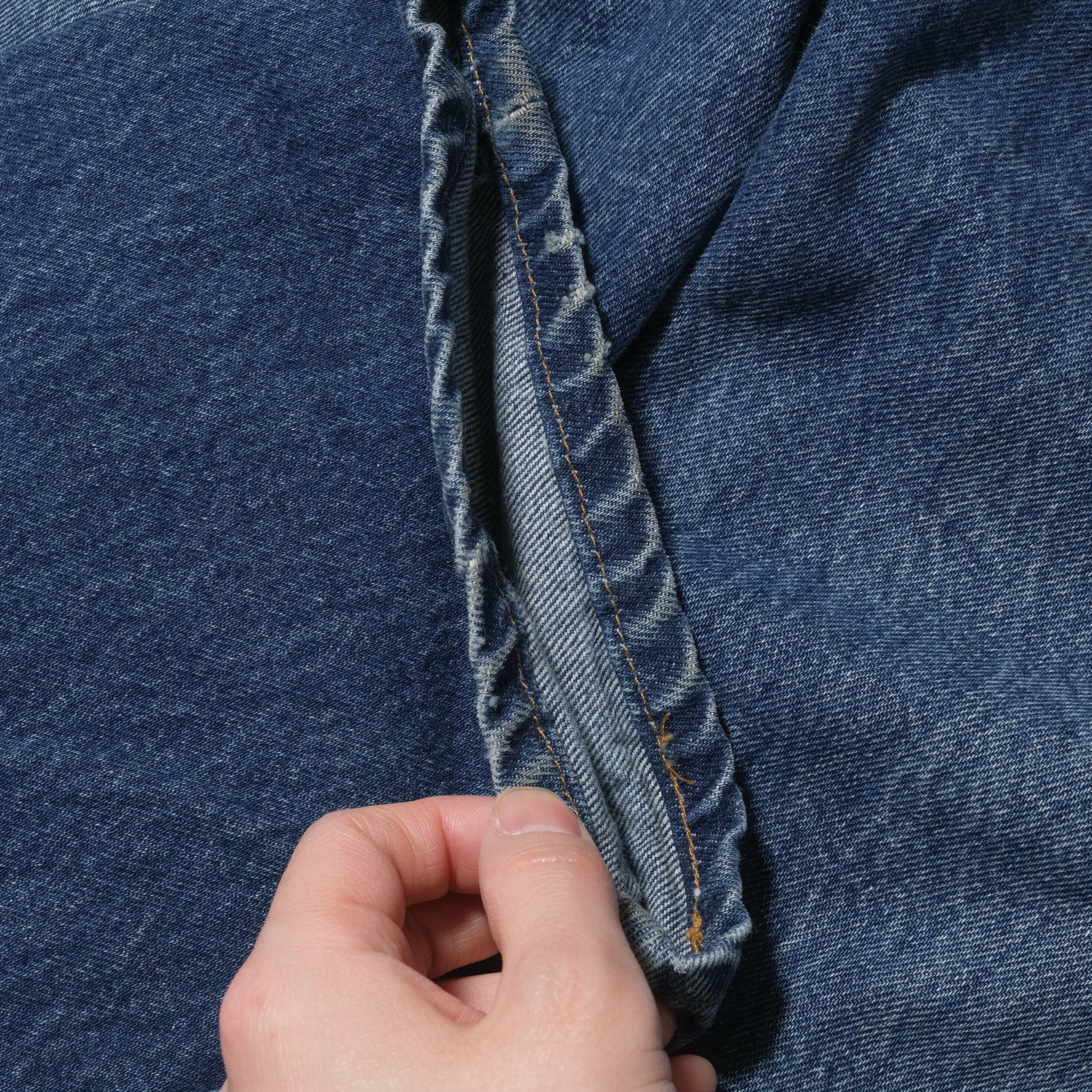 02年、USA製のもの。コントラスト強めではないですが、ナチュラルにヒゲ落ちした良い風合いの個体。501-0000品番ですのでリジッドの状態で販売されていたもの、しっかりとシュリンクが入り実寸で36x29.5の素晴らしいサイズに仕上がっております。
