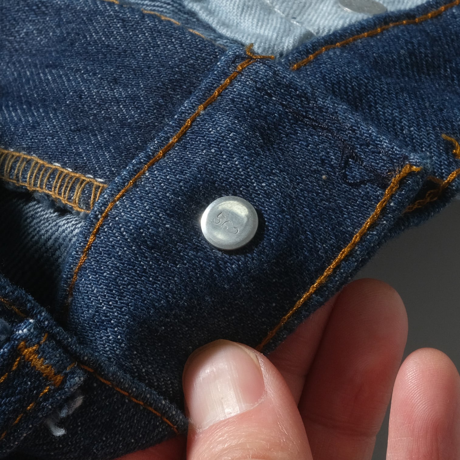 ボタン裏は562の表記、70'sの646、517などでポリ/コットンのデニムで稀に見られる工場番号ですのでここも辻褄が合います。