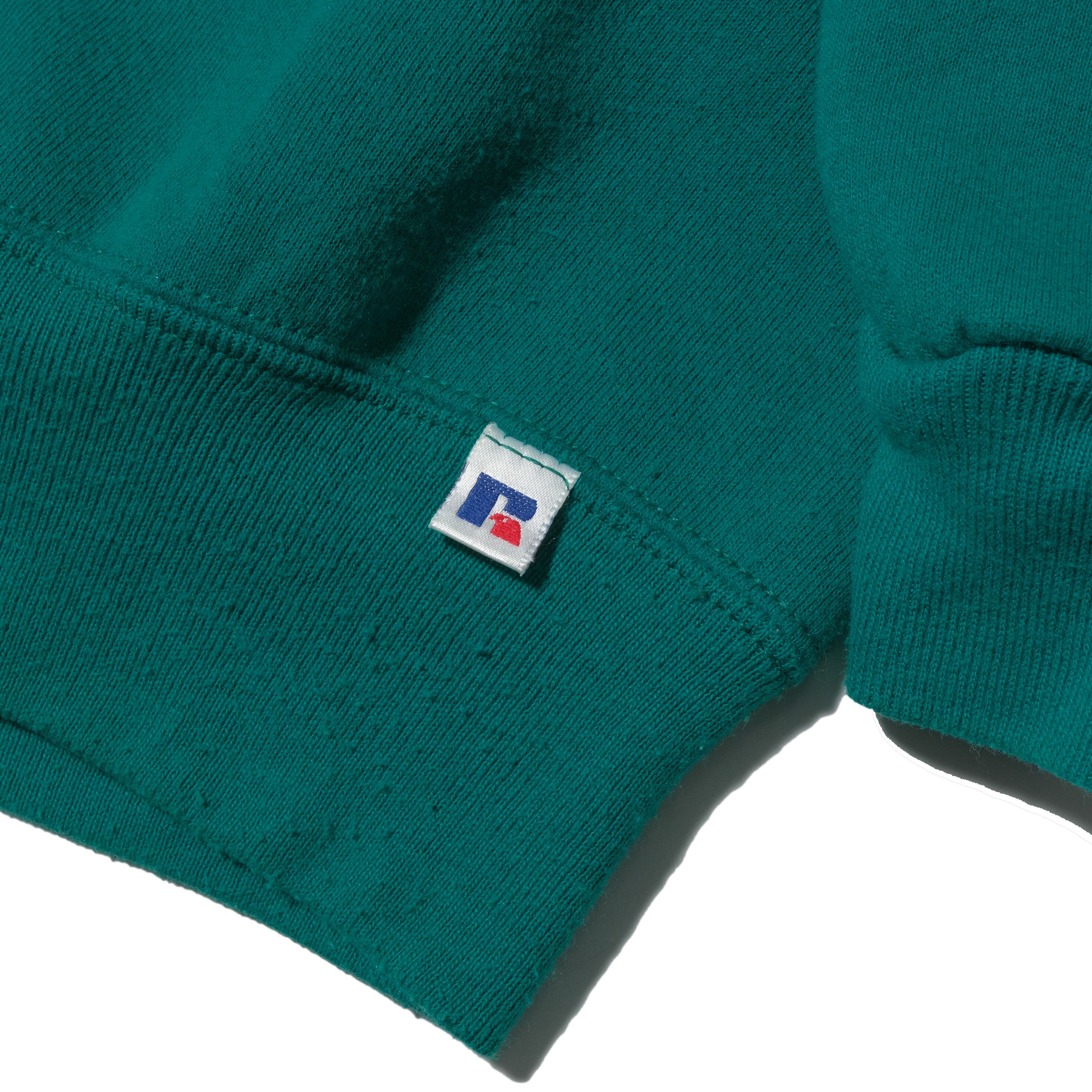 定番中の定番、USA製のラッセル。エメラルドグリーンのカラーが印象的な一枚。