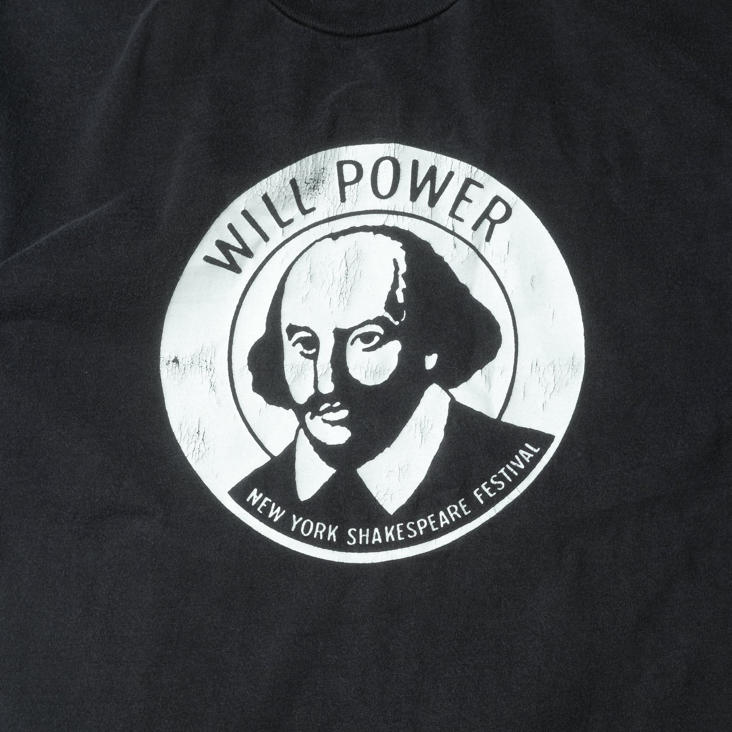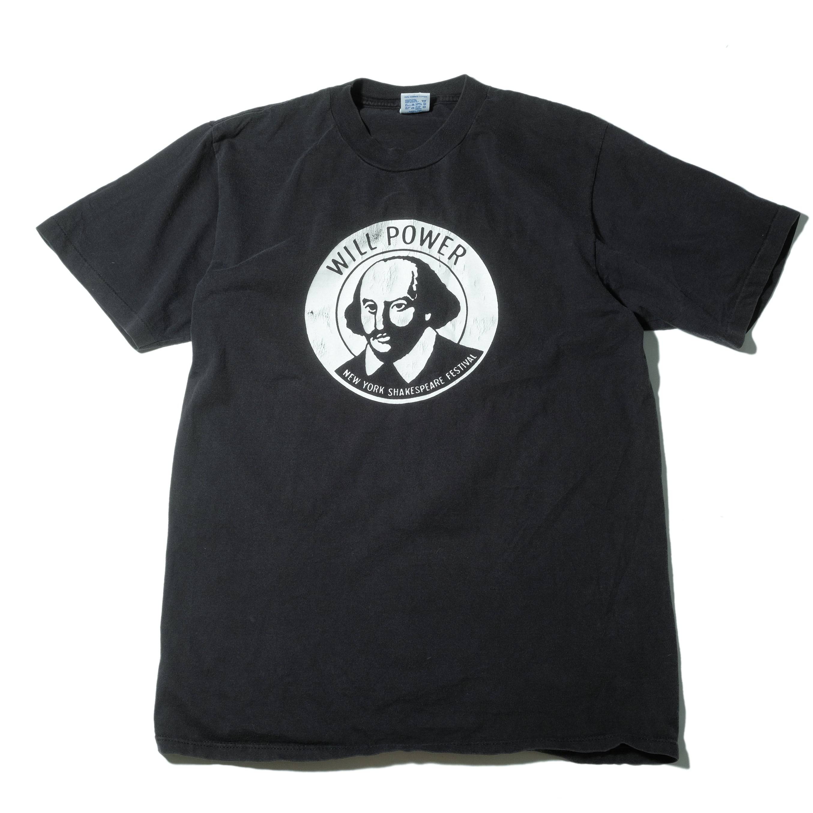 New York Shakespeare FestivalのTシャツ。胸にはシェイクスピアの顔が描かれた非常に素晴らしいデザイン。古着らしさ全開のお好きな方の多そうなデザインです。