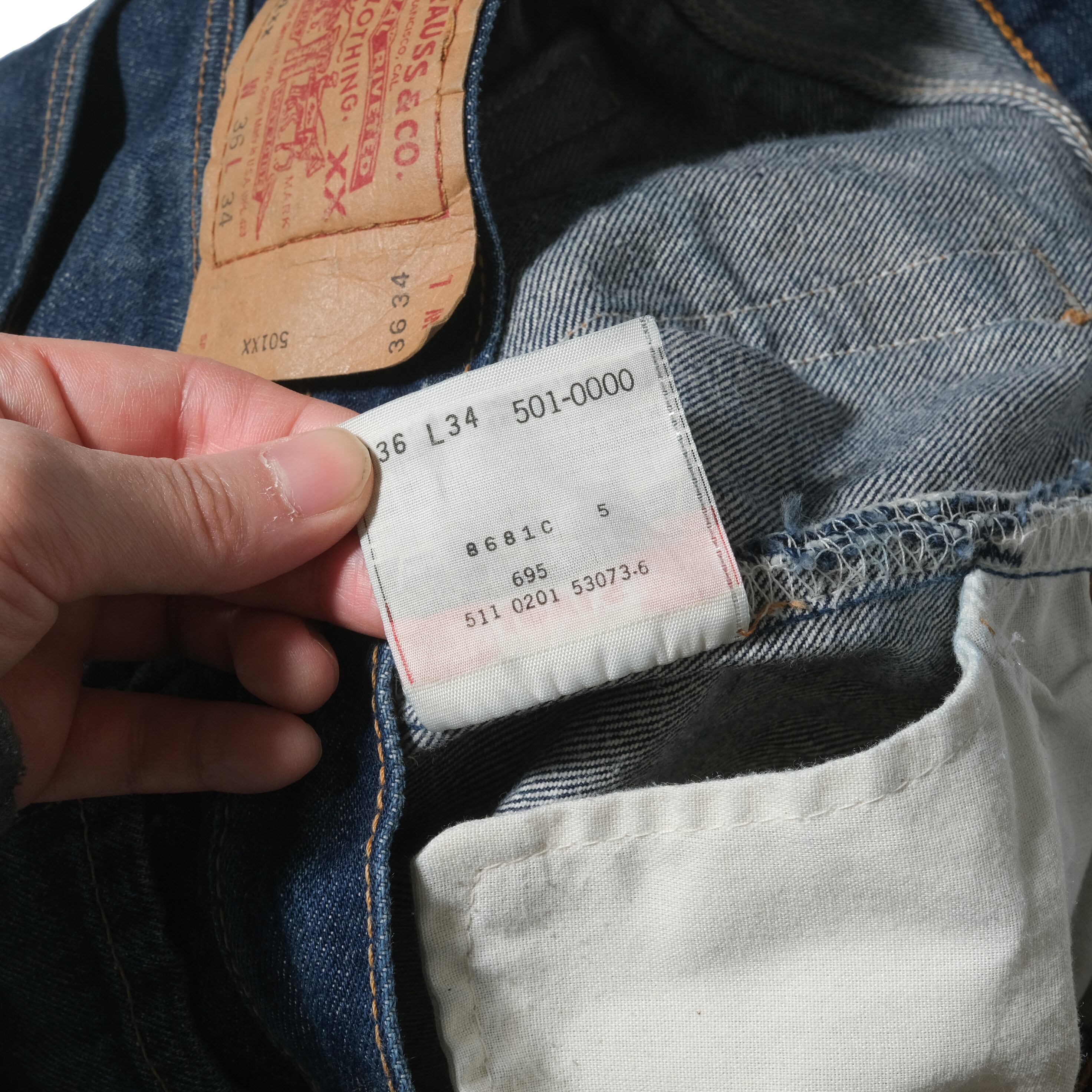コントラスト強めの色落ちのものでお探しの方、こういったいわゆる"根性穿き"された個体は珍しいですのでぜひご検討ください。