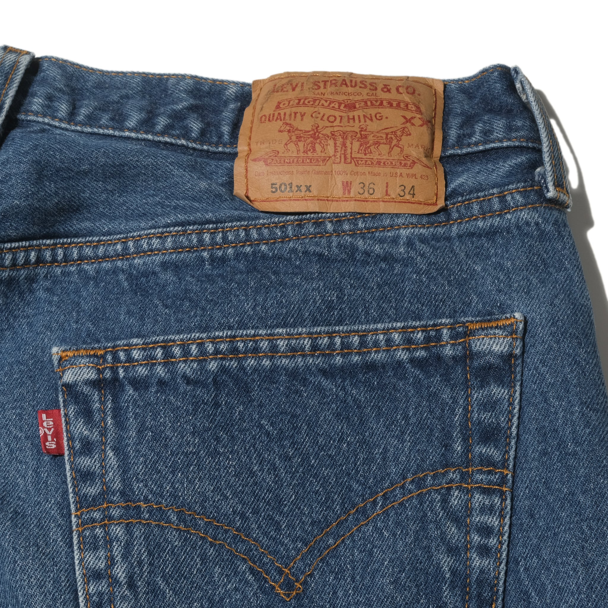 96年、USA製のもの。まだある程度色味の残った良い状態の個体。パッチは501xx表記ですので品番は501-0000。リジッドの状態で販売されていた個体になります。