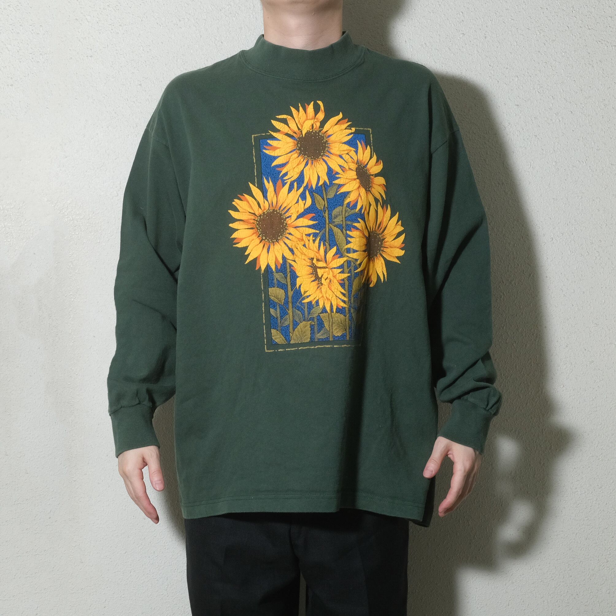 90's Sunflower printed L/S T-shirt made in USA [XL]