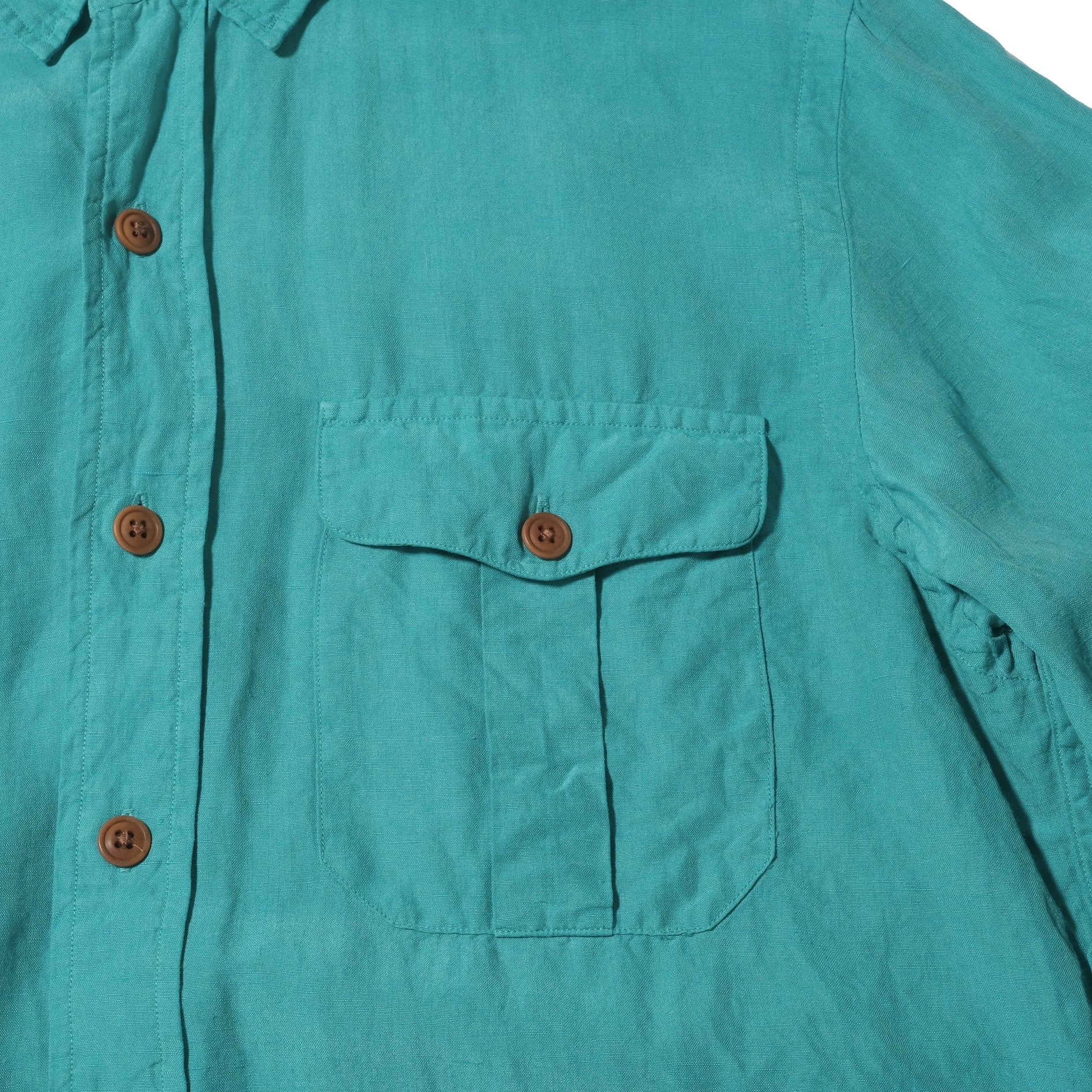 シルク/リネン混紡の一枚。このタイプでは定番のフロントにフラップ付きのポケットのくるデザイン。