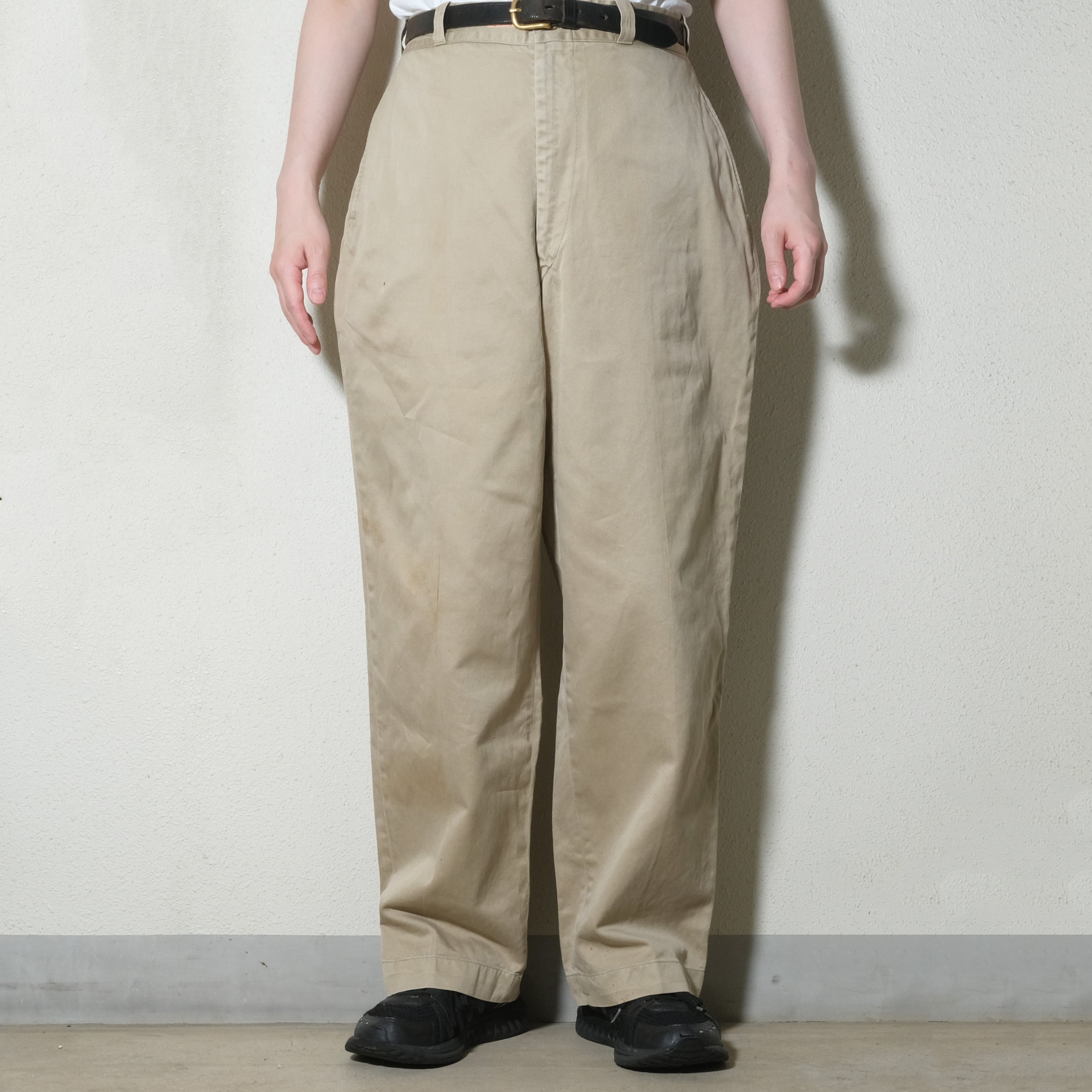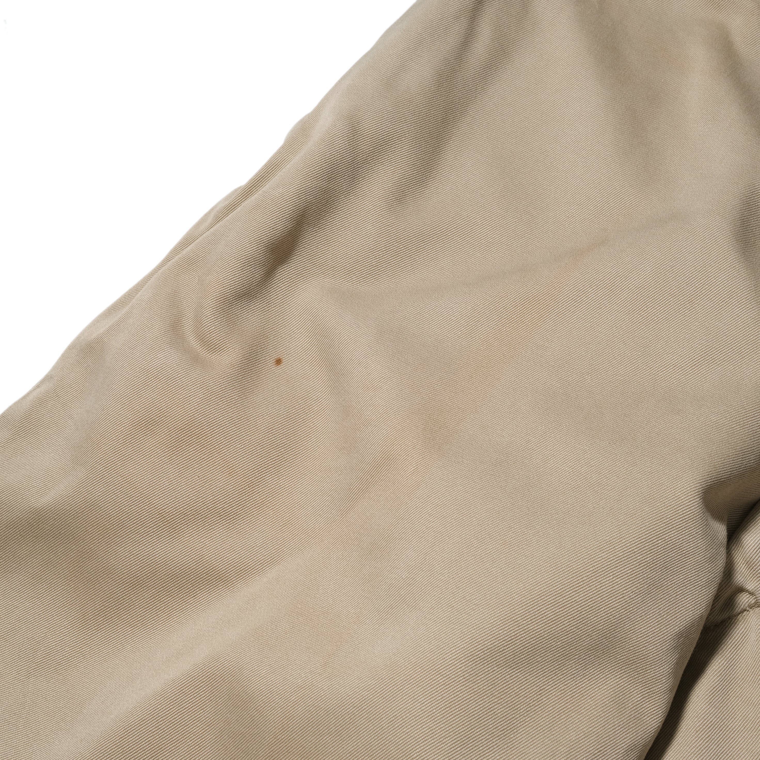 【状態】着用感、スレ。全体的にヨゴレ、ヤケなどのビンテージミリタリー特有の着用感はございますが、当店でなるべく落とせるようクリーニングを施しました。右足裾付近に0.5mmほどのピンホール。