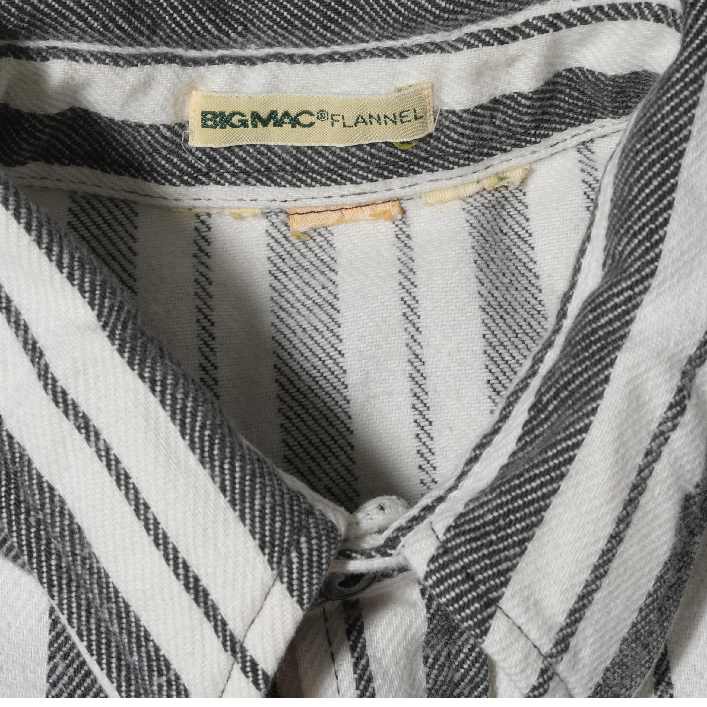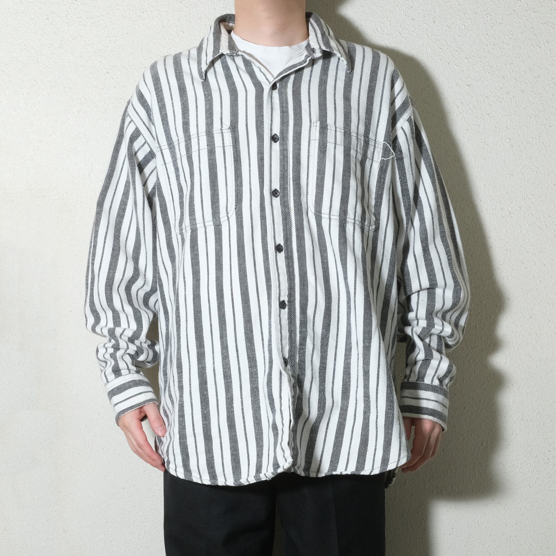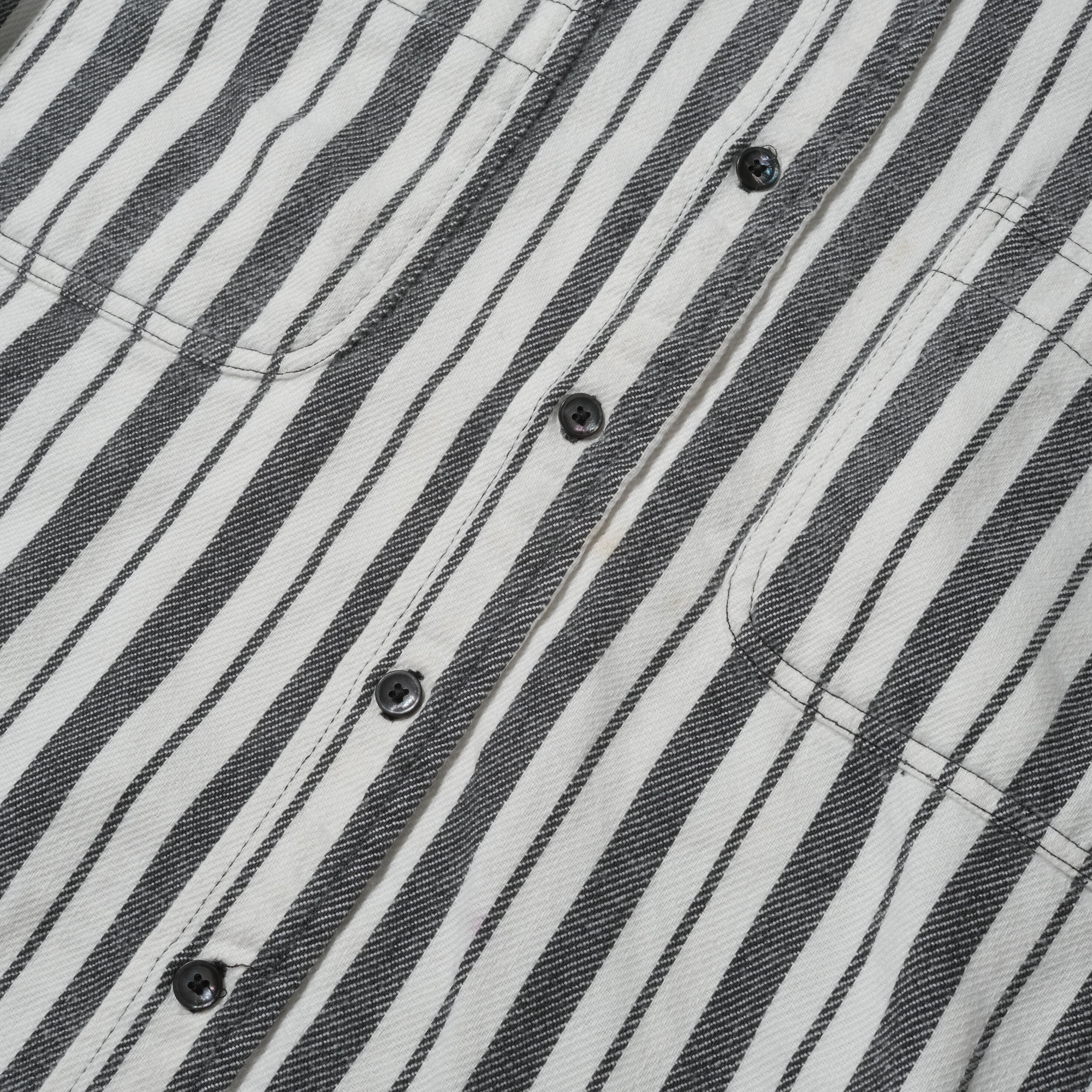 タグが取れておりますがお好きな方はお分かりの通り、残ったタグからSt.John's Bayのものとわかる一枚。モノトーンのストライプのパターンでヘビネル生地、珍しい柄、配色です。