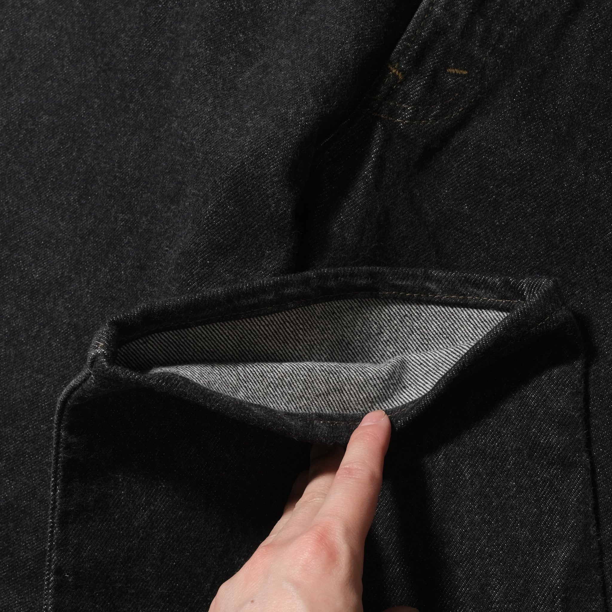 ただそもそも仕入れをした段階で裾がカットオフされていた個体であったため、その中で最大限長さが残るよう当店にて裾上げをしております。