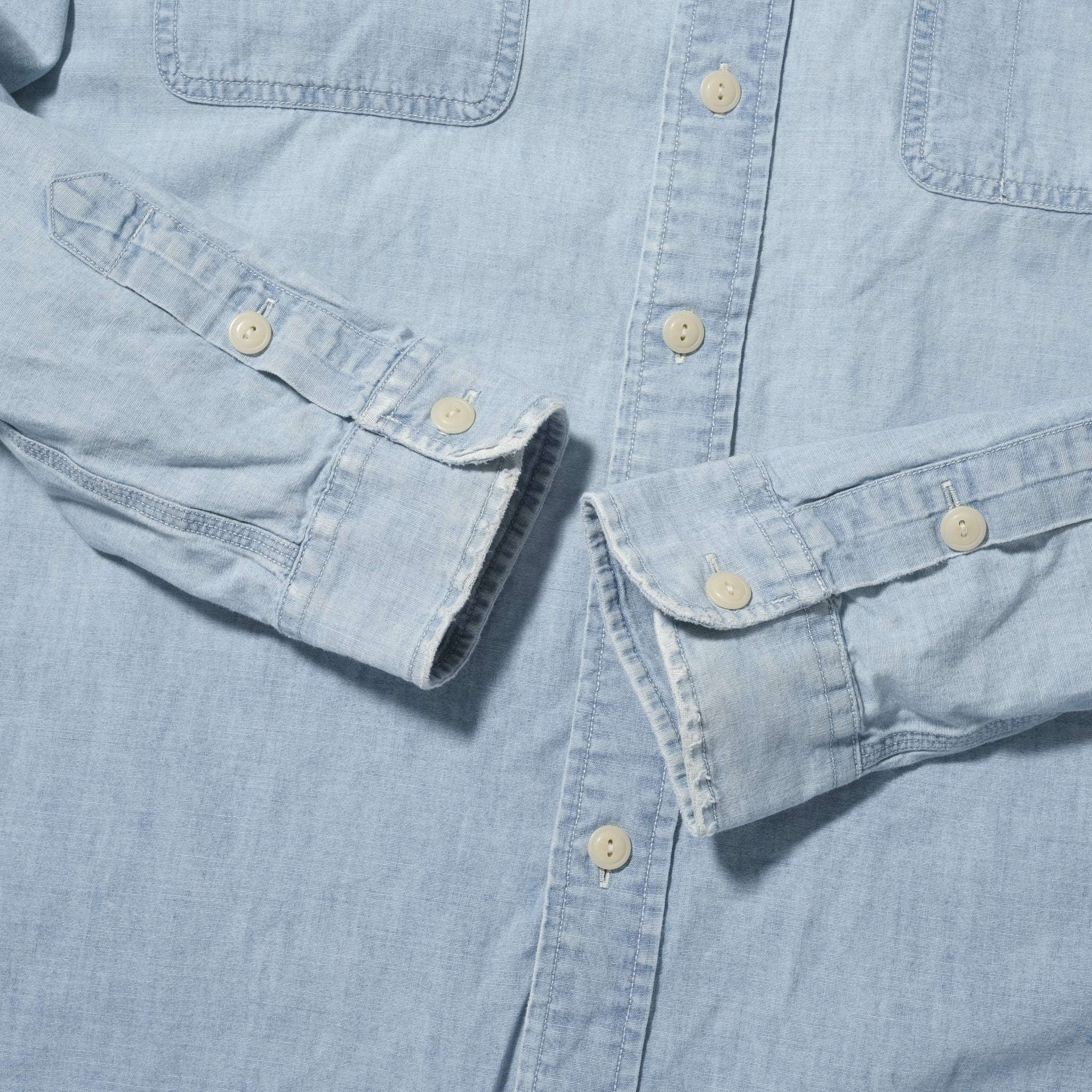 こちらはDUNGAREE WORK SHIRTというモデル名のついたガチャポケ仕様のシャンブレーシャツ。フェードした質感が非常にいいですね。