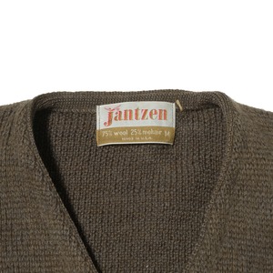 ブランドはJantzen、モヘア/ウール混紡の一枚。毛足が長いというものではないですが、ポケット付きで肉厚な作り、個人的にはフロントメタルボタンがかなりグッときました。