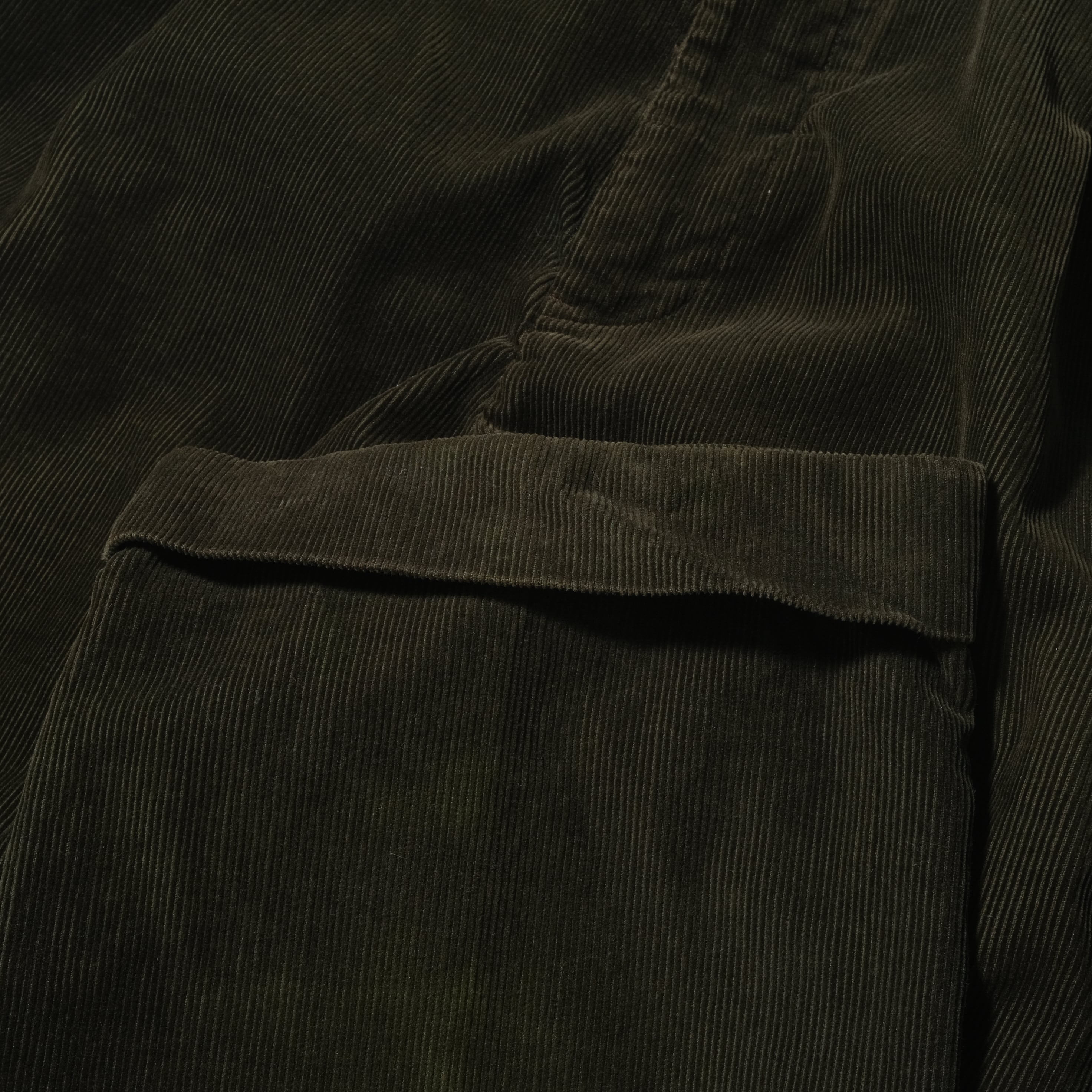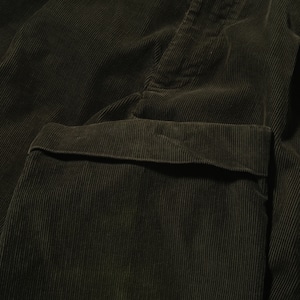 カラーは暗めのオリーブ、そしてしっかりとツータックの入る仕様。近年相場の上がってきているアイテムですがやはり一本持っておくと非常に使いやすくおすすめです。