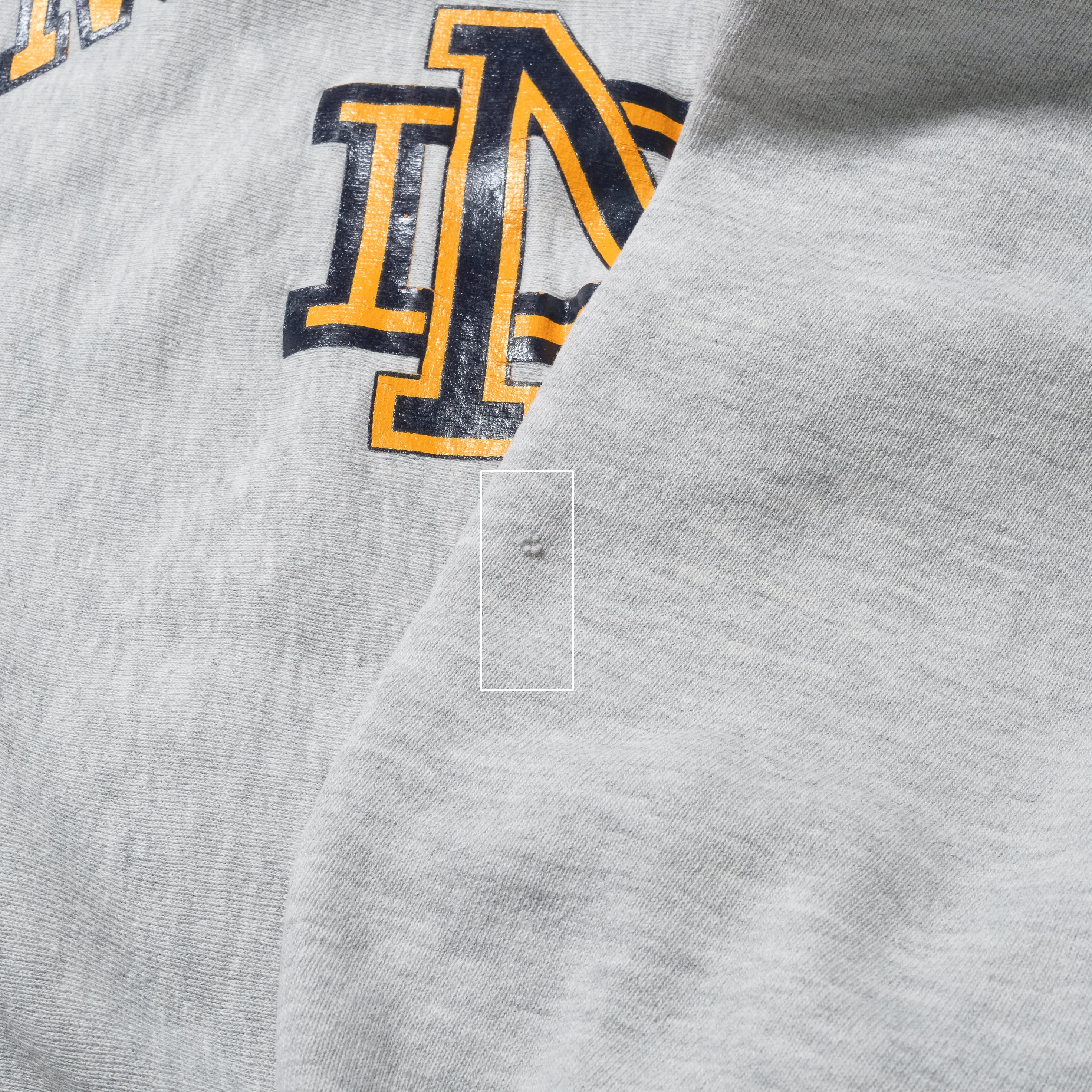 90'sのUSA製、グレーボディ。ノートルダム大学のカレッジプリント、このプリントはご覧になったことのある方も多い有名なプリントかと思います。