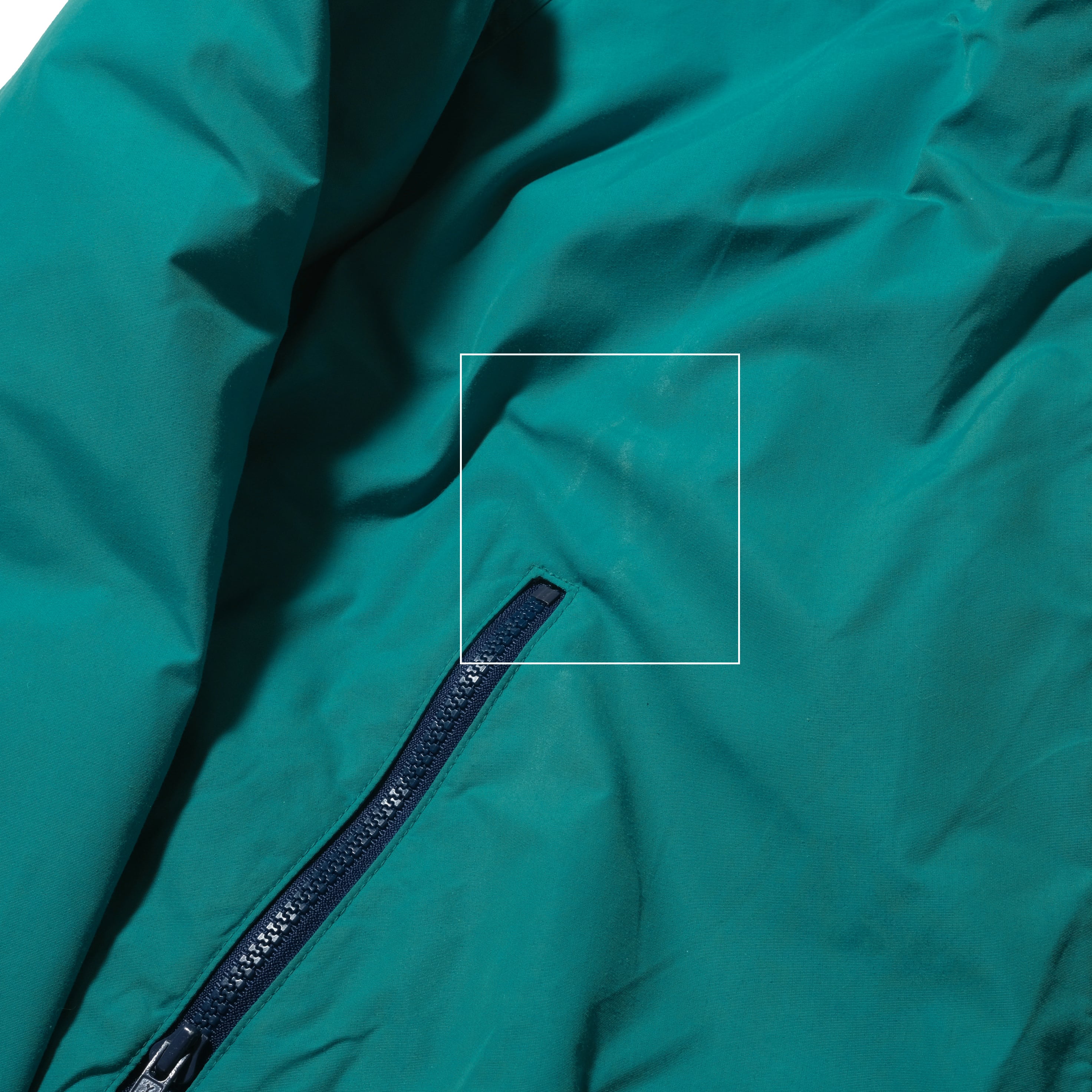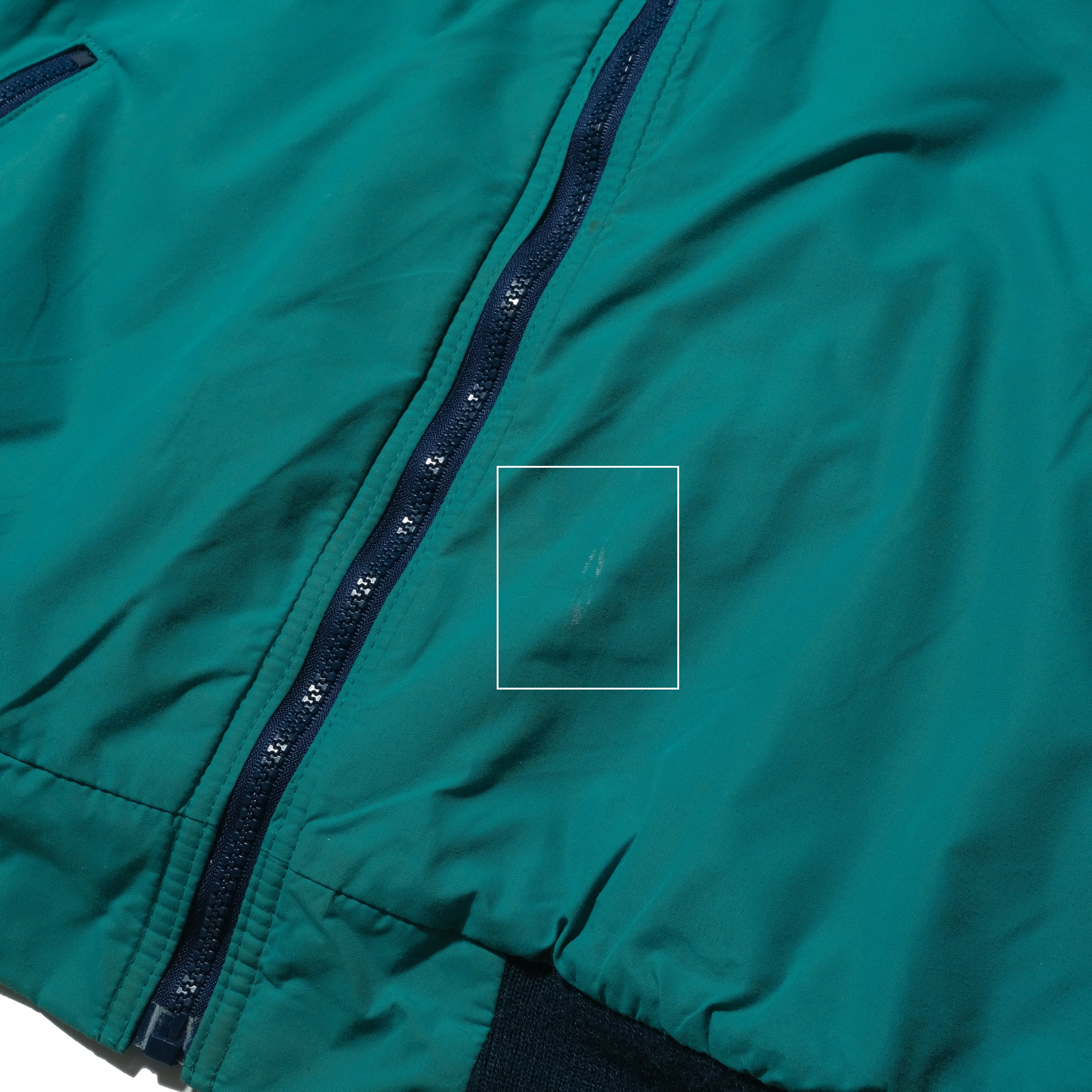 しっかり80'sの一枚、表記でXLのサイズ、この年代のエメラルドは彩度の低い感じのクールなカラーをしております。