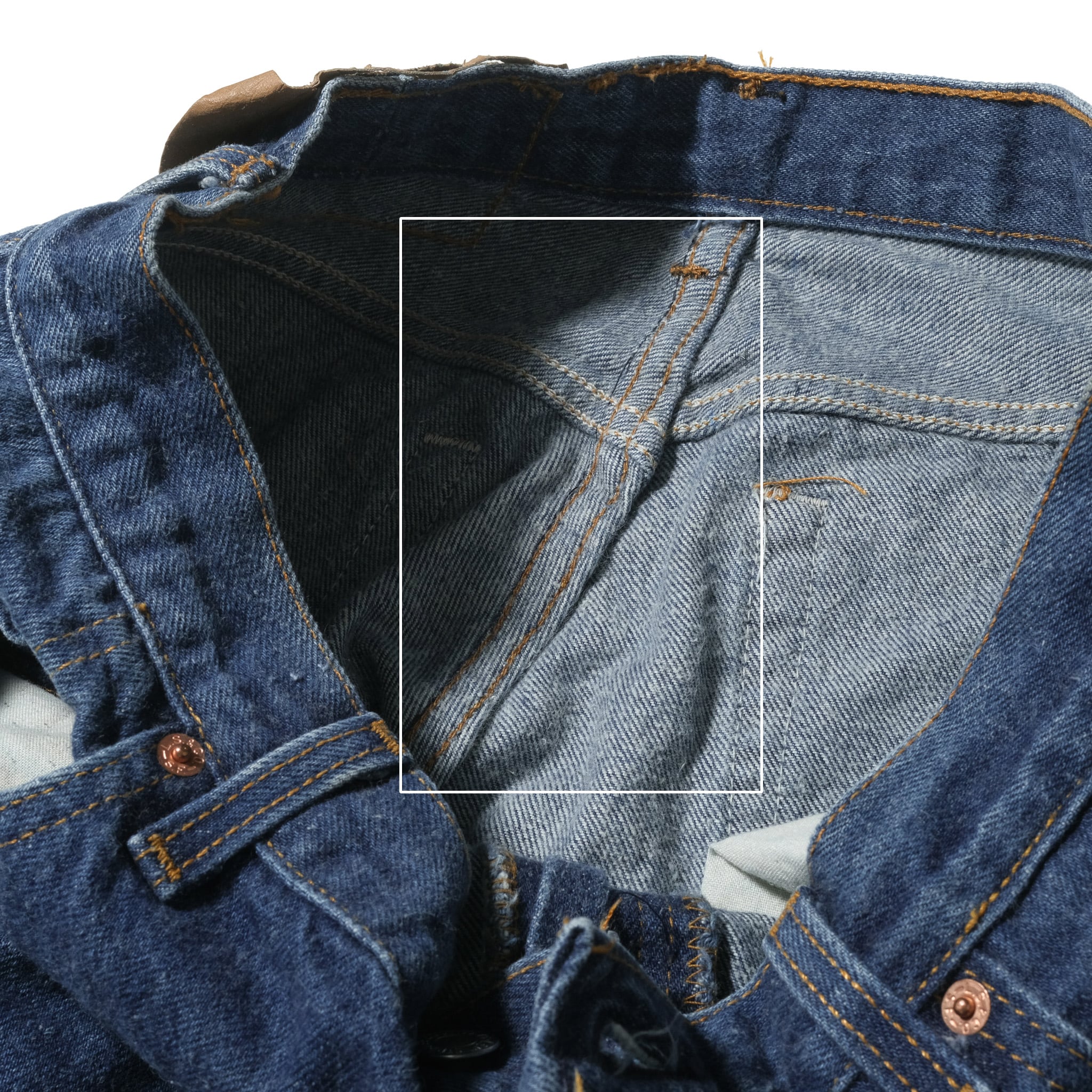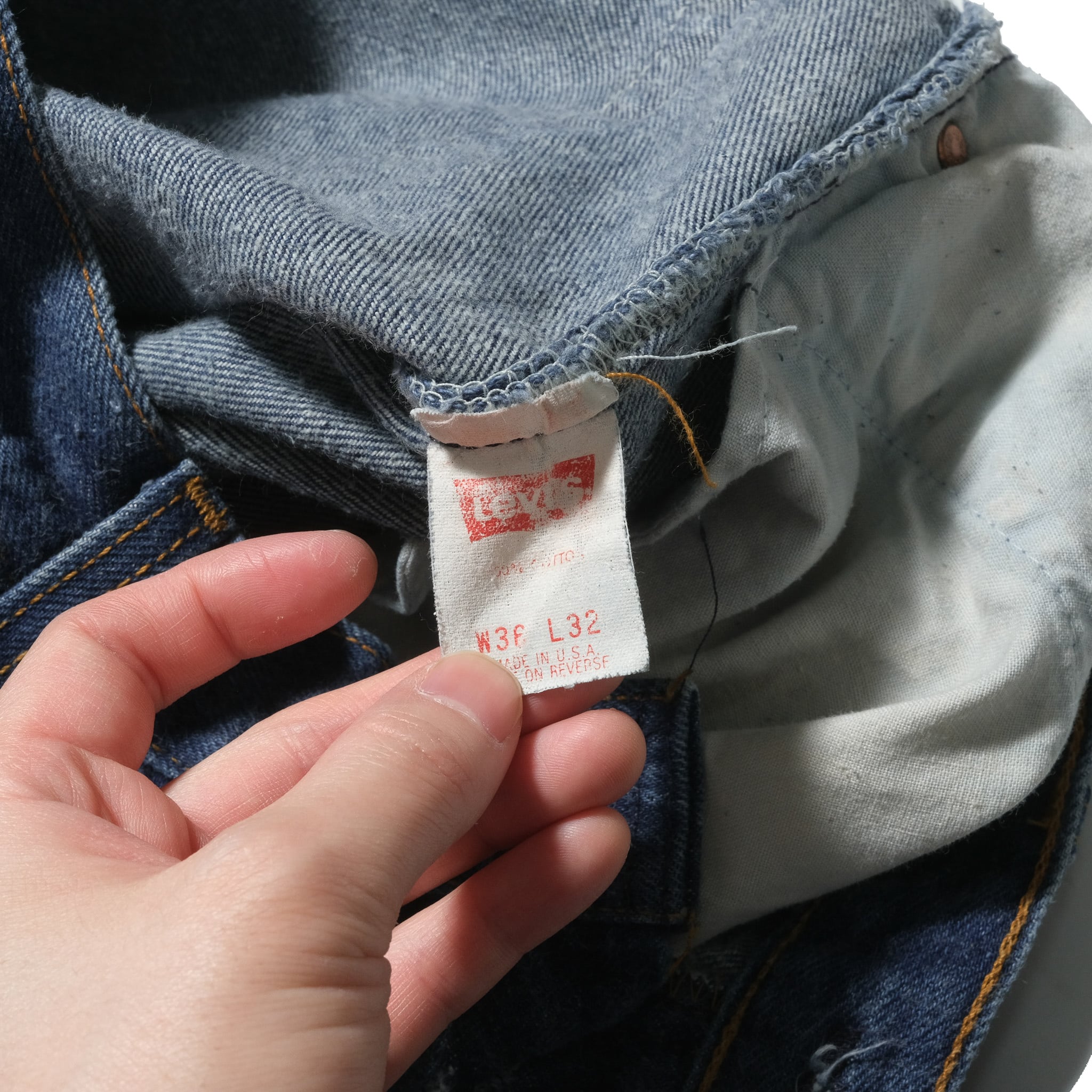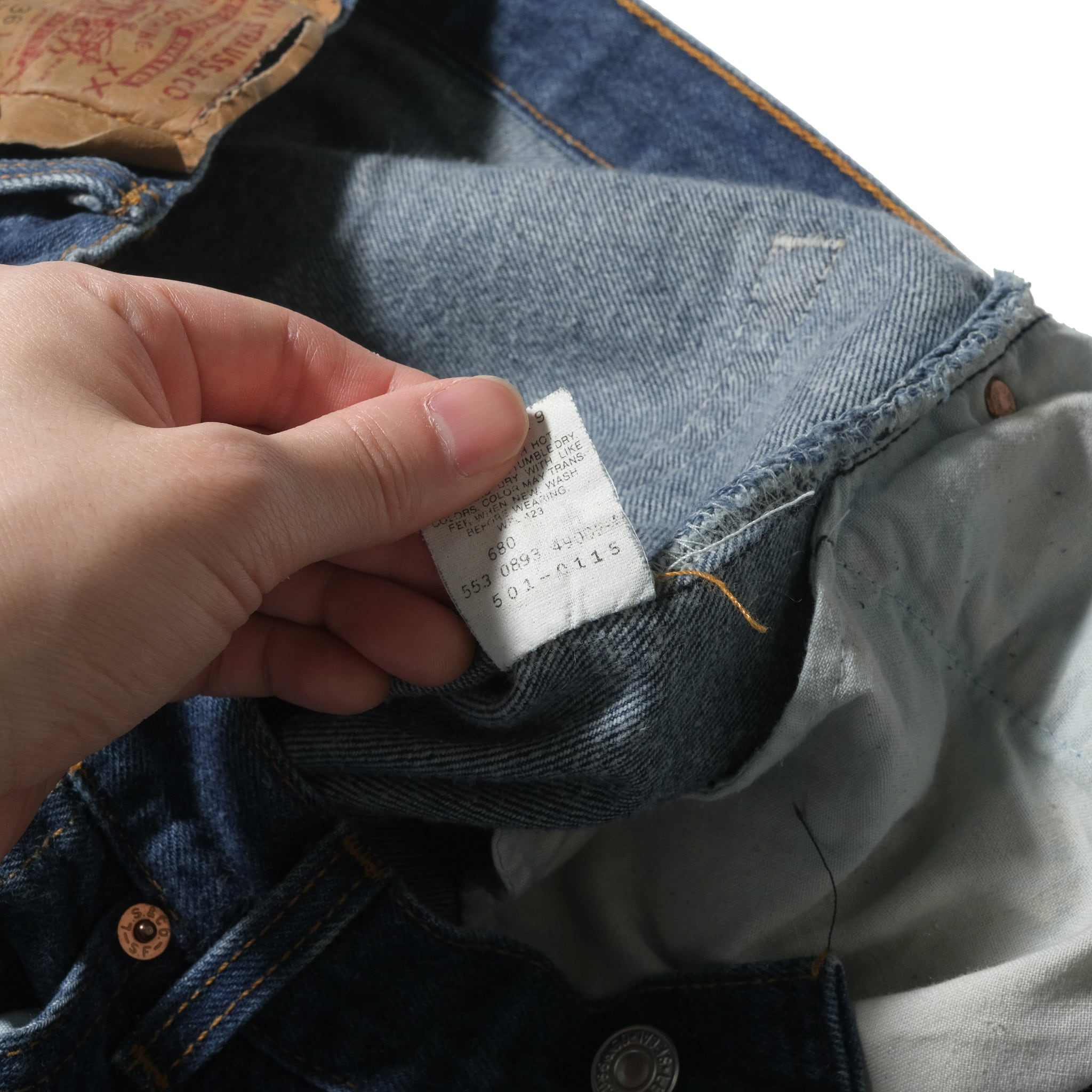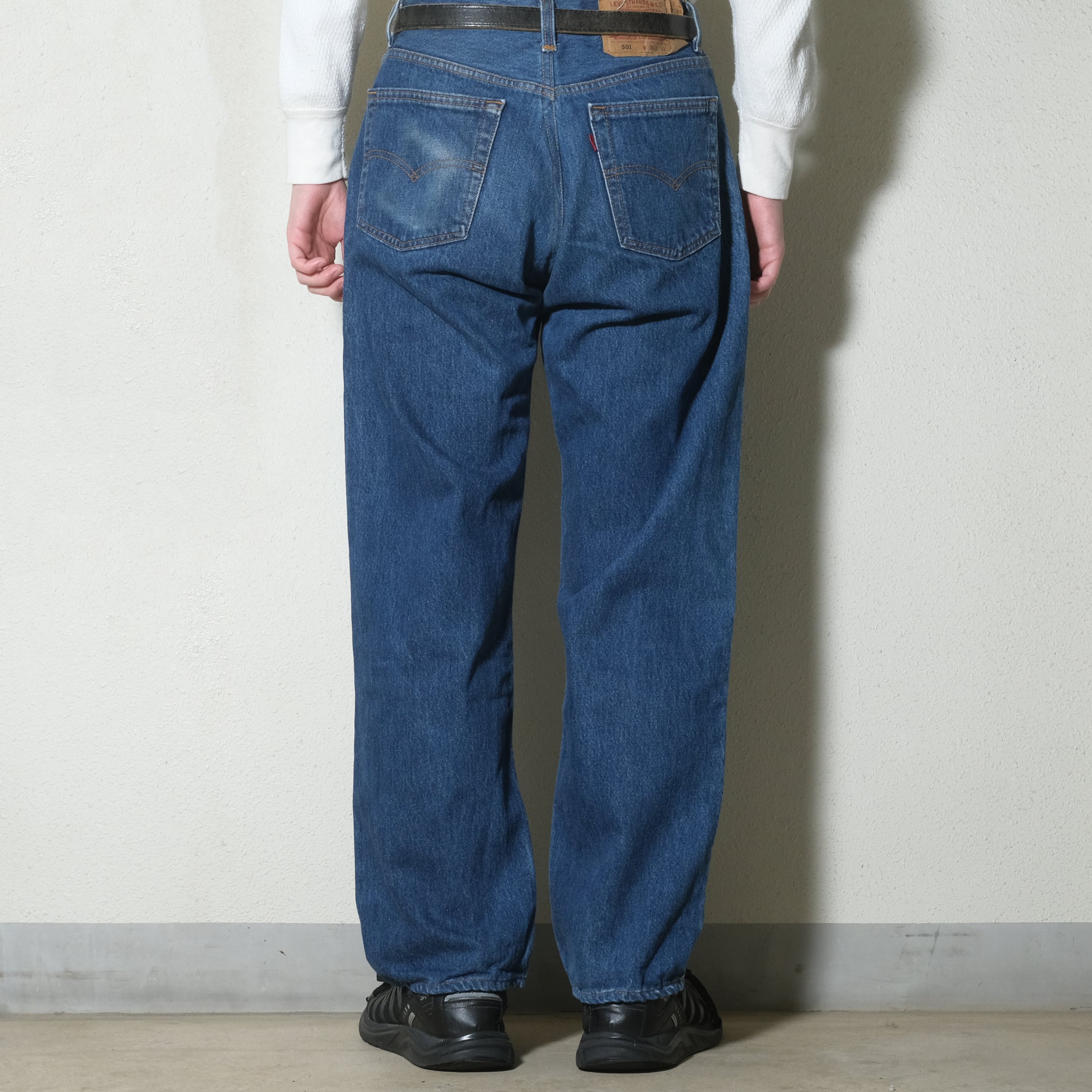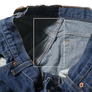 先に触れておきますと、腰回りの部分が詰められている個体、脚部の太さはそのままですので501のシルエットをジャストめのウエストで楽しみたい方向けの個体になります。