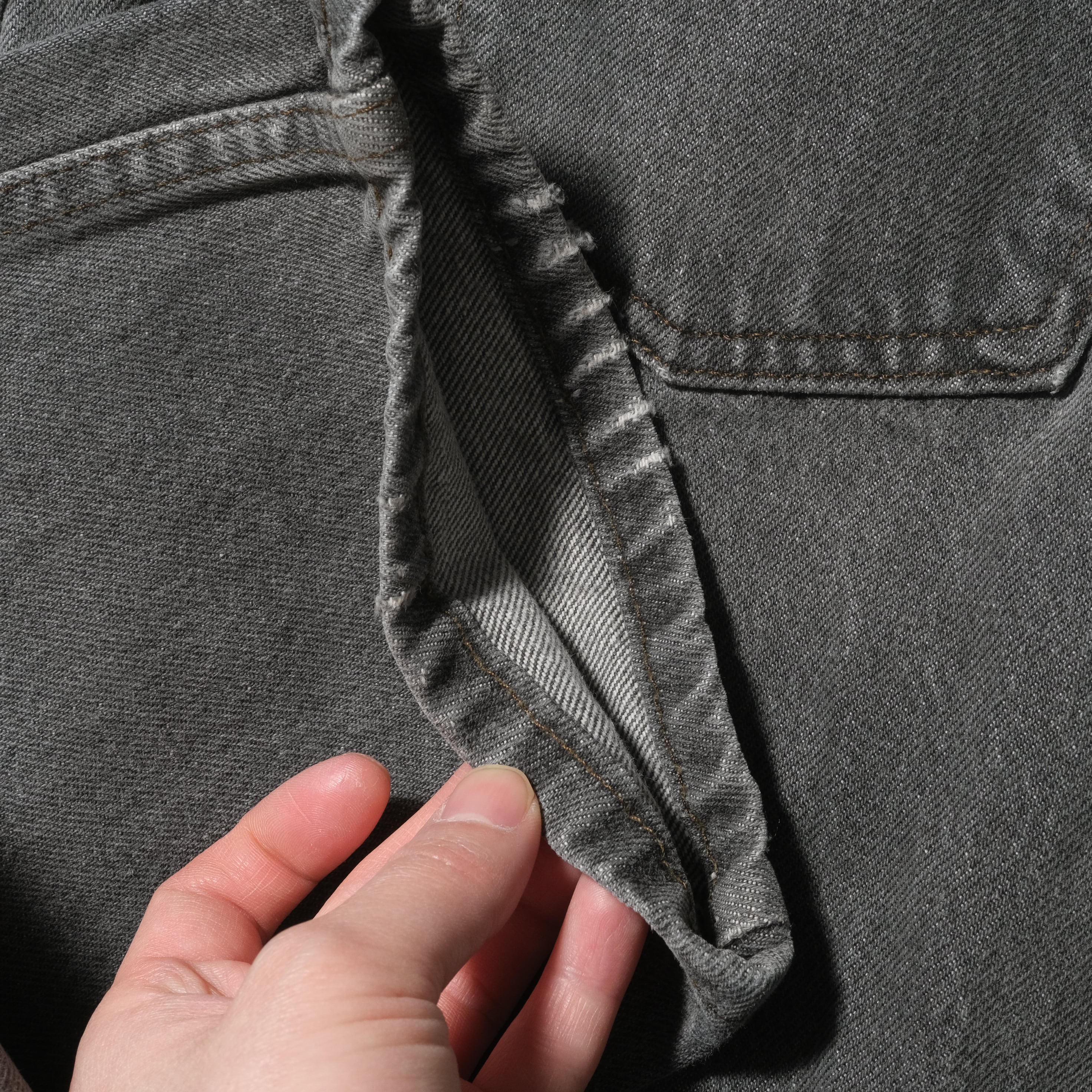ご覧のとおりフェードはしておりますがある程度残った良い塩梅のグレー、これからの季節に非常にマッチしそうです。この年代ですと細いシルエットになり過ぎてしまうことも多いですが、こちらはサイズもありかなり良いシルエットが出てくれていると思います。