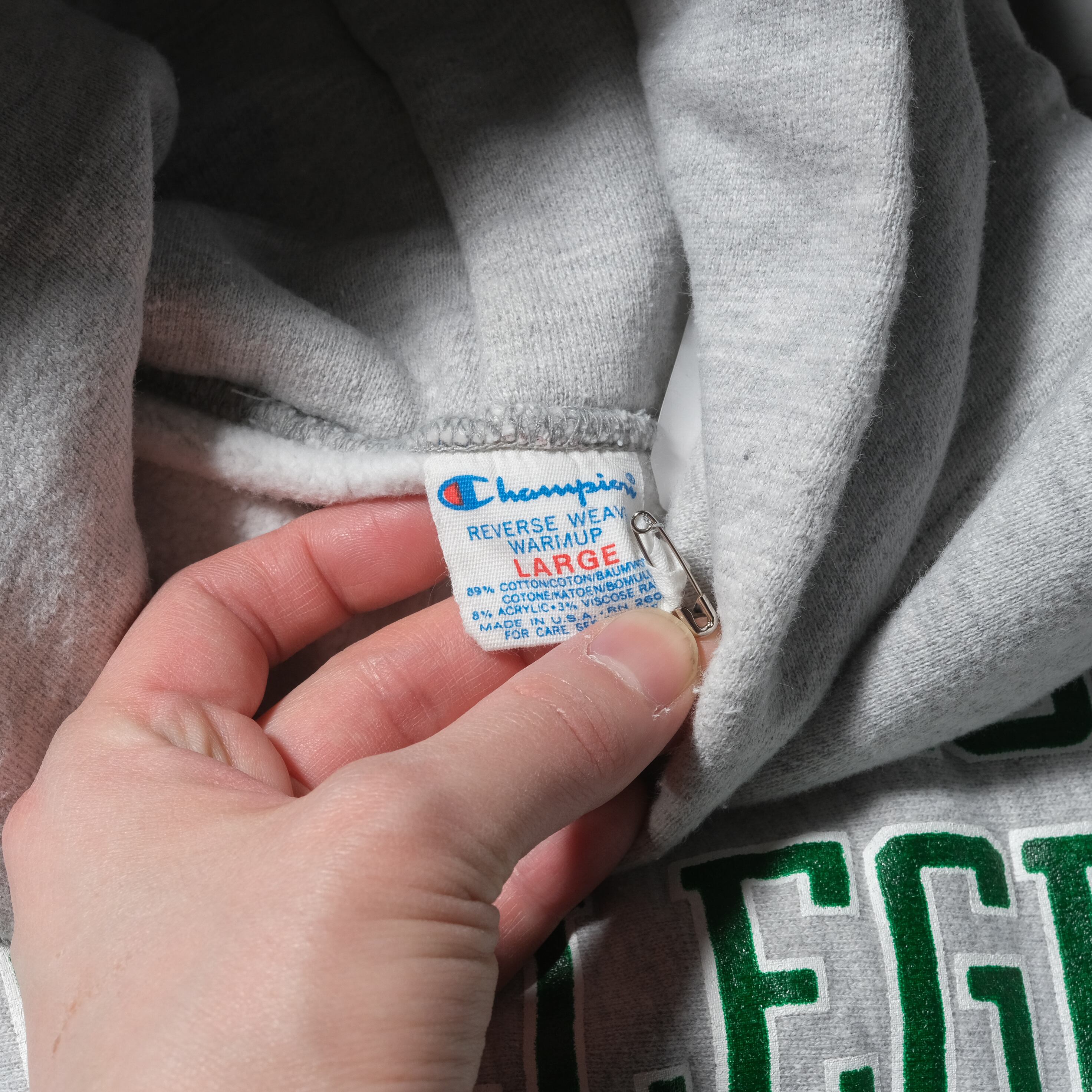 コンディション良しのグレーボディに3段グリーンのカレッジプリント。そして表記サイズはL、極め付けは80'sの個体というところ。