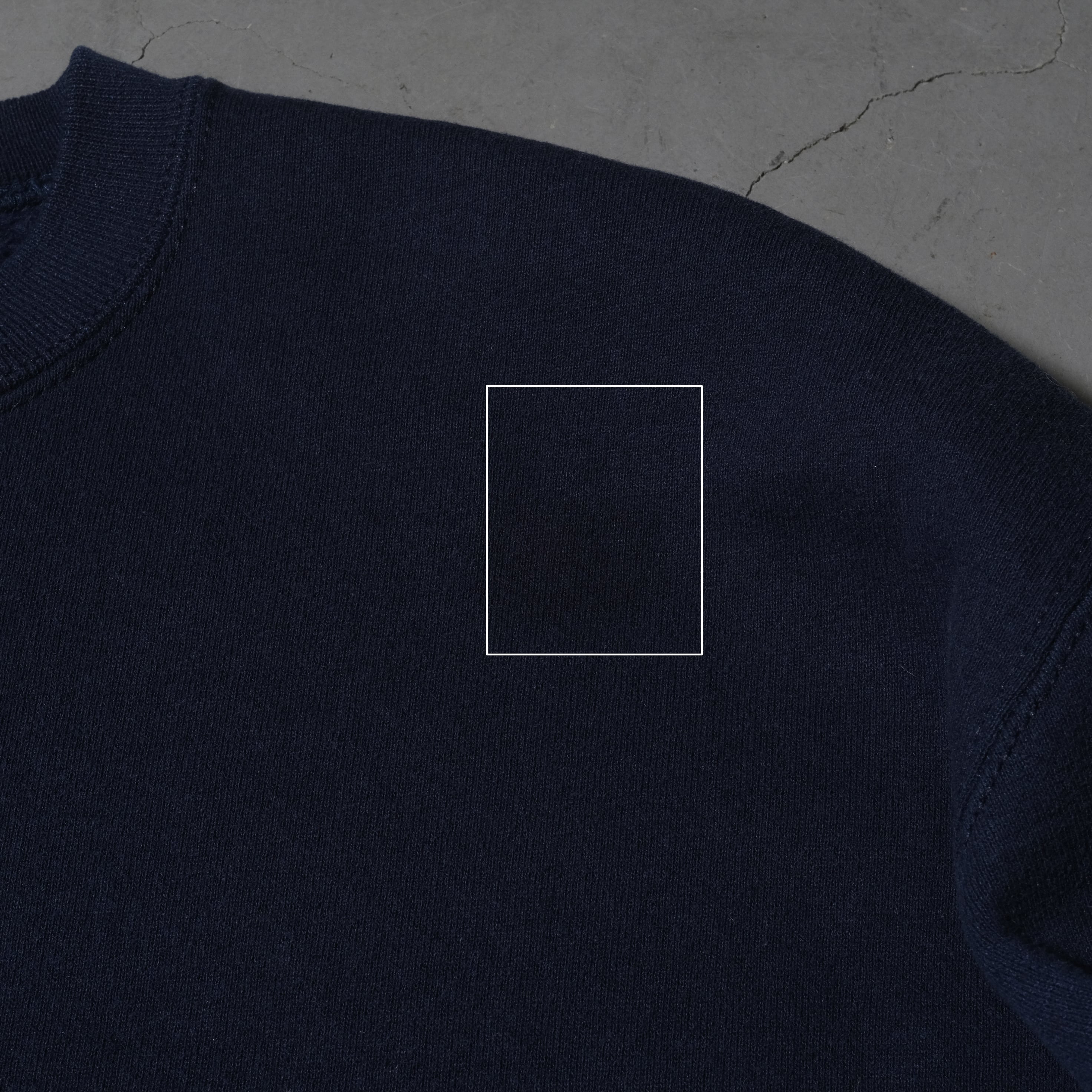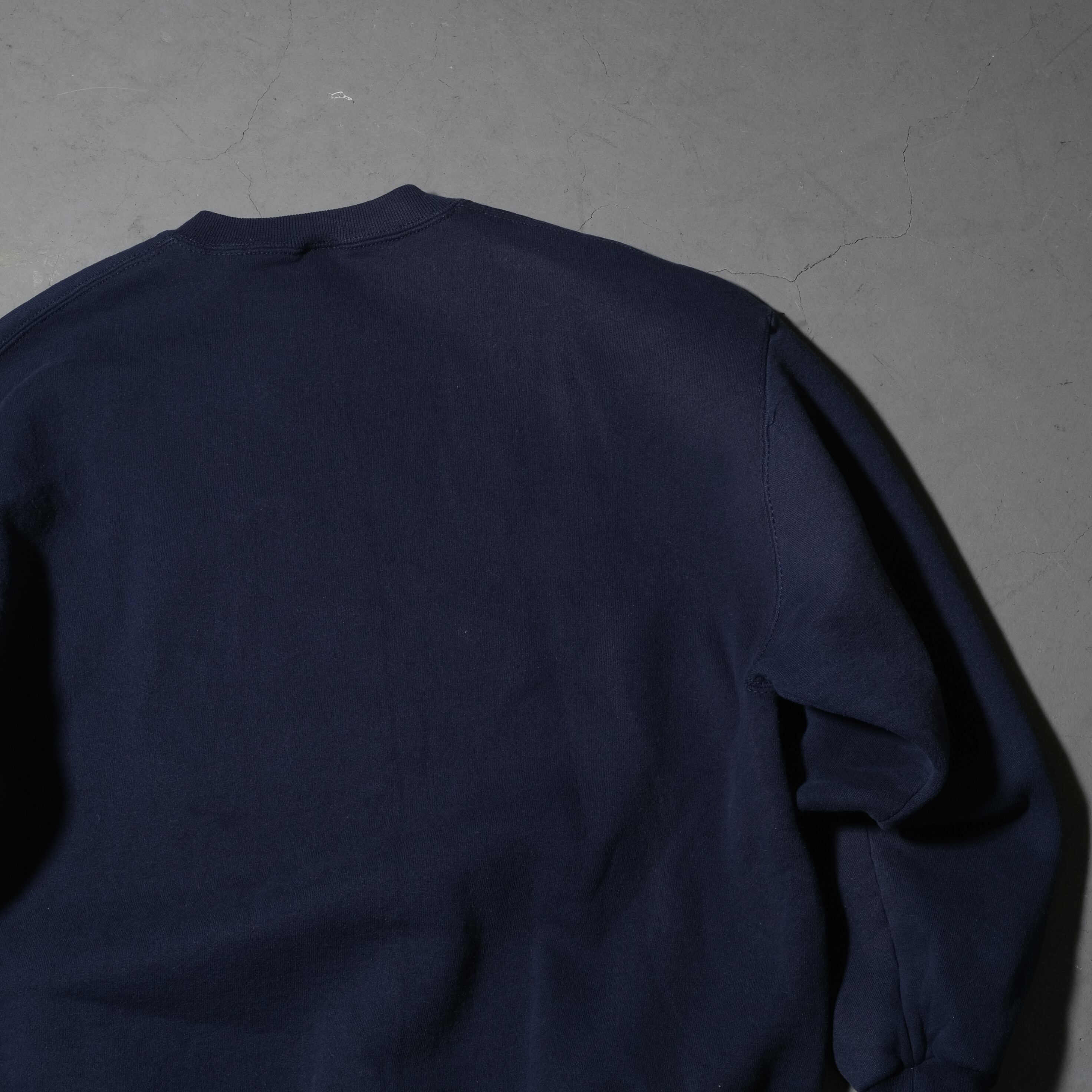 90'sのUSA製、そしてネイビーカラーと定番的条件を揃えた一枚。微かにシミ、フェードが見られますがほぼほぼ気にならないレベルではあるかと思いますし、フェードに関してはお好きな方も多い風合いかと思います。
