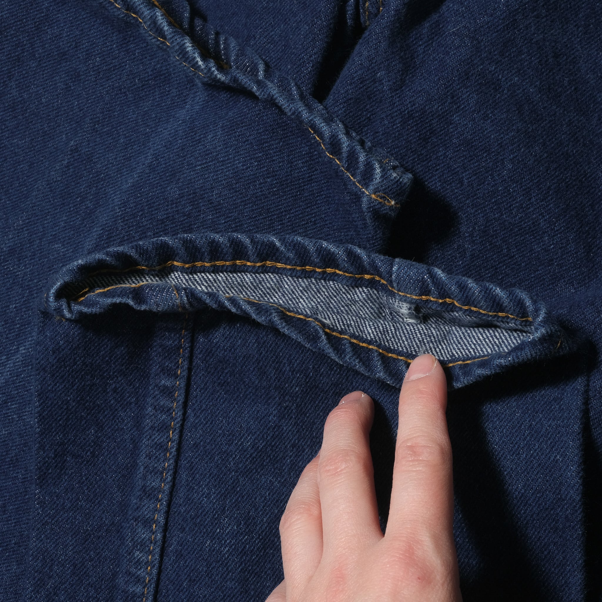 単純に生地感自体も90'sなどのものと比べるとやはりビンテージ寄りのボコボコ感があります。何か濃紺のリーバイスを一本、と探されていた方におすすめできる一本です。