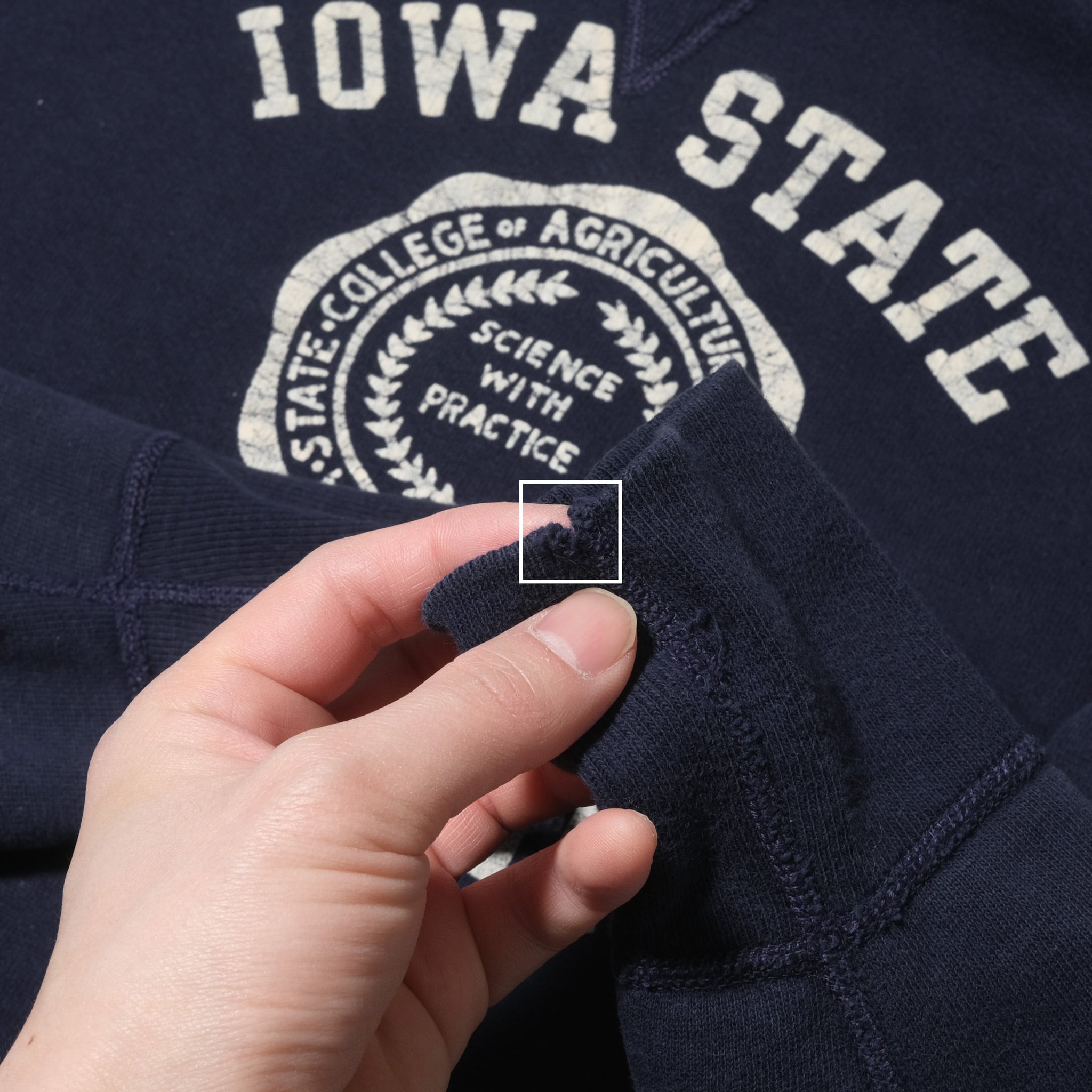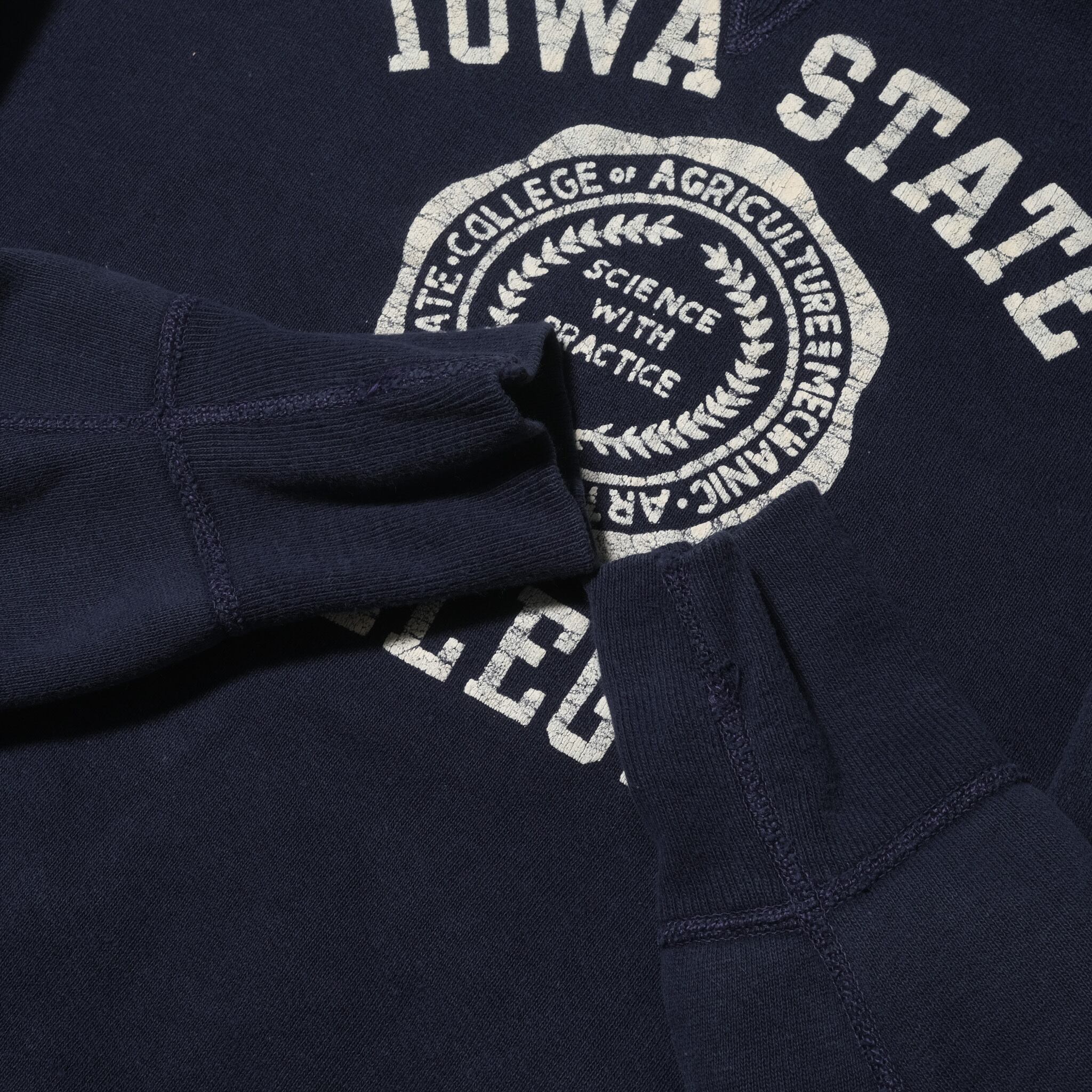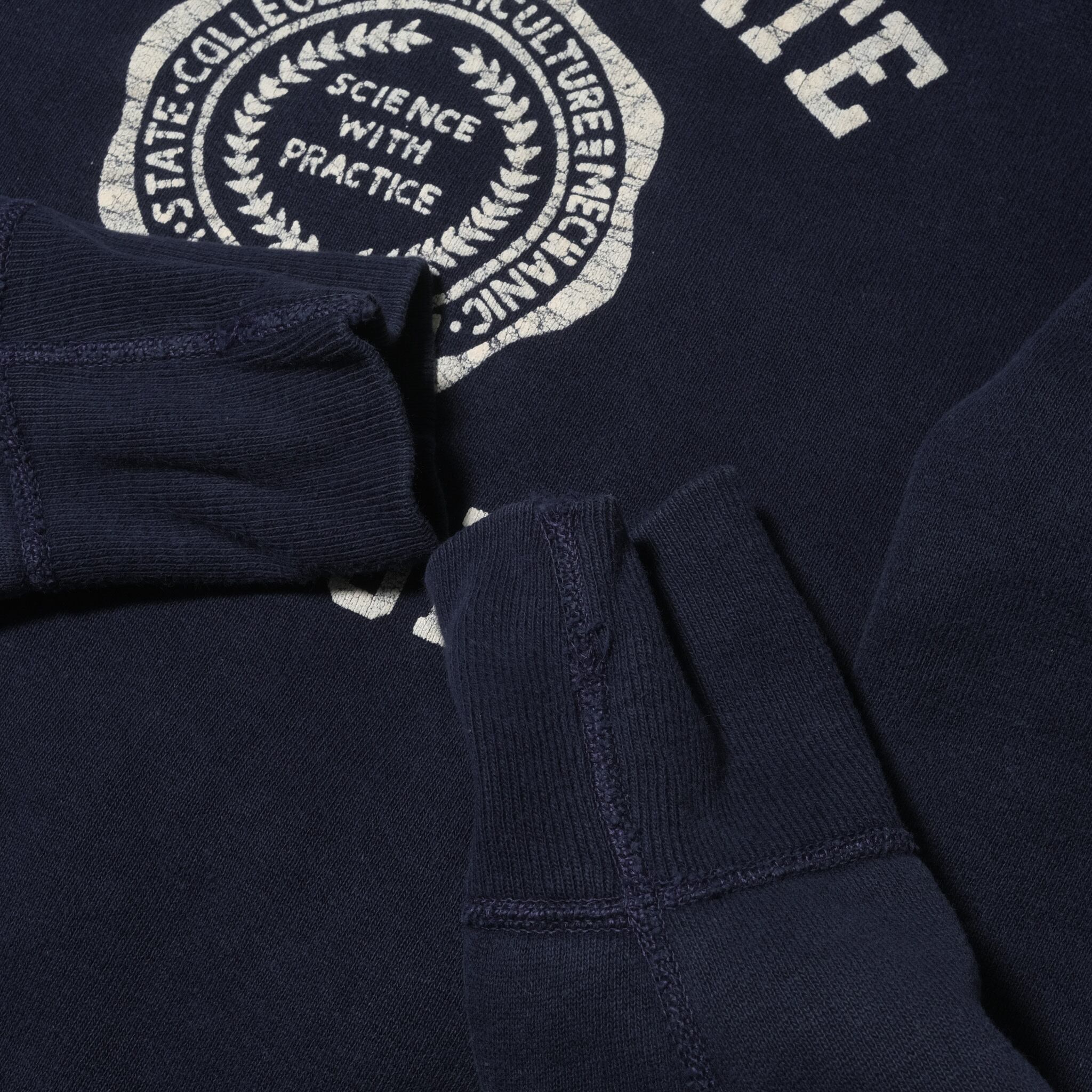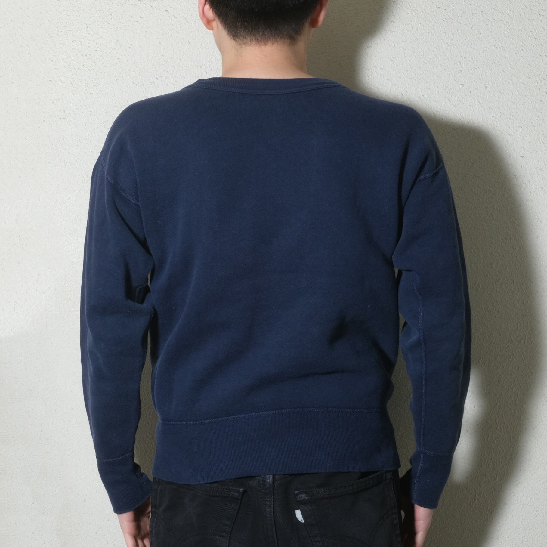 サイズ表記、タグは欠損しておりますがおそらく表記があればL、そしてこれはディテールやステッチの色などからの推測になりますがラッセルのものになるかと思います。