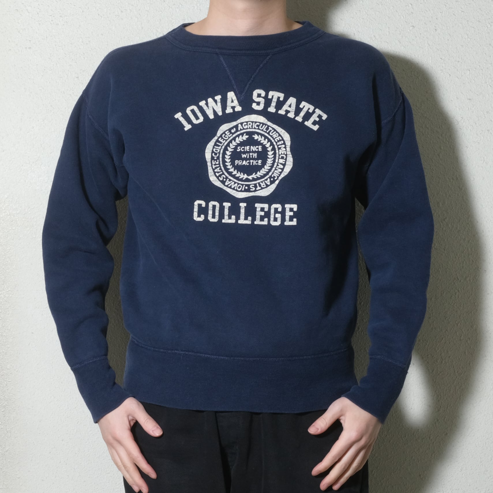 50's V stitch flock print sweat shirt[fits like L]