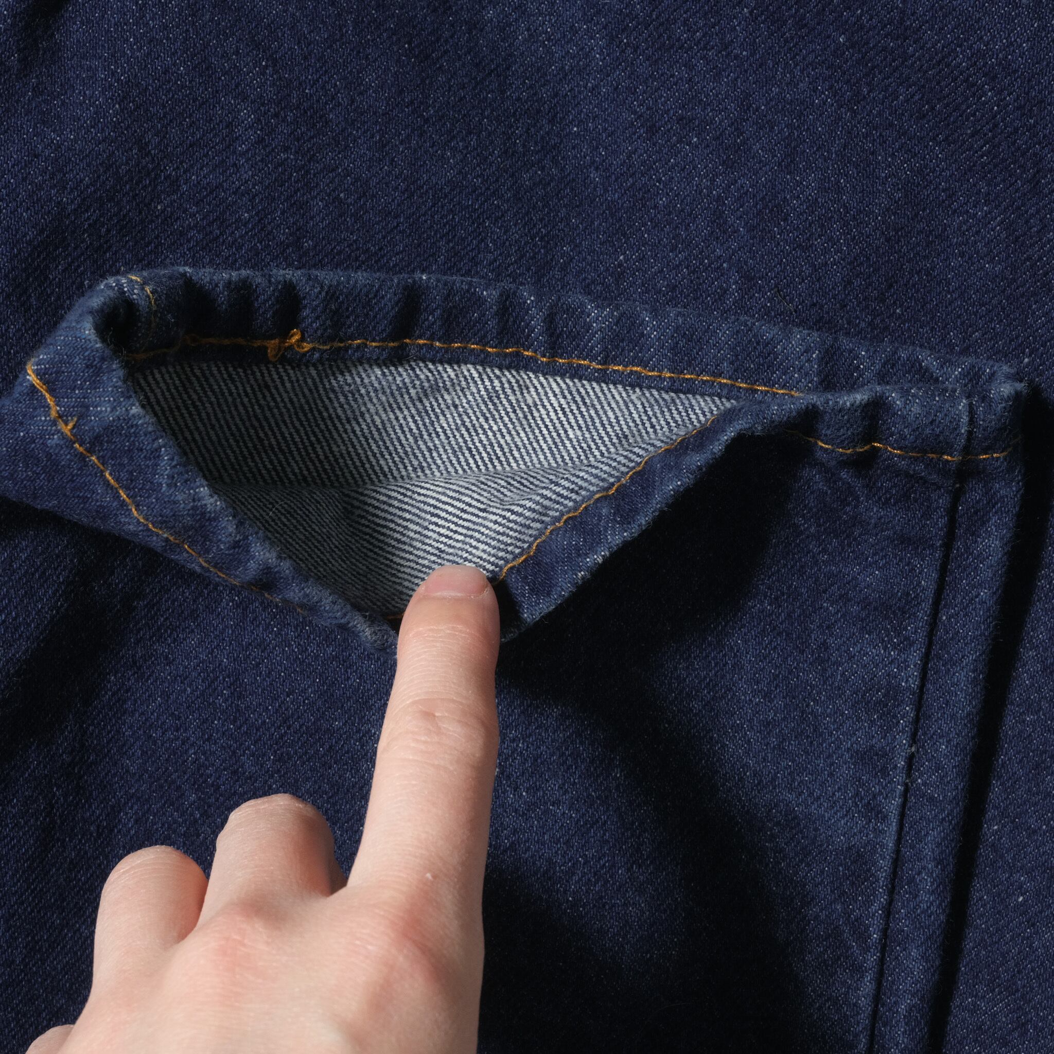 アーキュエイトステッチや生地感など一目見て古い個体だなとわかる一本。