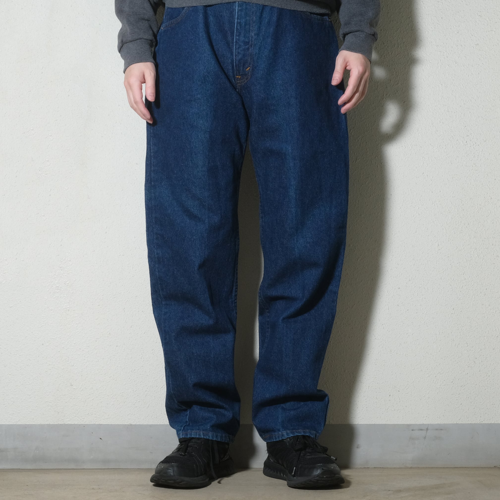 太めのシルエットで濃紺のデニムというのはやはり素晴らしいですね。