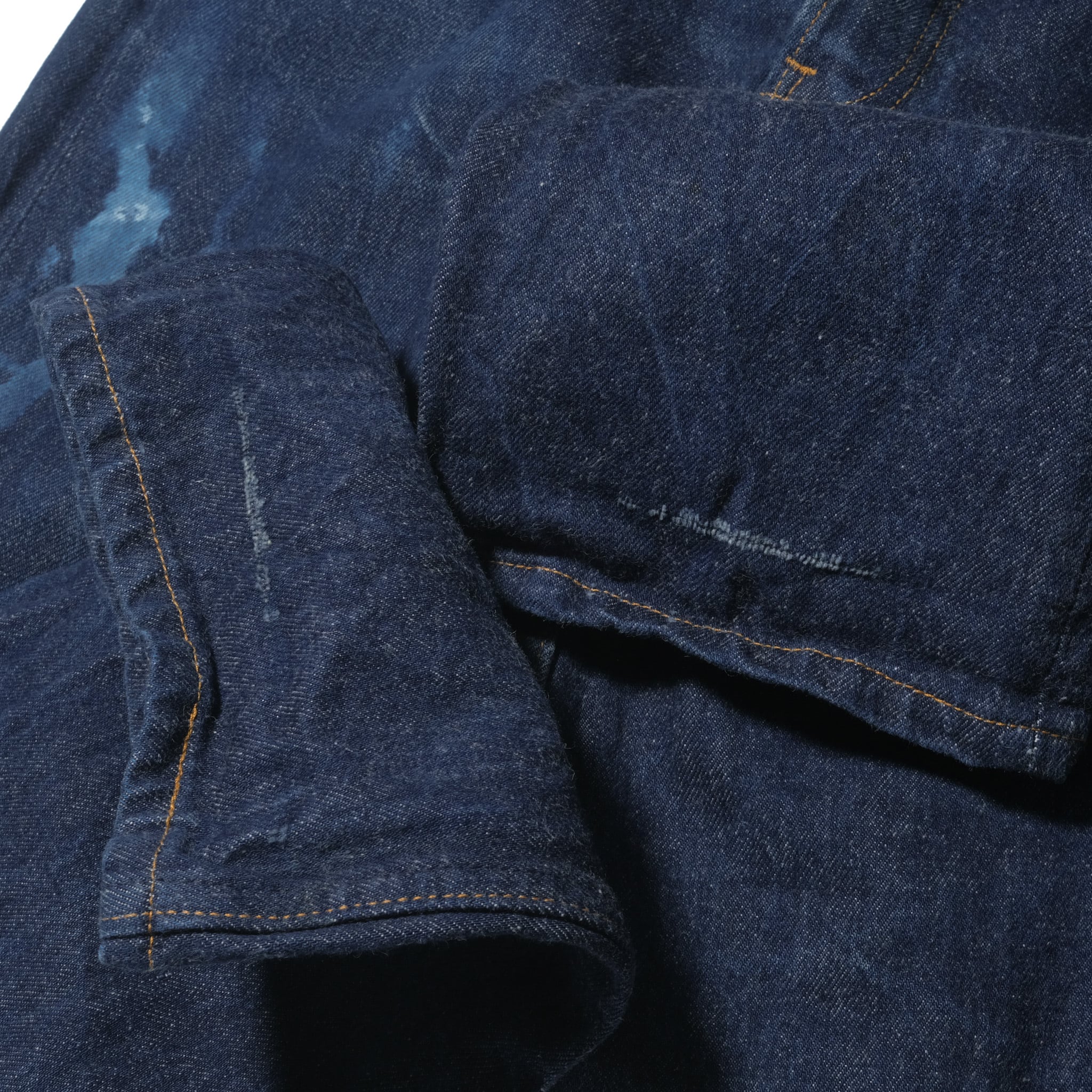 ノンウォッシュから着用したのではないかというかなりコントラストのある色落ち。そしてこの色残りですのでウォッシュ回数はかなり少ないのではないかと思います。