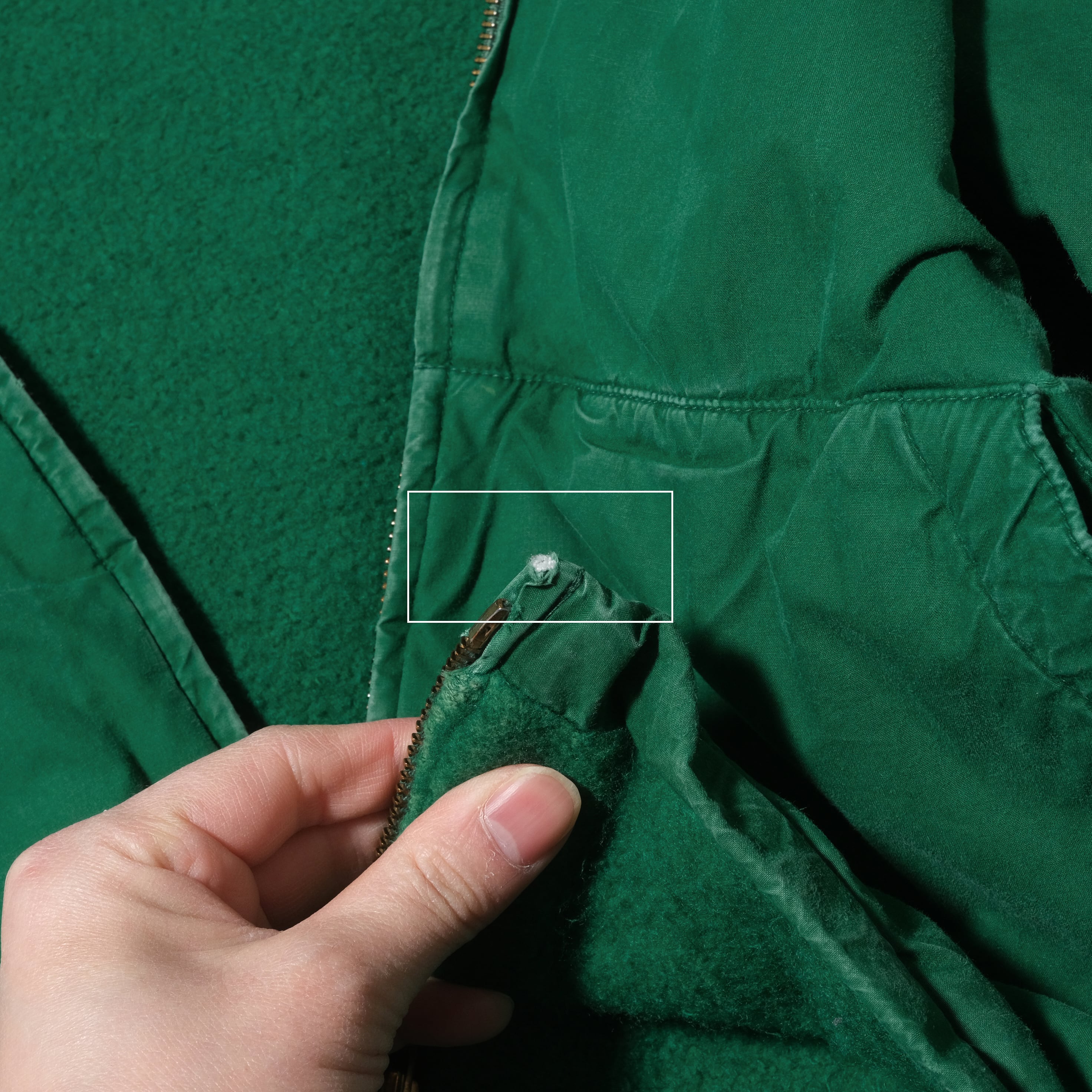 このタイプのドリズラーは過去に何度か仕入れたことがございますが、やはり中綿が入っていることで暖かいですし、かつコットン100%ですのでところどころキズなどは出てきてしまいますが着込んだ時の雰囲気が素晴らしいです。