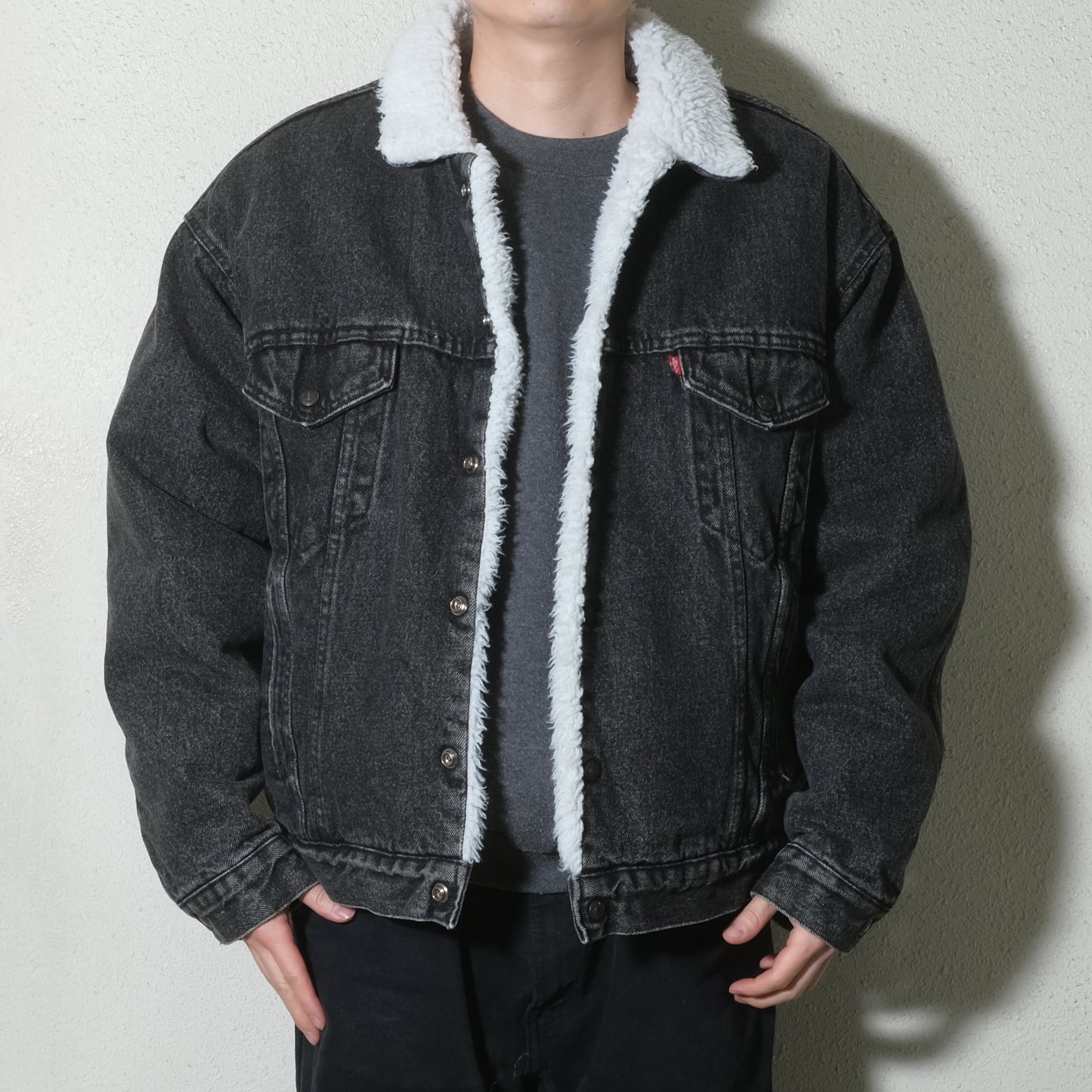 90's Levi's 70609 black denim sherpa jacket made in USA[XL]