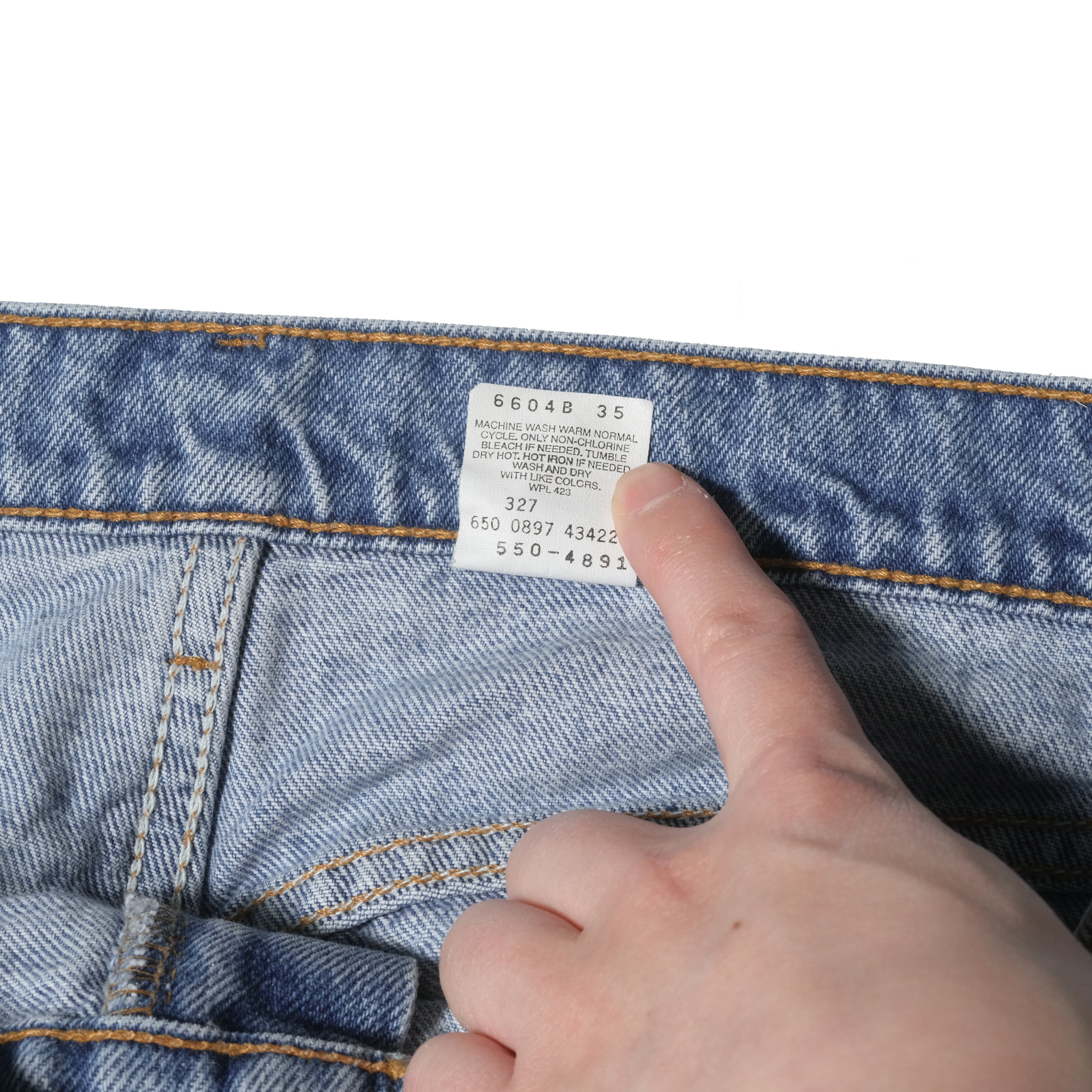 表記サイズは36x30、そこから若干のシュリンクが入って実寸が35.5x30、かなり良いサイズ感かと思います。またこの90's終わりあたりの550はそれ以前に比べてテーパードが緩まりますのでナチュラルなシルエットが非常にクールです。