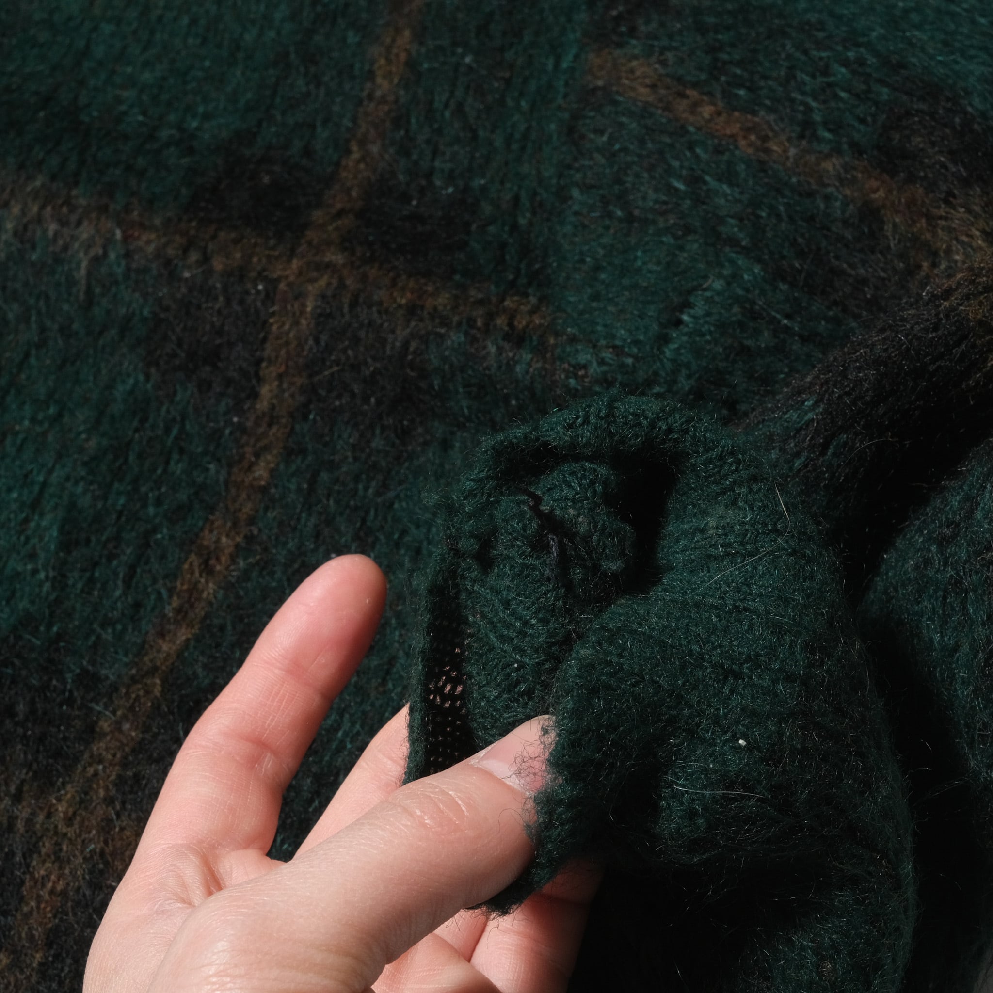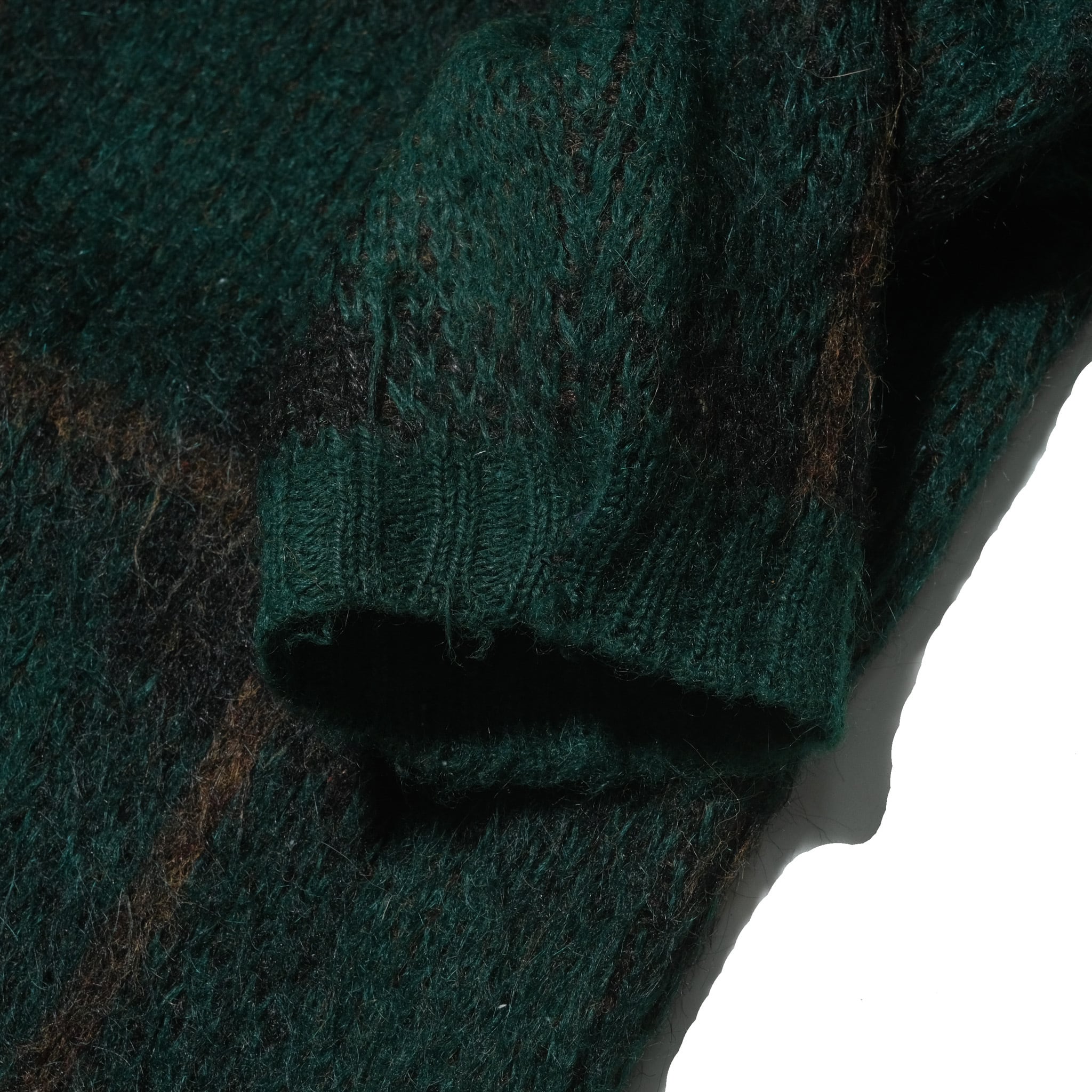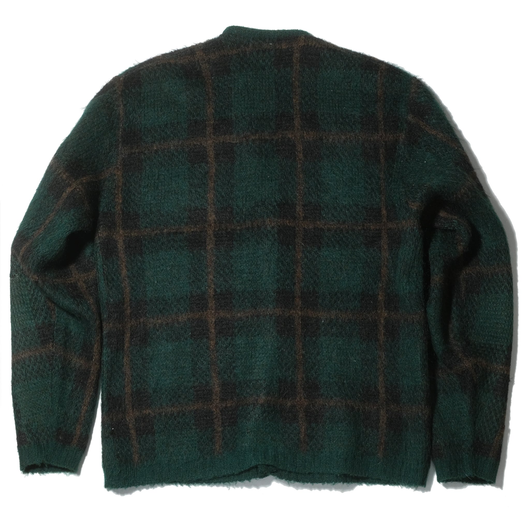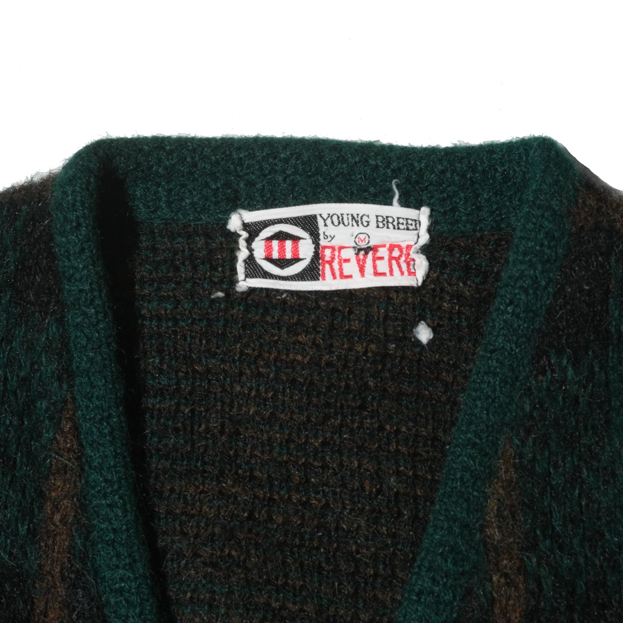 ブランドはYOUNG BREED by REVERE。素材表記の部分が欠損しておりますが、このブランドときてこの毛足、ルックスといえばご存知の方も多い"SHAG-RAC"のネームのつくモヘアで間違いないでしょう。その場合にはアクリル70%、モヘア30%の混率。