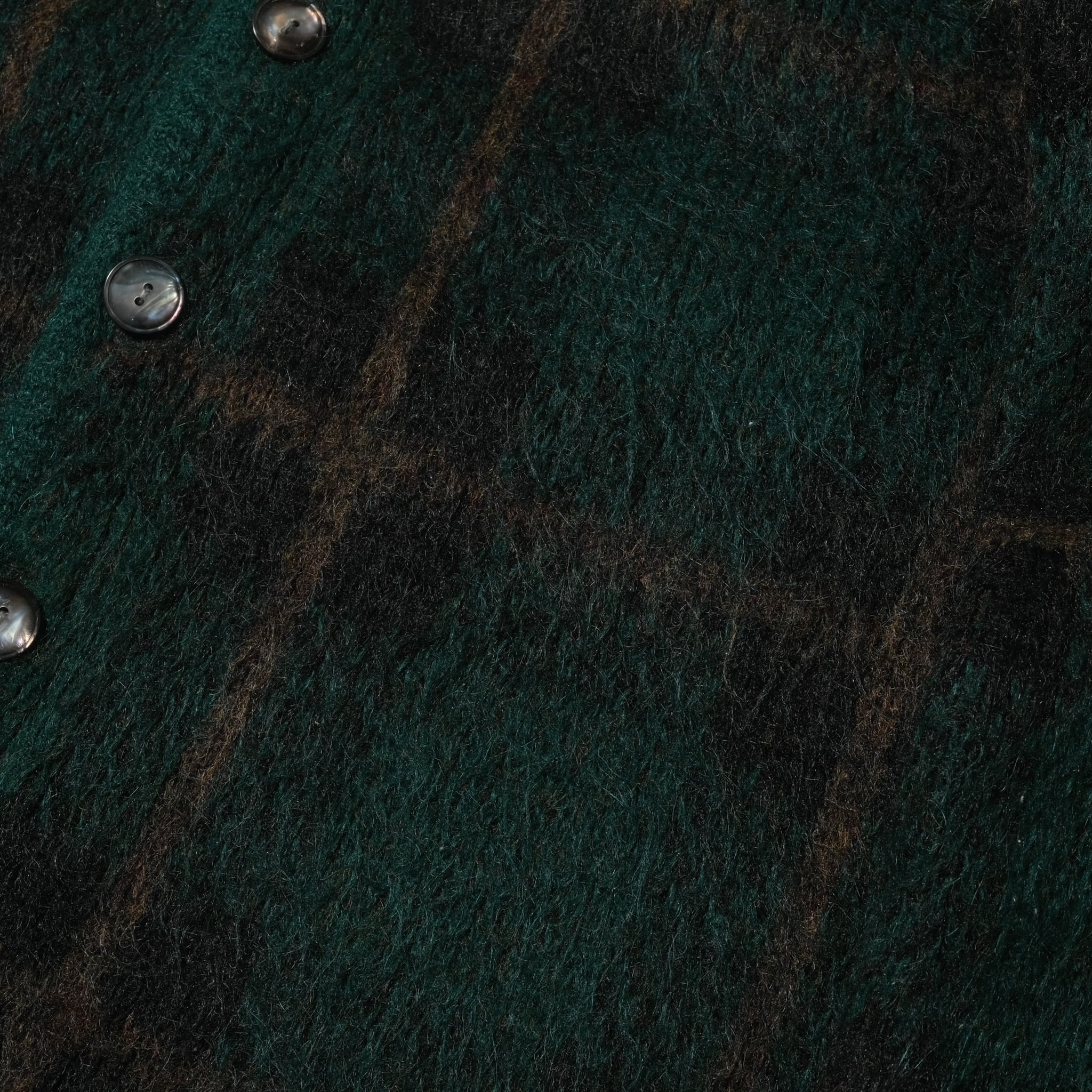 左袖に手縫いによる補修がありましたのでそれを加味したプライス、このレベルのモヘアはなかなか入ってきません。クールな一枚です。