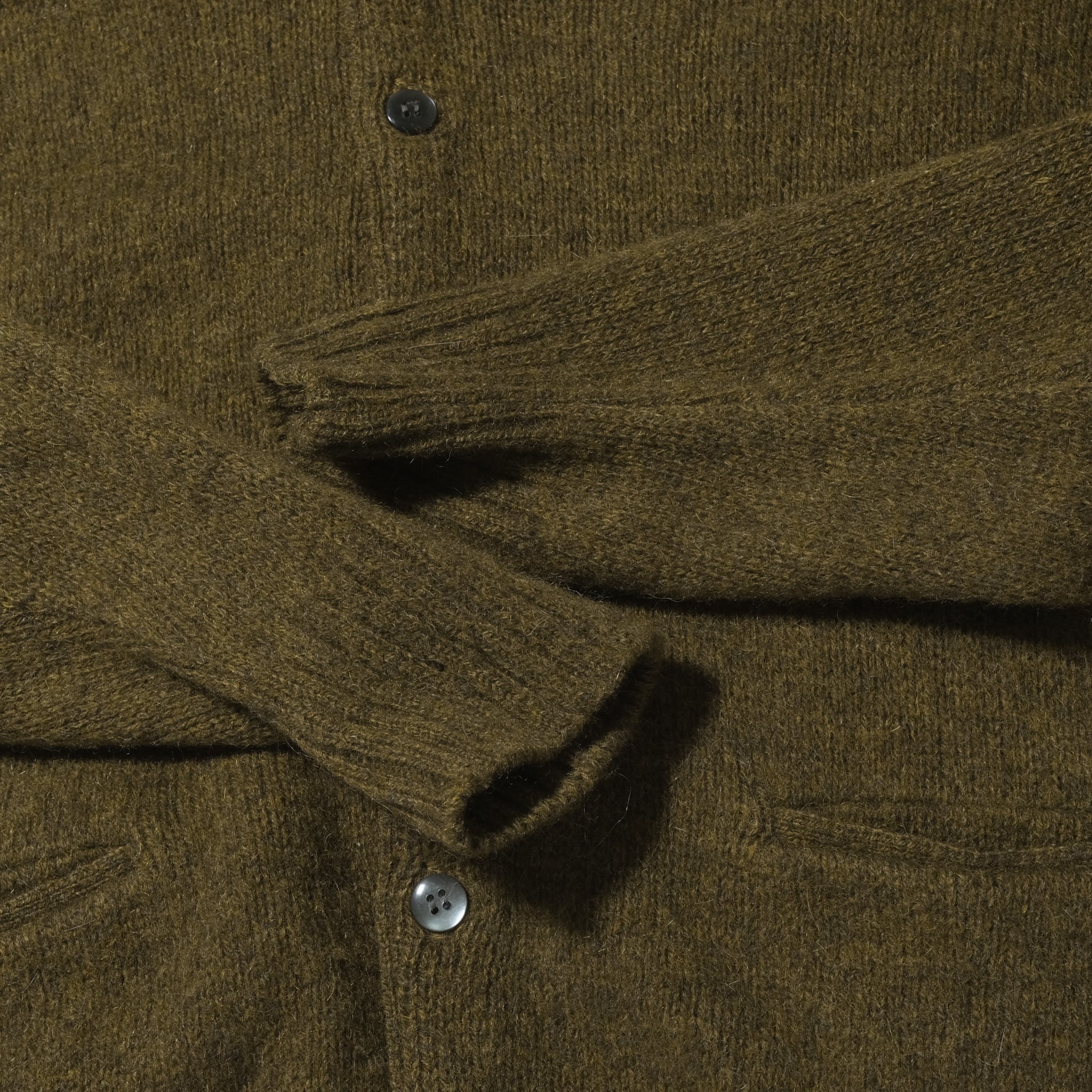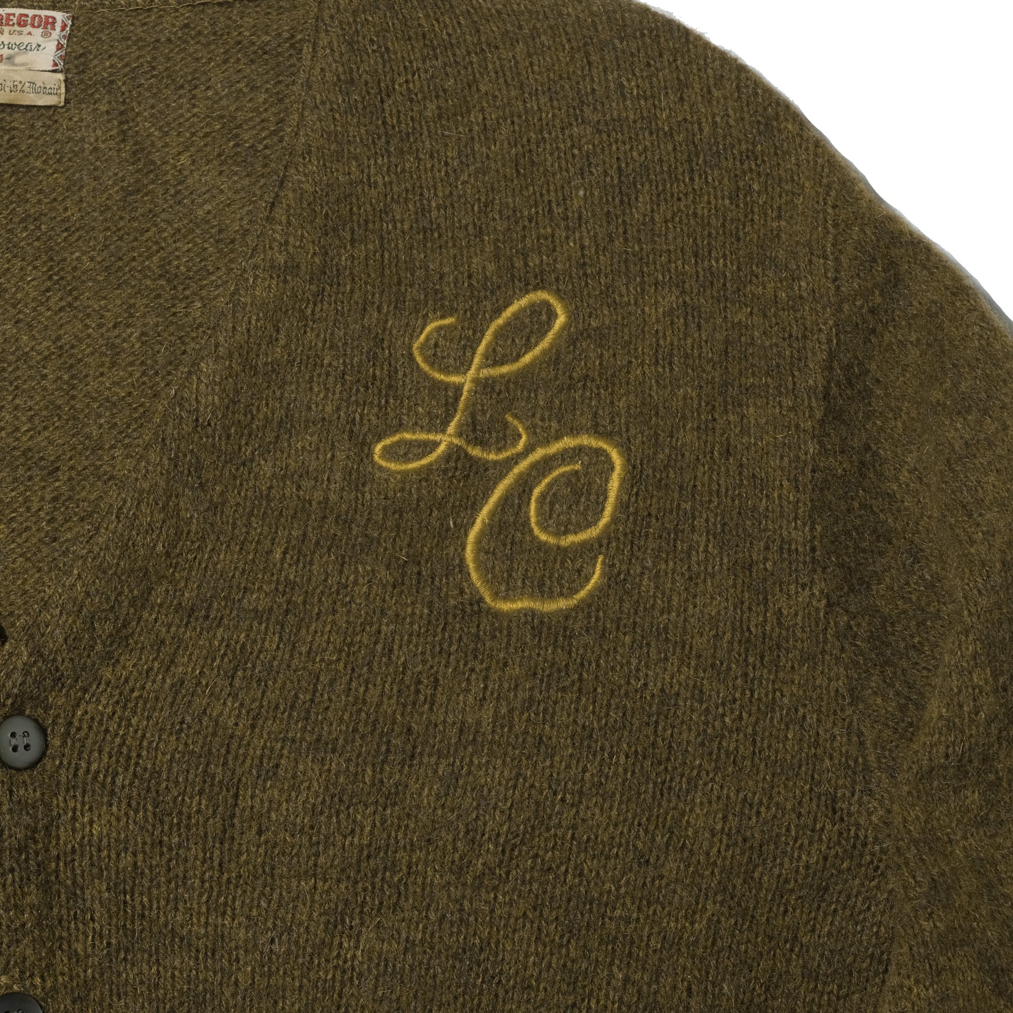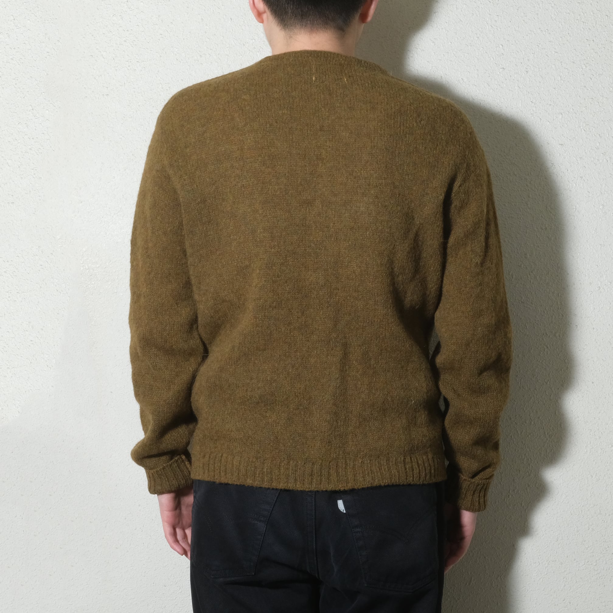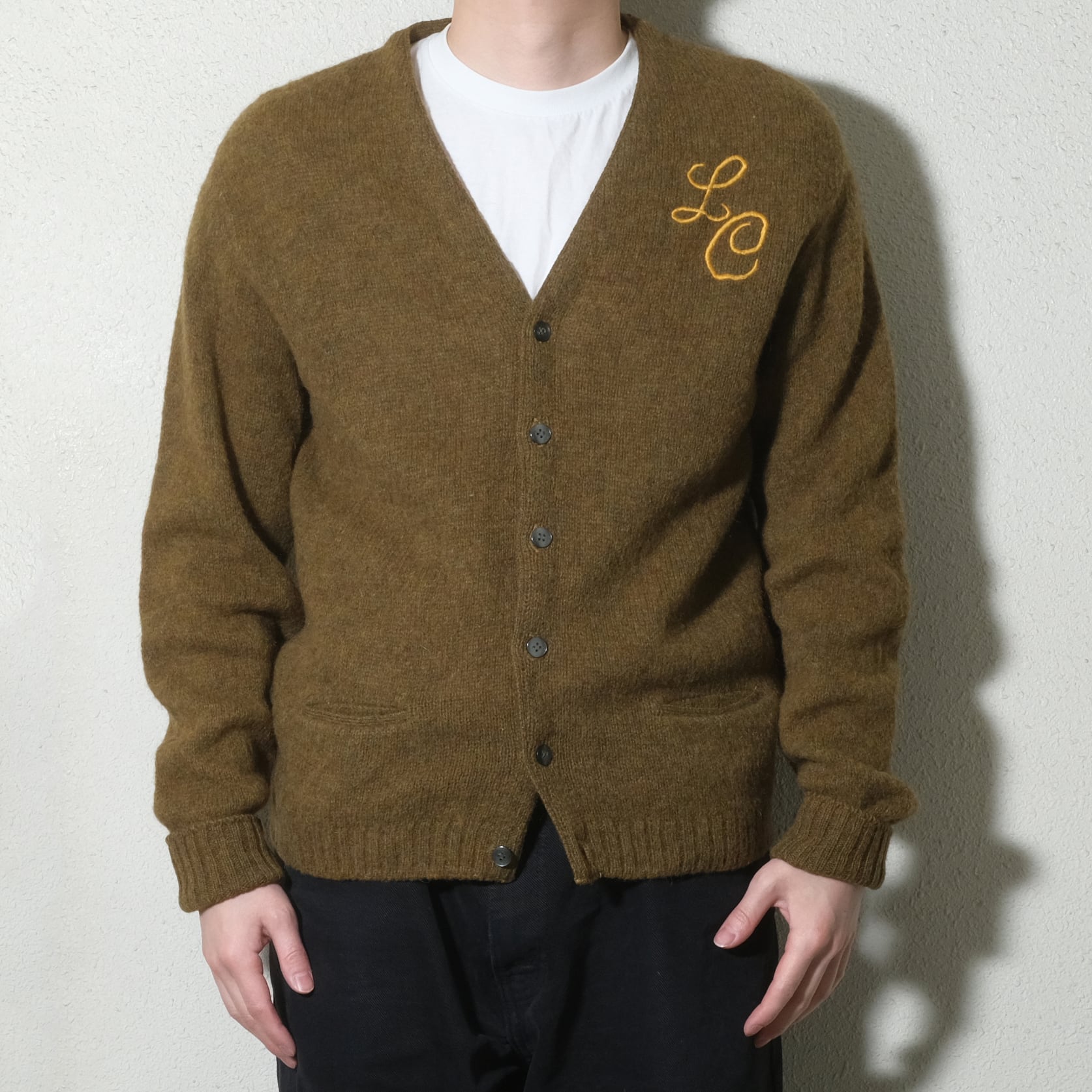 60's~のタグ、ゴールドとブラウンの中間のような良い色味のもの。毛足が長いタイプではないのですがしっかりとモヘアが使用されており、かつボタンの欠損などもみられない良い状態のもの。左胸には刺繍が入る当時らしいデザイン、無地のものよりは少し抑えめのプライスでご案内できました。