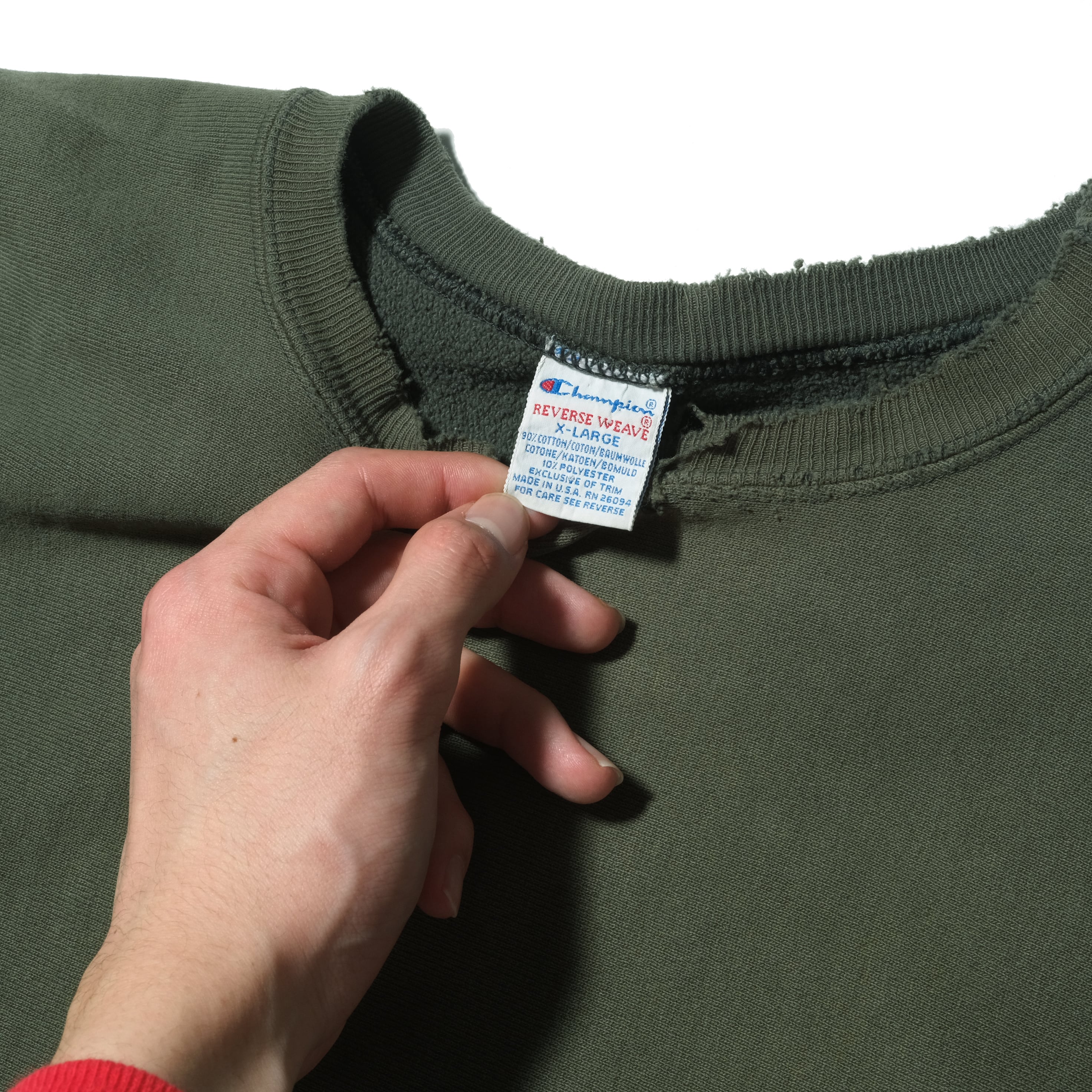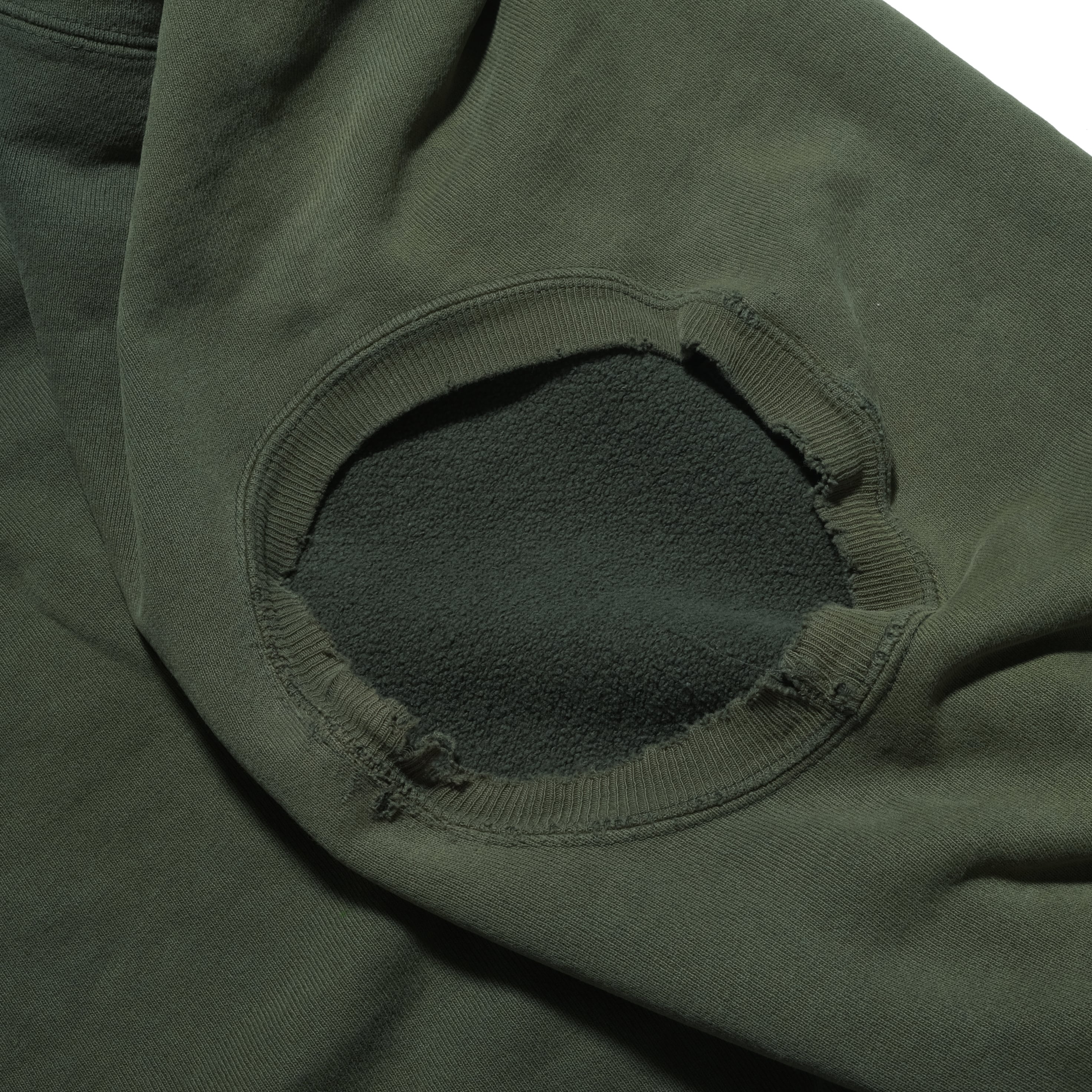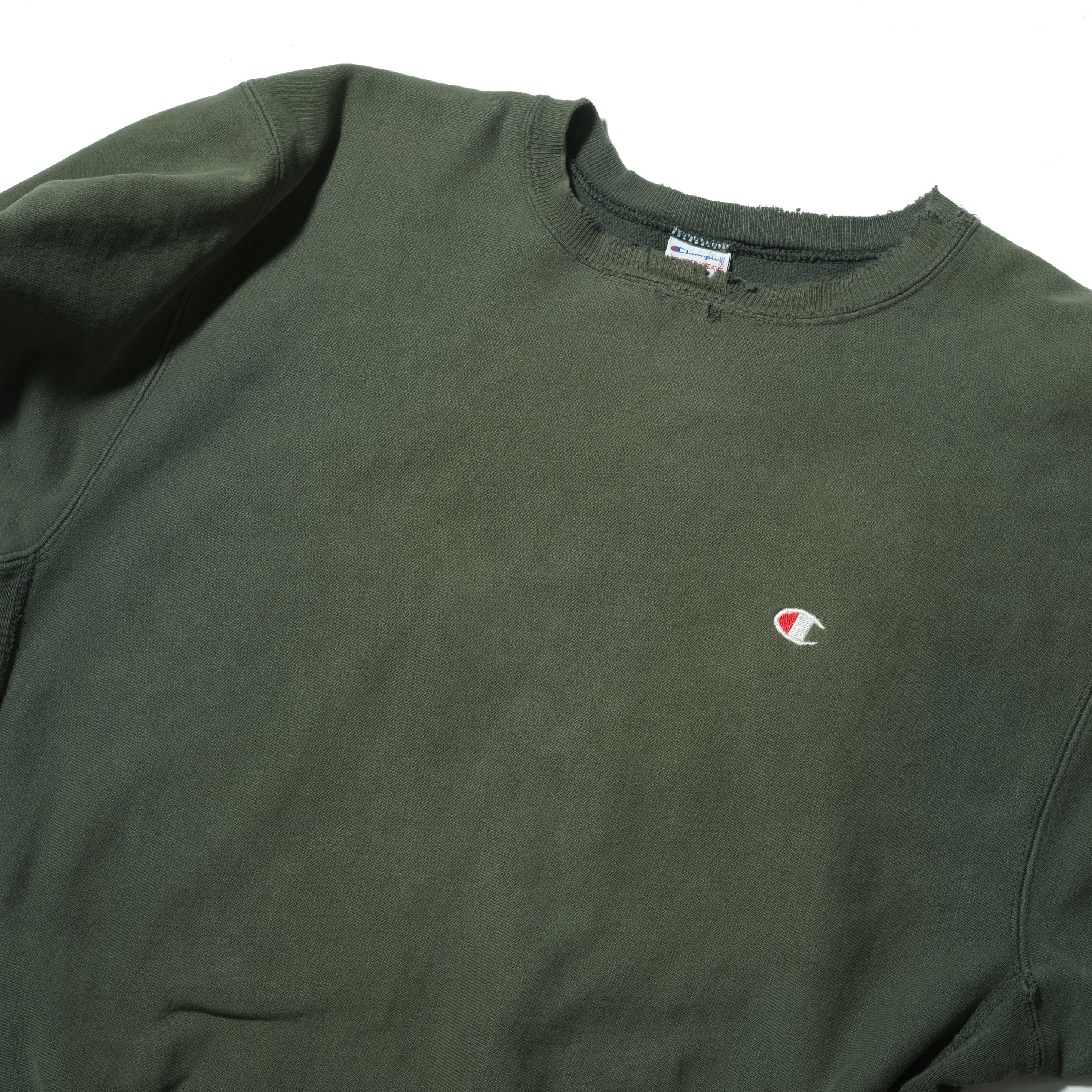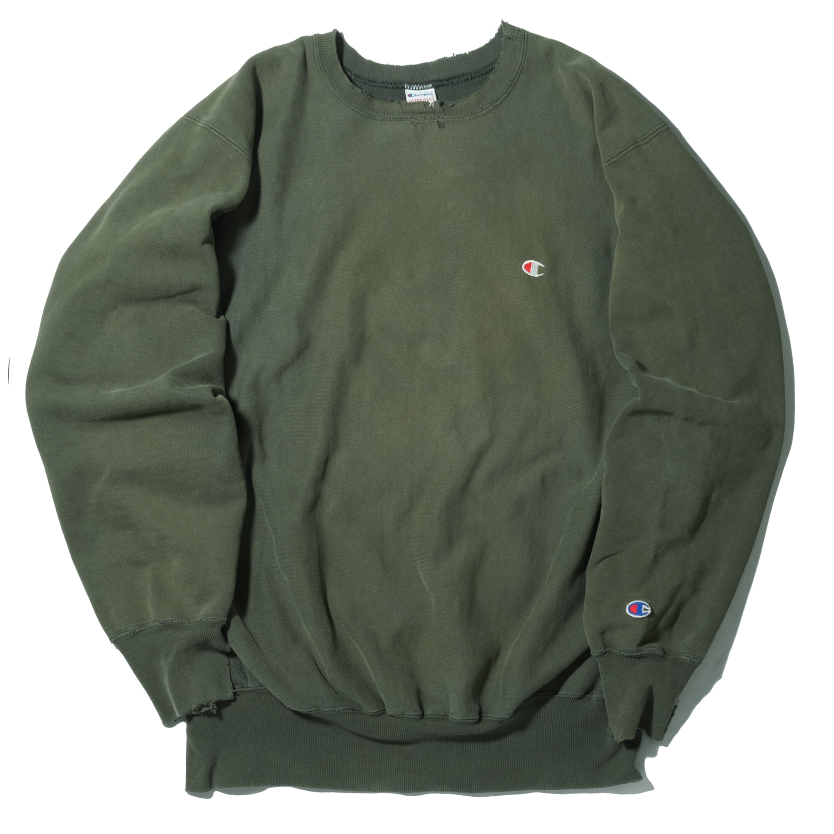 90'sのUSA製、グリーンカラーのもの。かなり着こまれておりリブにもダメージ、そしてかなりフェードして黄色っぽいカラーになっております。