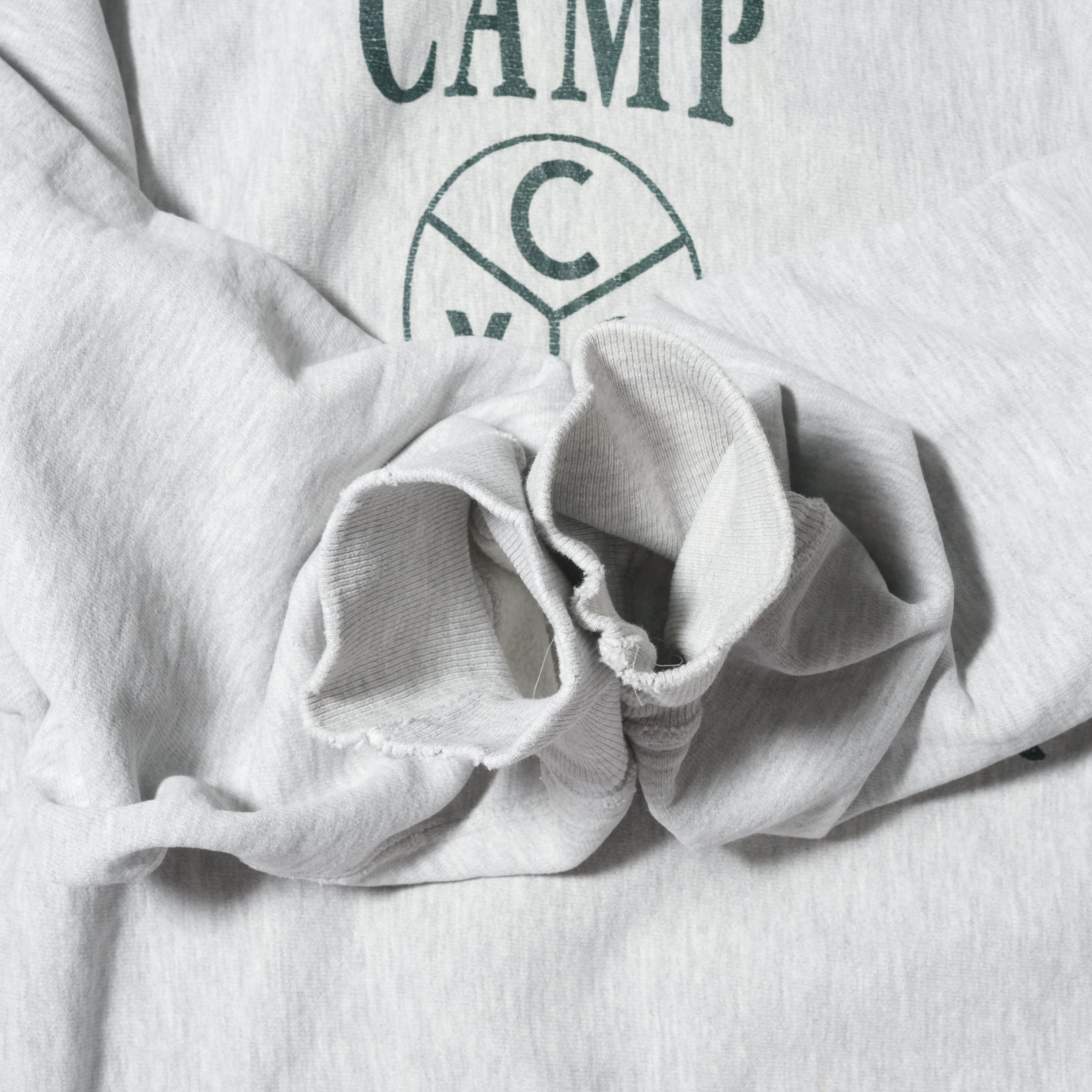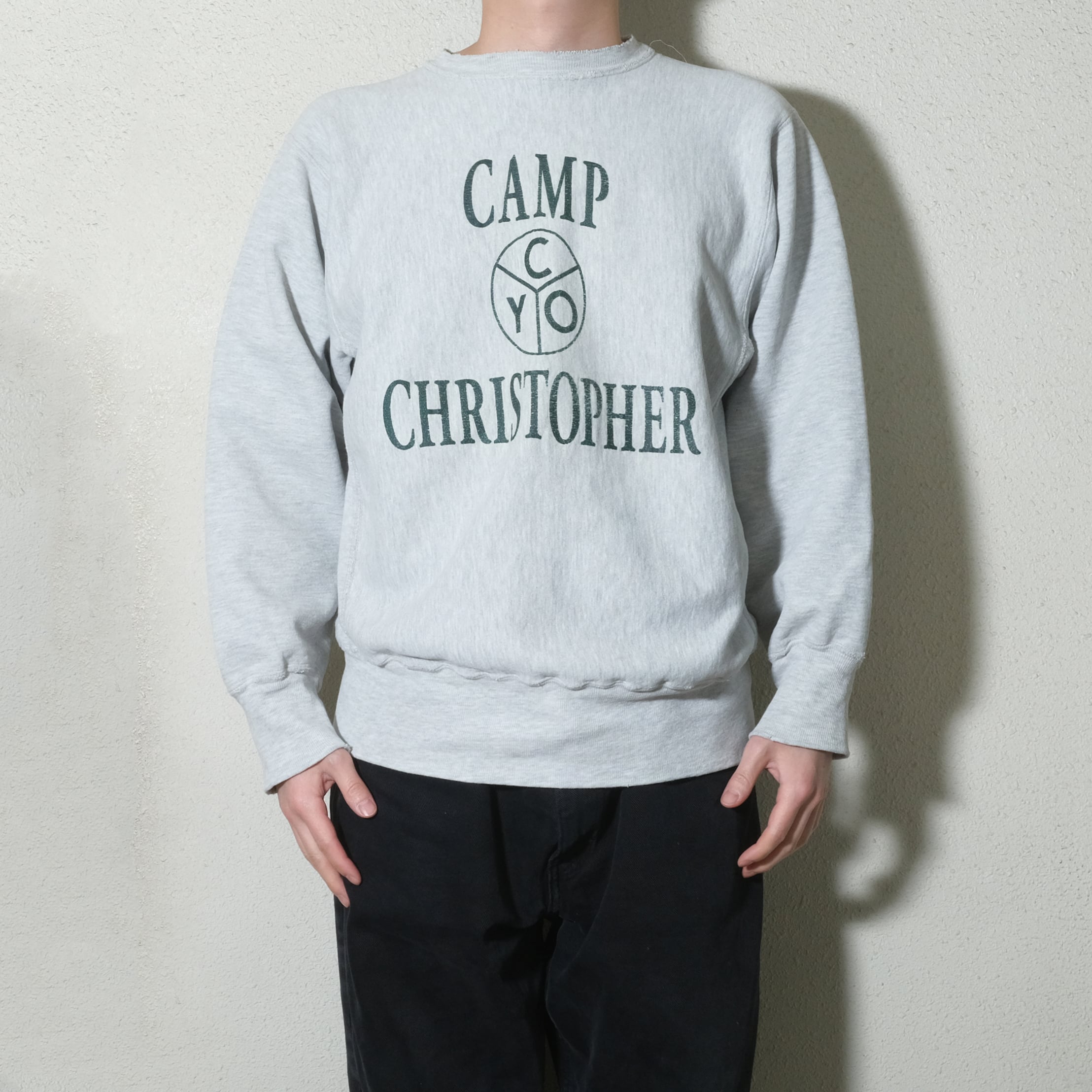 90'sのUSA製のもの、表記サイズはLでキャンプクリストロファーというキャンプサイトのものになるかと思います。個人的にはこの中心のカレッジではないよな、というグラフィックに惹かれました。サイズ的にも90'sのLですのでこのくらいのサイズがハマる方は多いかと思います。