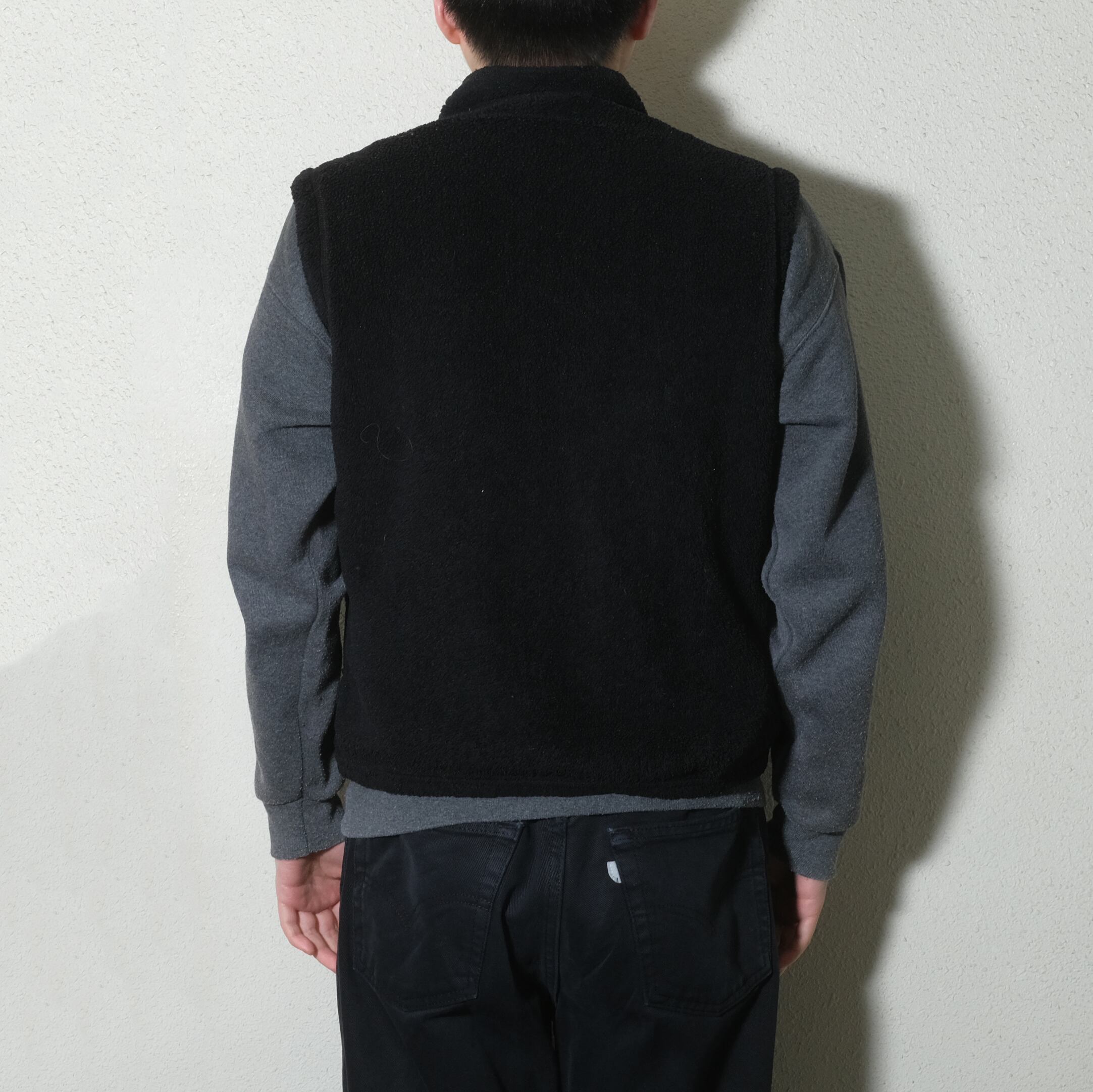 ブラックで合わせやすいですし、この上にむしろテーラードなど少しカチッとしたやつを合わせてもかっこいいかと思います。