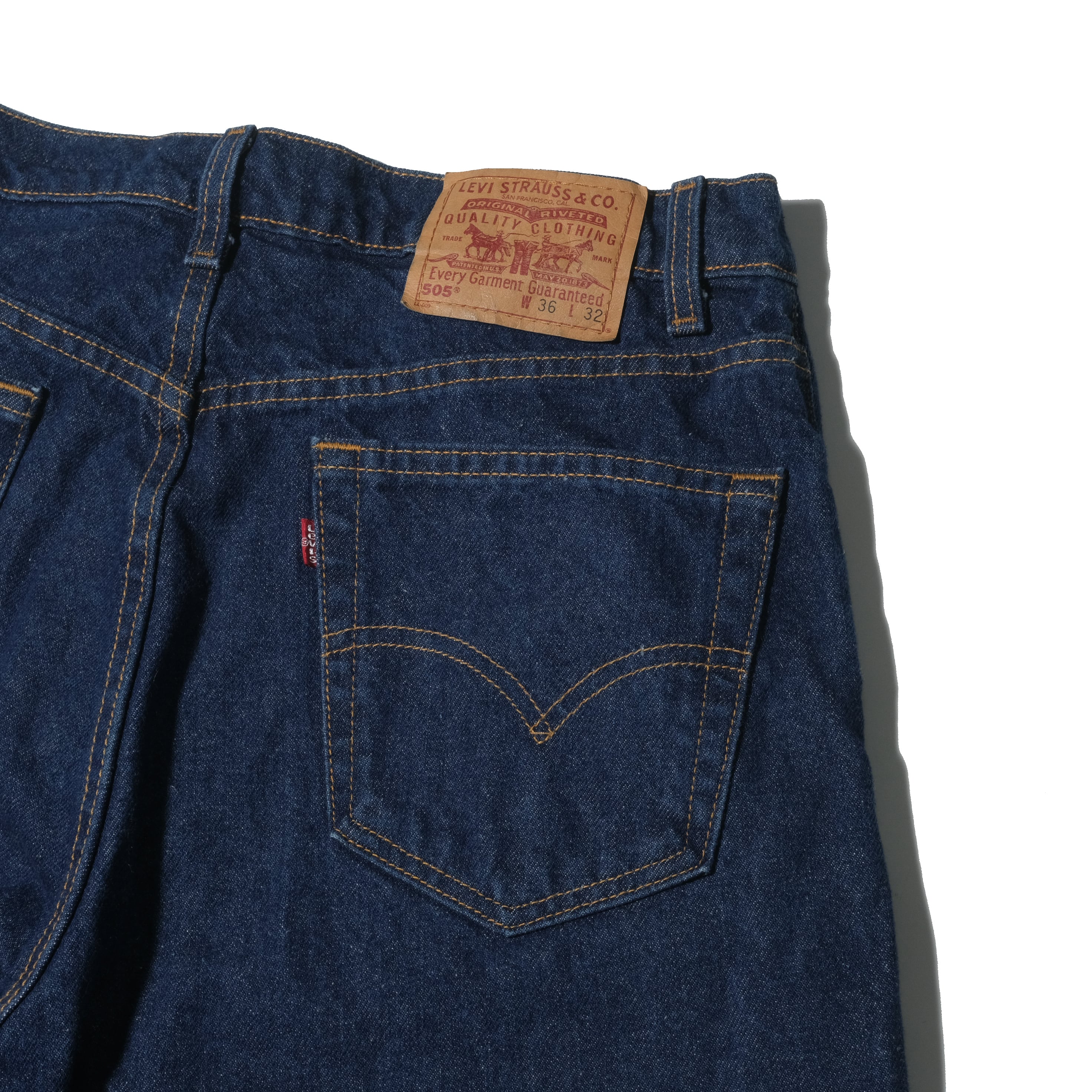 505は501と比べますと若干細身のシルエット、ですので1~2インチサイズをあげて着用される方が多いと思いますが、こちらはゴールデンサイズと言える一本かと思います。