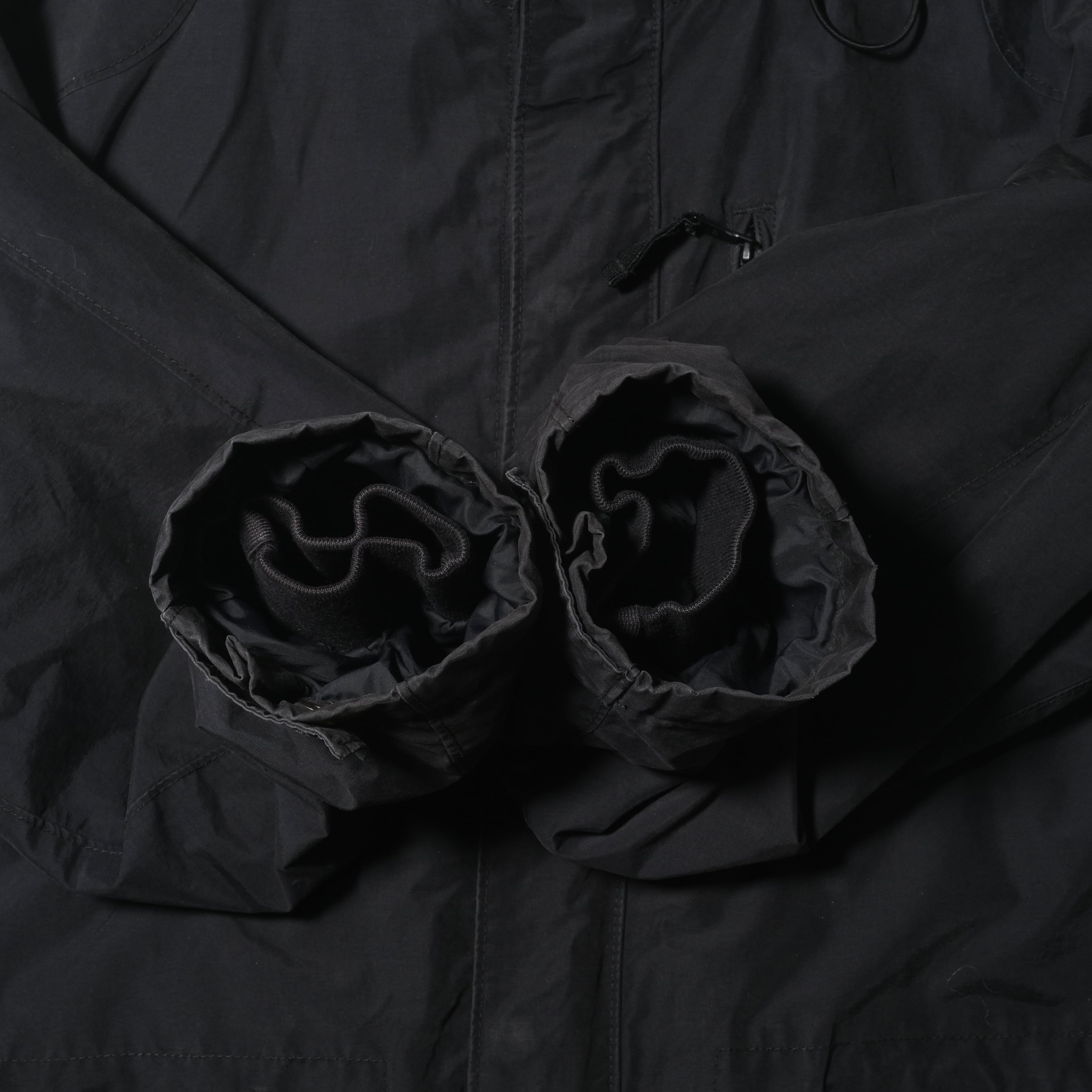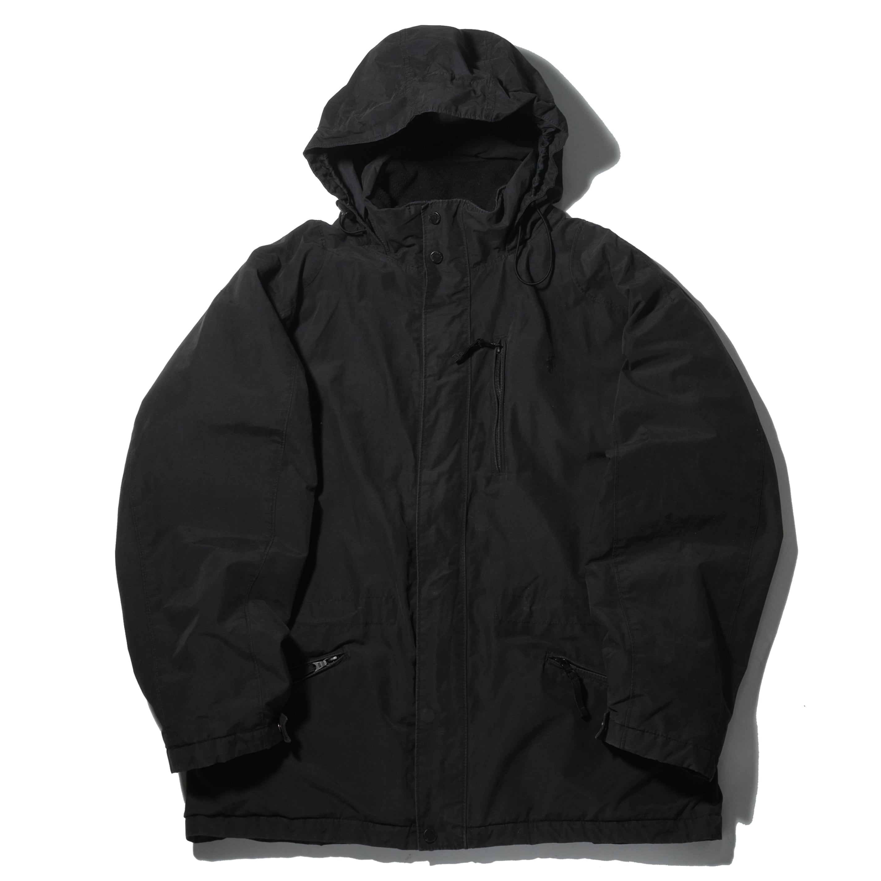 ブラックカラー、マウンテンパーカータイプ。