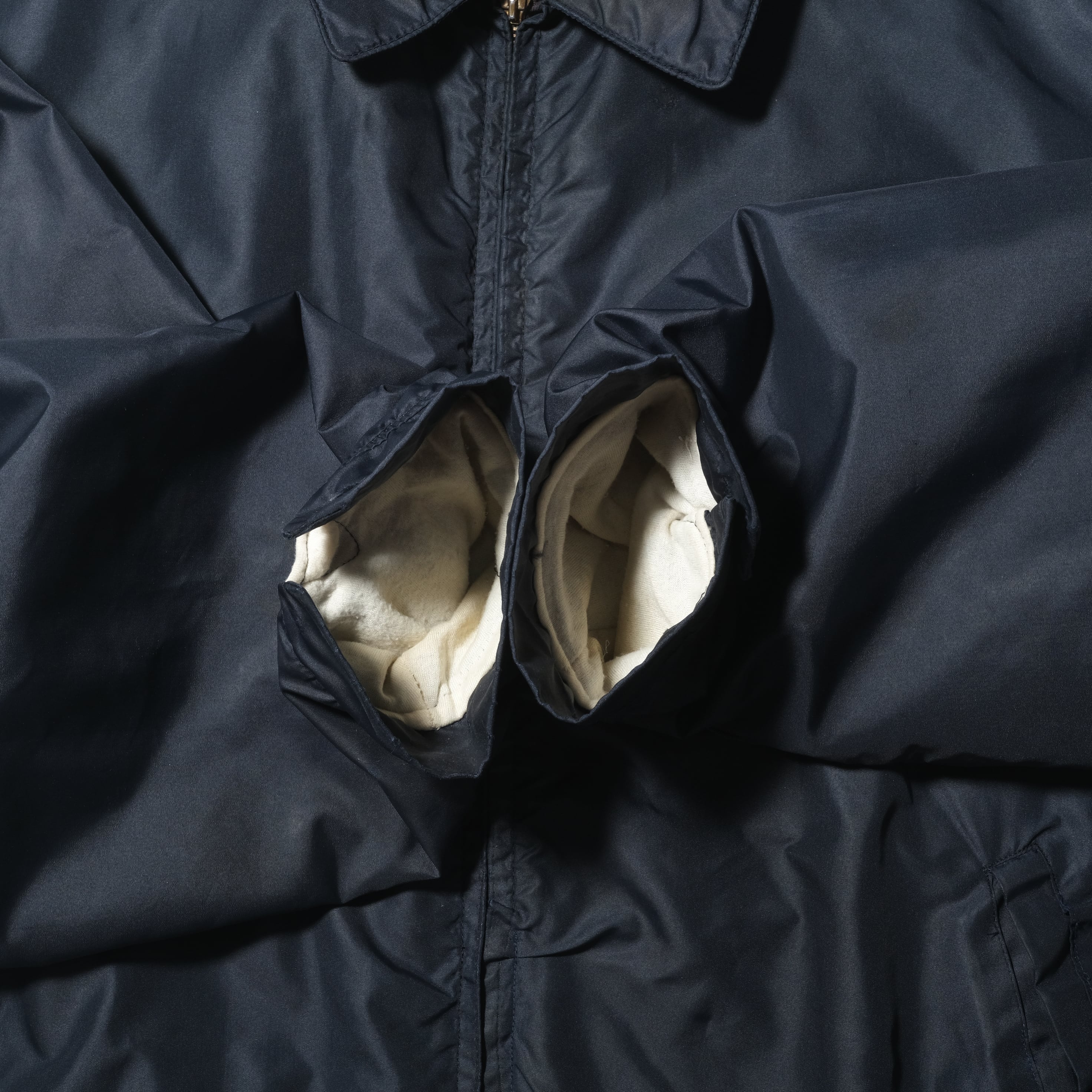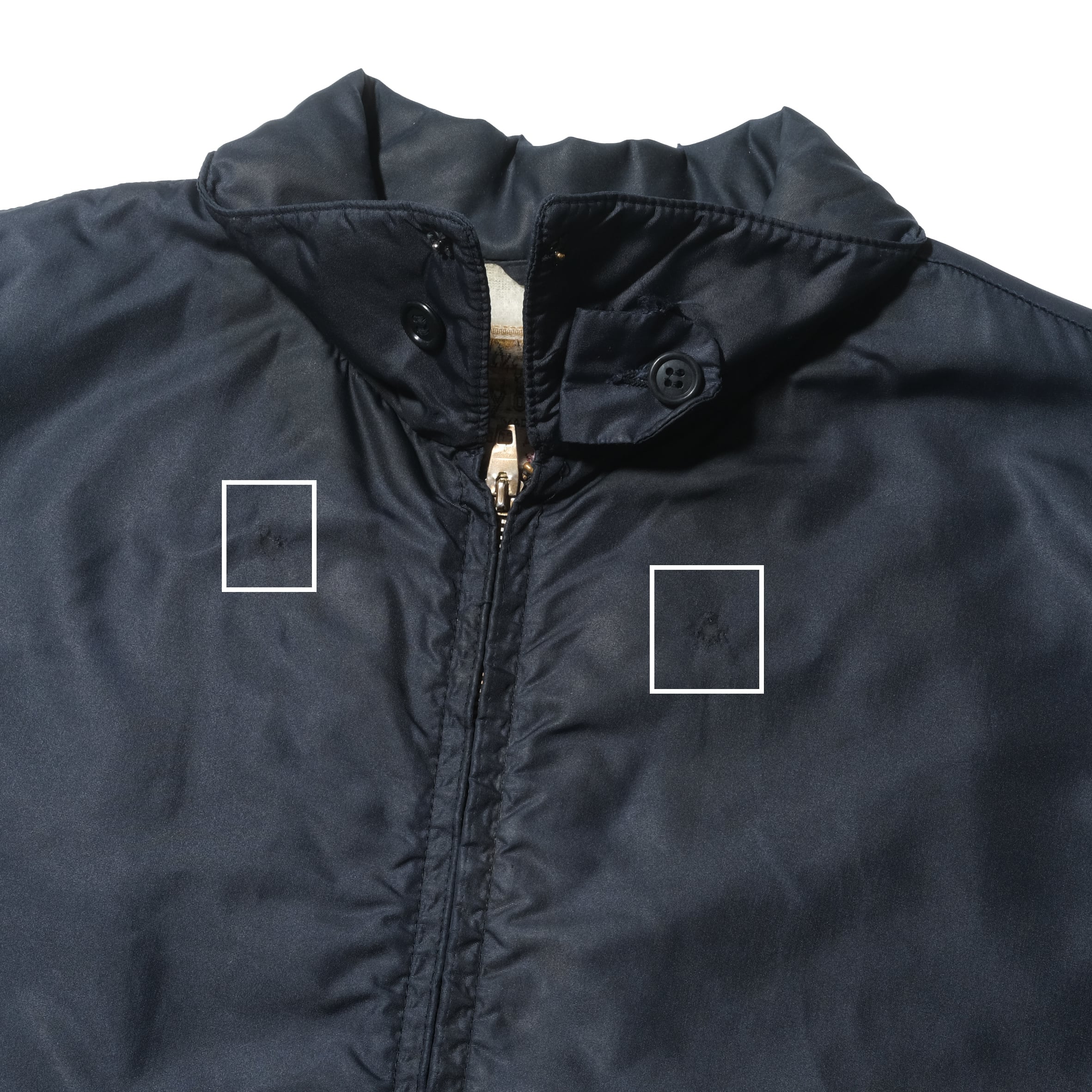 【状態】全体的に着用感、スレ。薄汚れ。右袖ボタンが欠損。右脇部、左ポケットにほつれがあったため当店でリペアいたしました。ジップエンドに劣化(使用可能です)その他目立つダメージやヨゴレなど見当たりません。