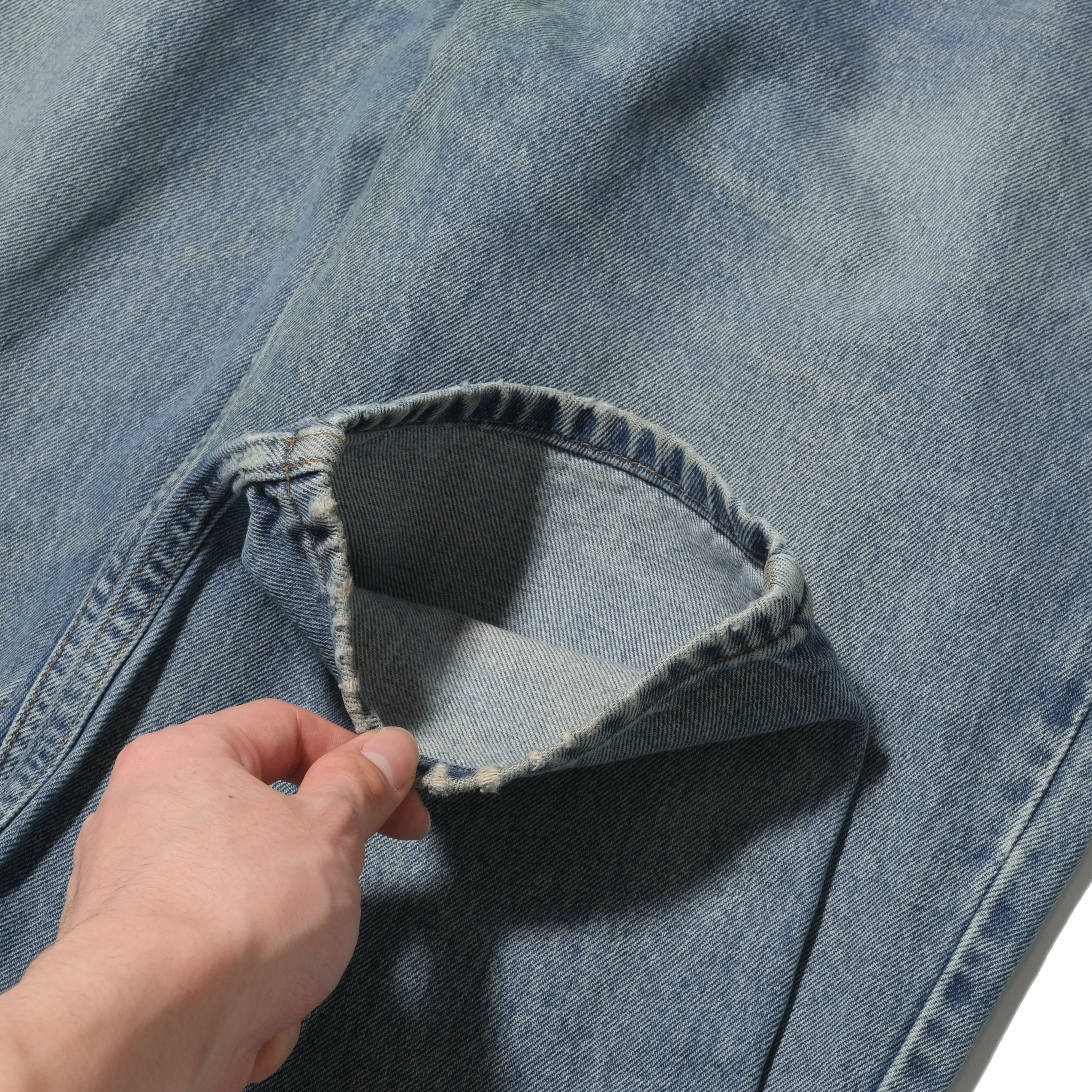 程よく全体的にフェードした質感、36x30の表記サイズですが実寸は37x30.5程度。