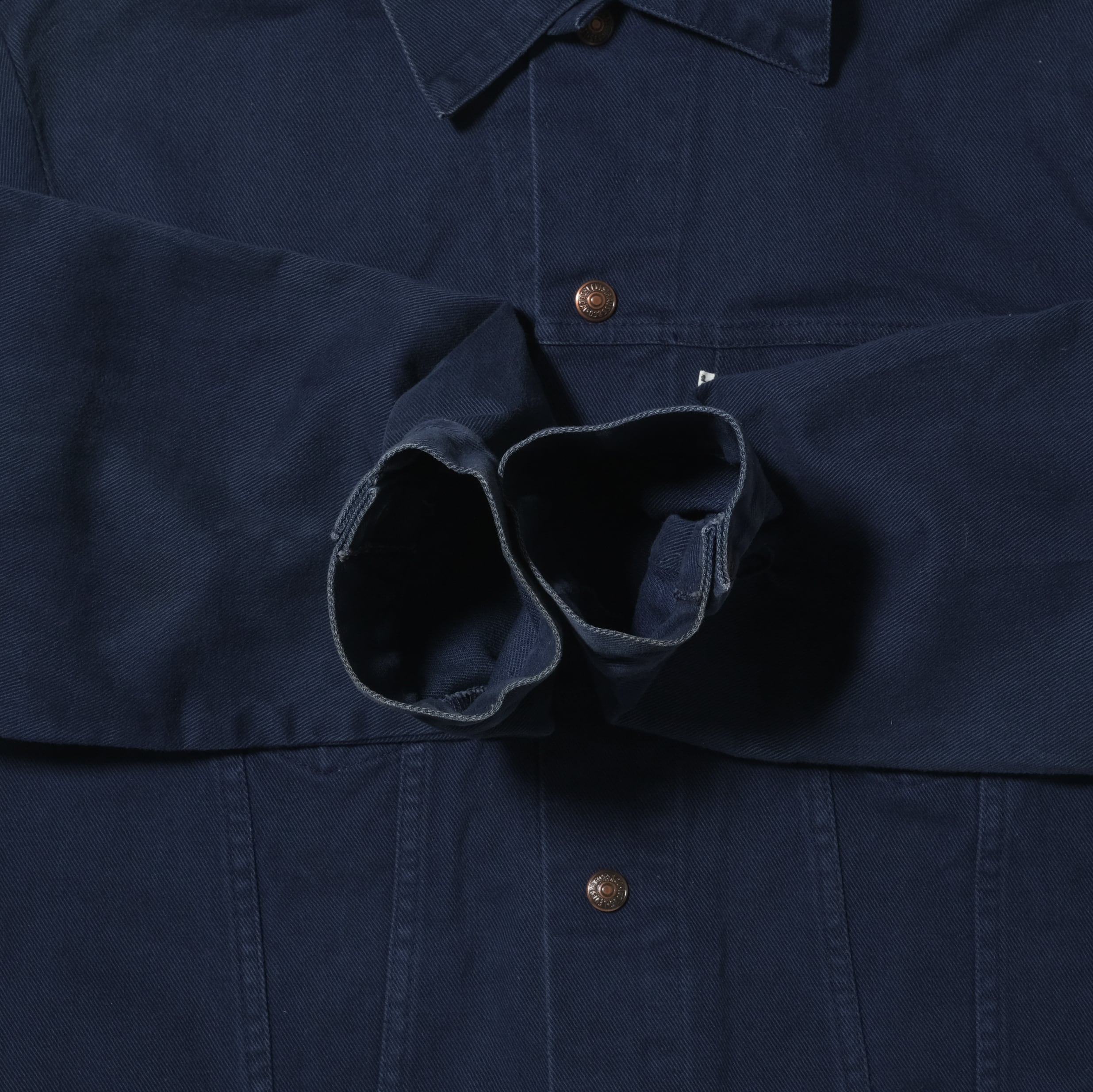 デニムジャケットももちろん最高なのですがツイルのものは基本的には色落ちしませんので気兼ねなく着れますし、このカラーは特に使いやすいかと思います。