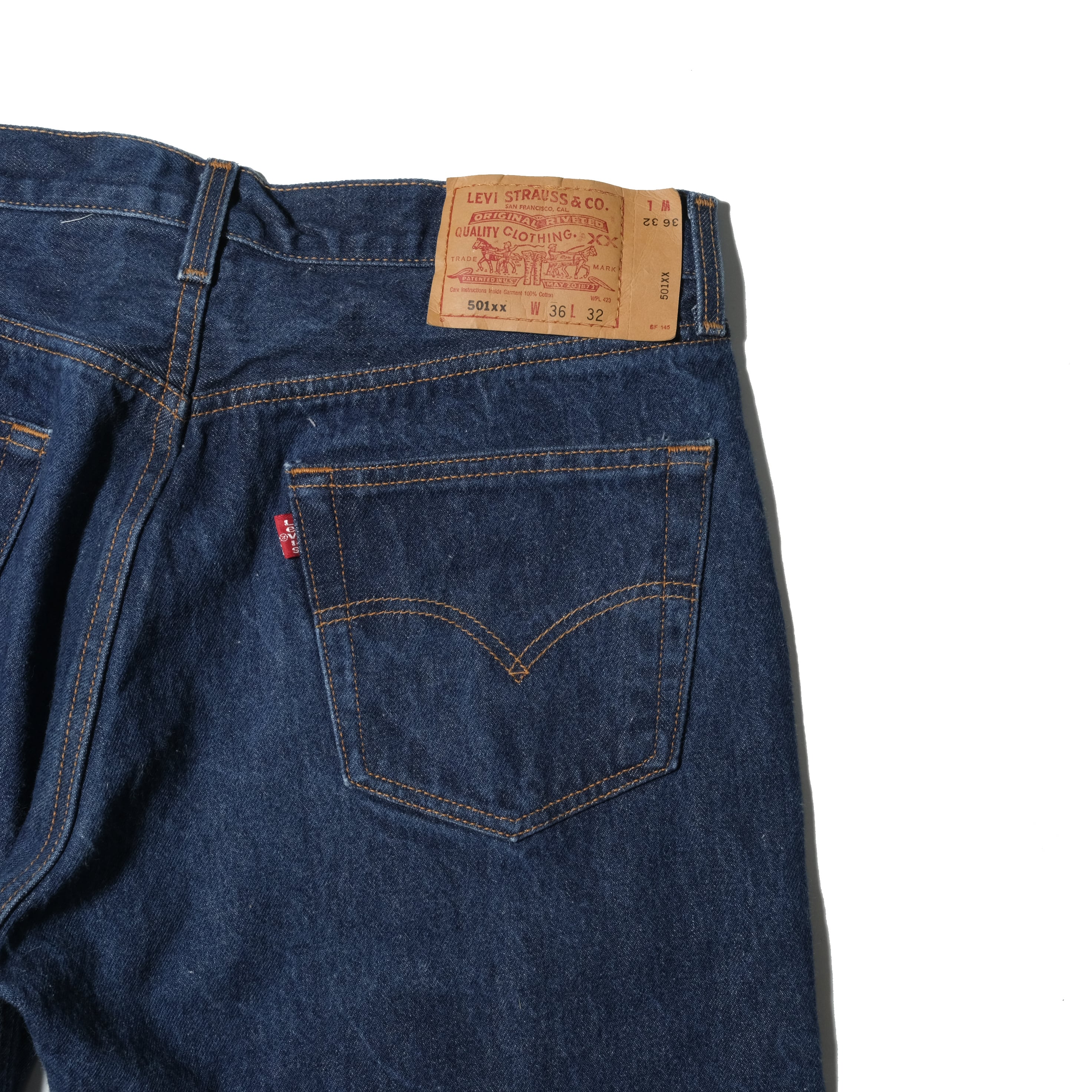 36x32表記からシュリンクが入って実寸は34x29。まさにゴールデンサイズと言えるかと思います。もし同時期に並行して製造されているUSA製のものでしたら倍程度のプライスになるかと思います。ガシガシ着用する派の方、ぜひこちらもご検討ください。
