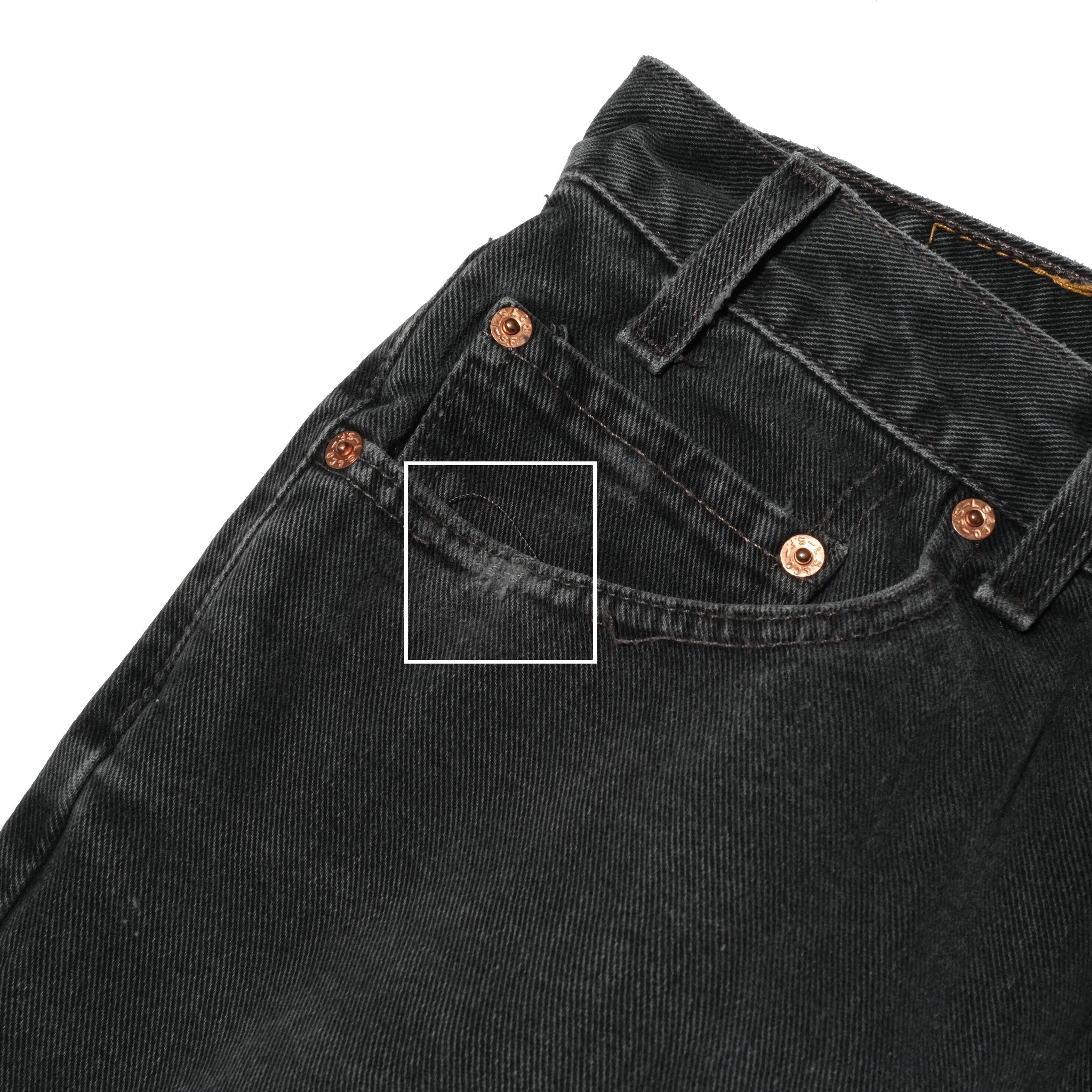 【状態】着用感、スレ。フロントに薄汚れ。右ポケットにダメージ。その他目立つダメージやヨゴレなど見当たりません。