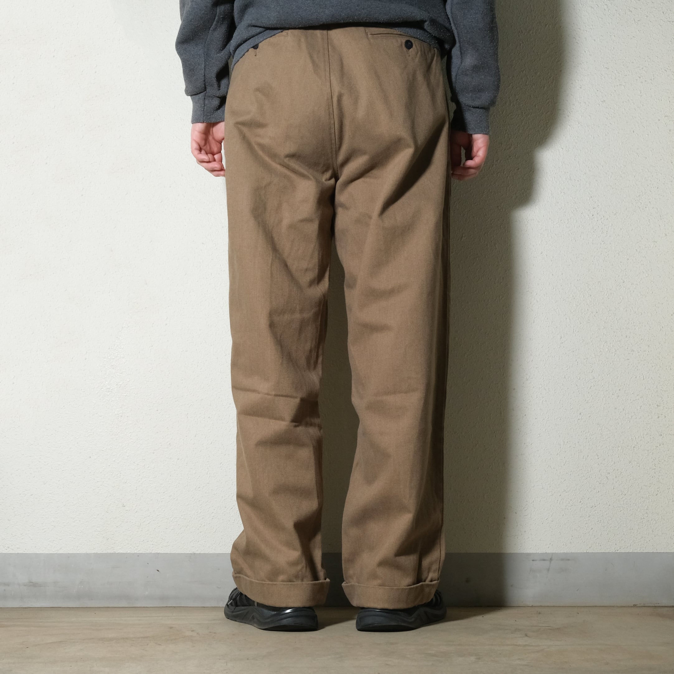 90'sのタグ、HAMPTONとモデル名のつく一本。厚手のモールスキンっぽい起毛感のある生地。そしてこの太めのシルエットが非常にクールです。