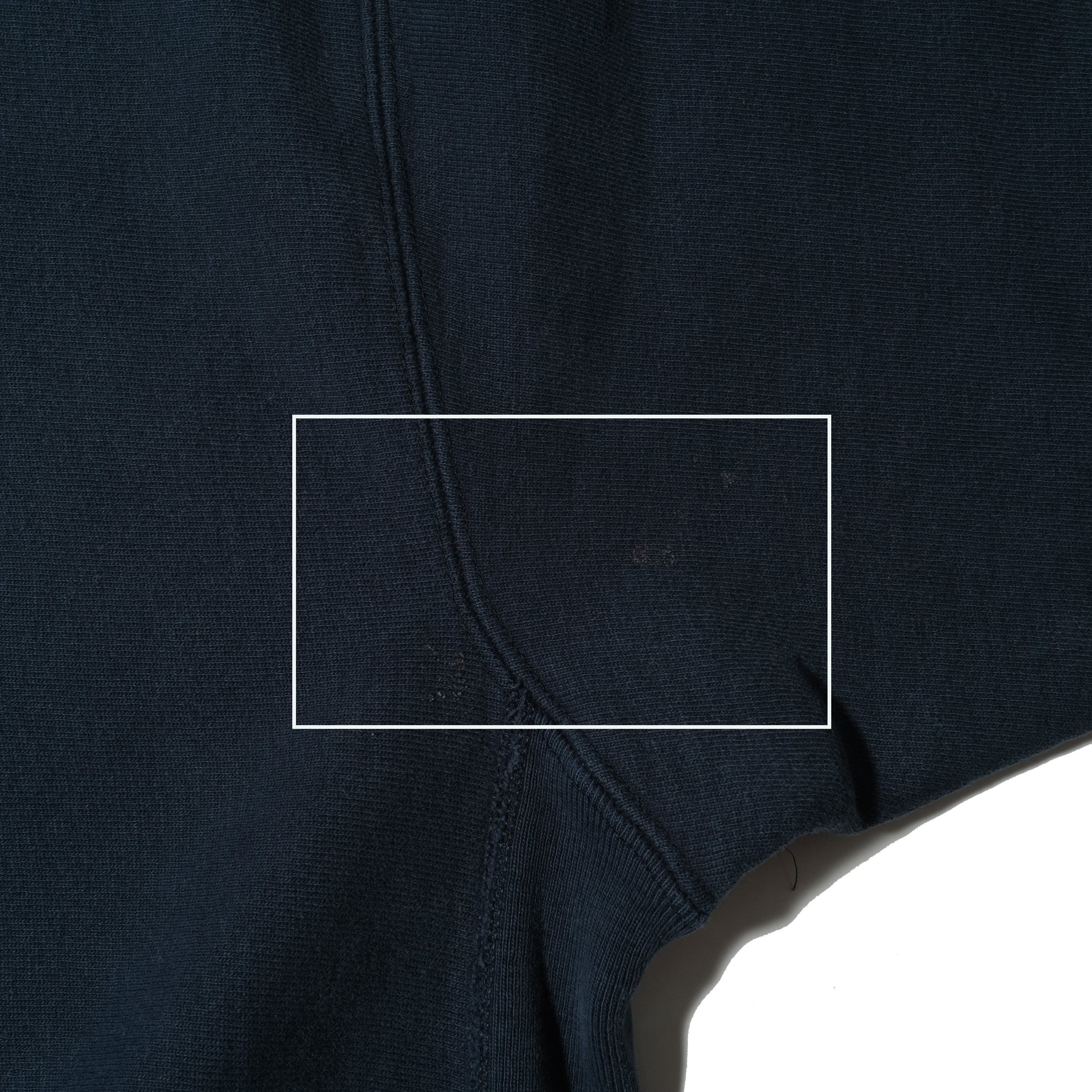 【状態】全体的に着用感、スレ。薄汚れ。左右袖リブに小さなダメージ。その他目立つダメージやヨゴレなど見当たりません。
