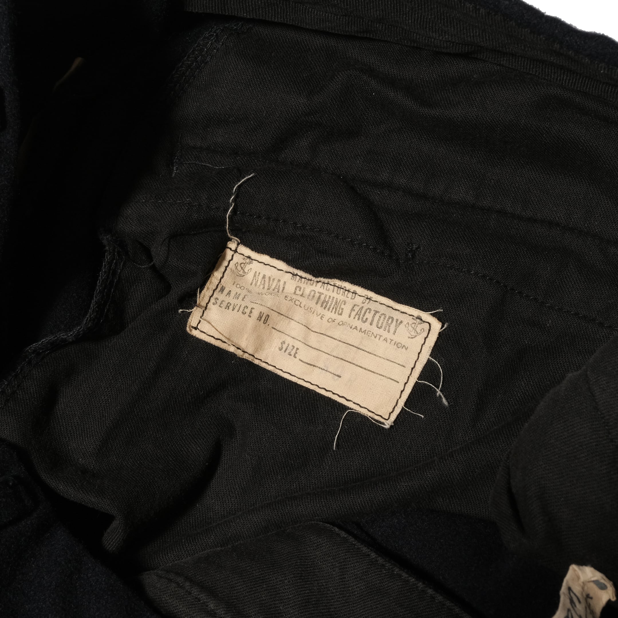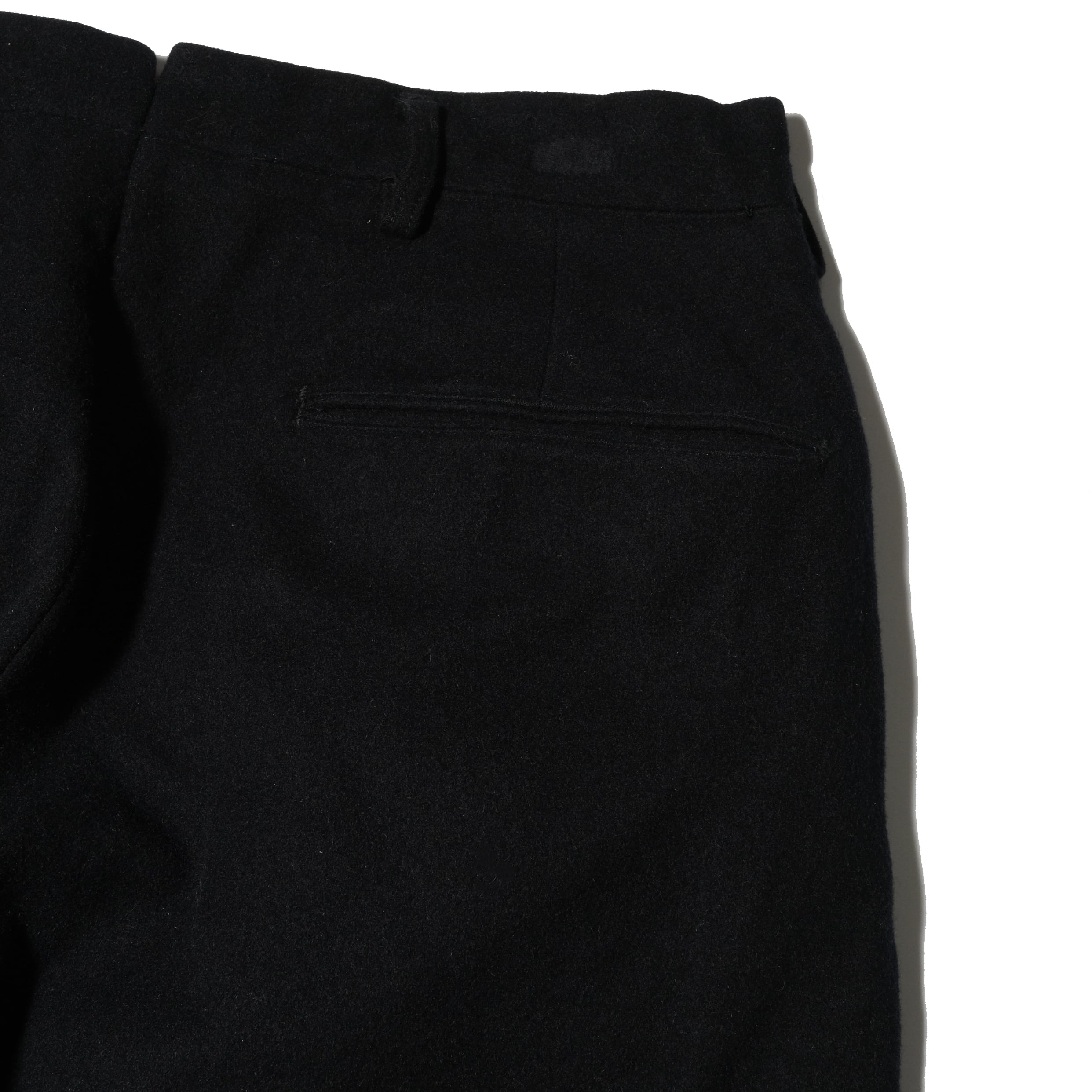 40's〜の年代、フレアシルエットが非常にクールな一本。ほぼ黒に近いダークネイビーカラー、これがビンテージかつミリタリーというのが最高ですね。