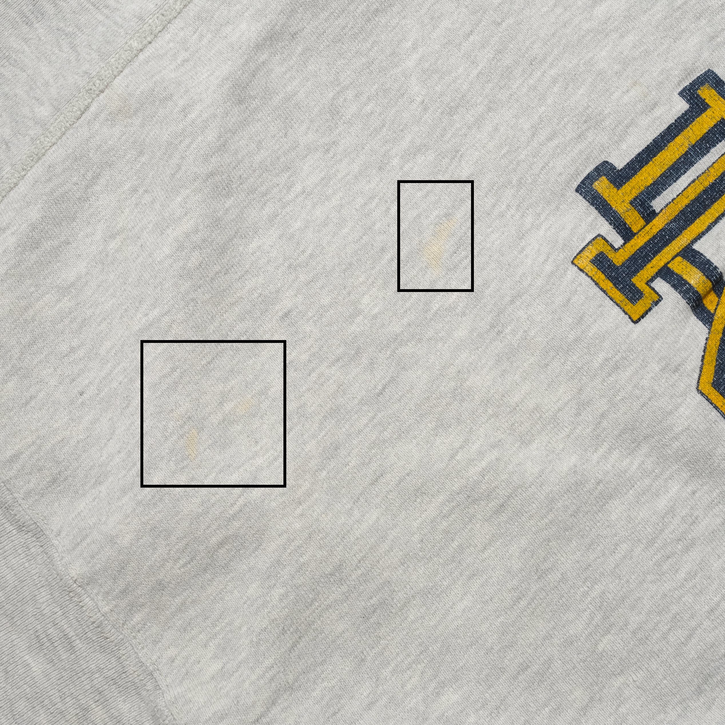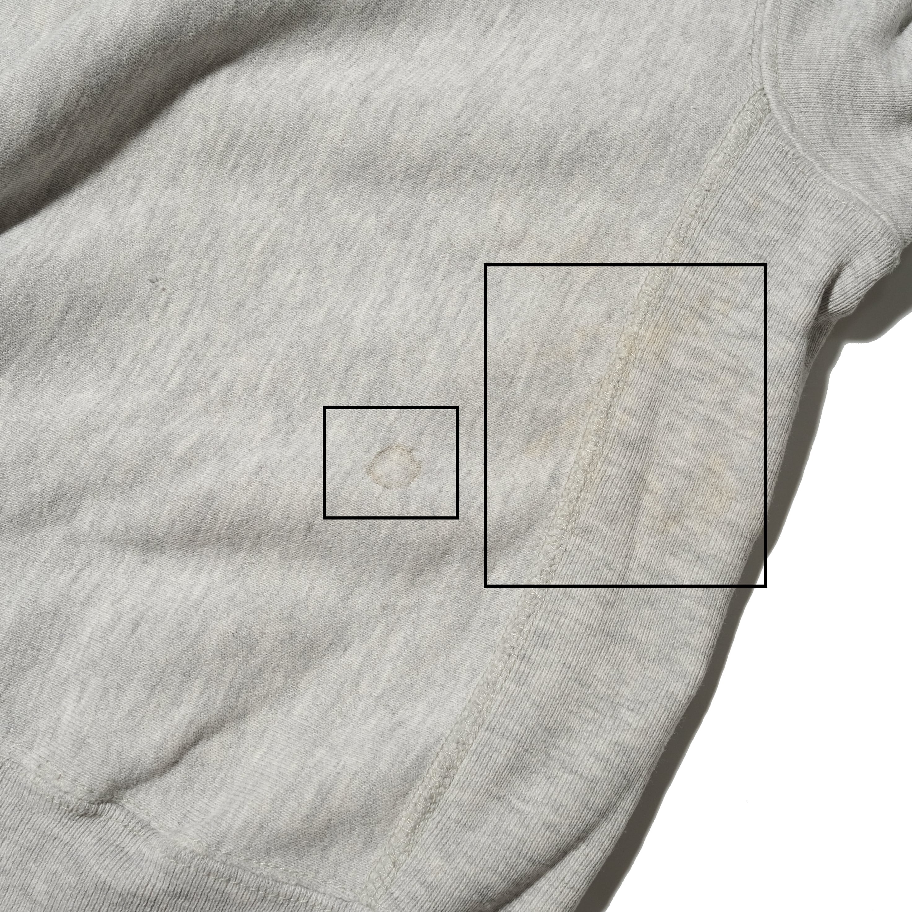 【状態】全体的に着用感、スレ。フロントにペンキ。バック、袖、裾リブにダメージ。袖部、バックに汚れ。その他目立つダメージやヨゴレなど見当たりません。