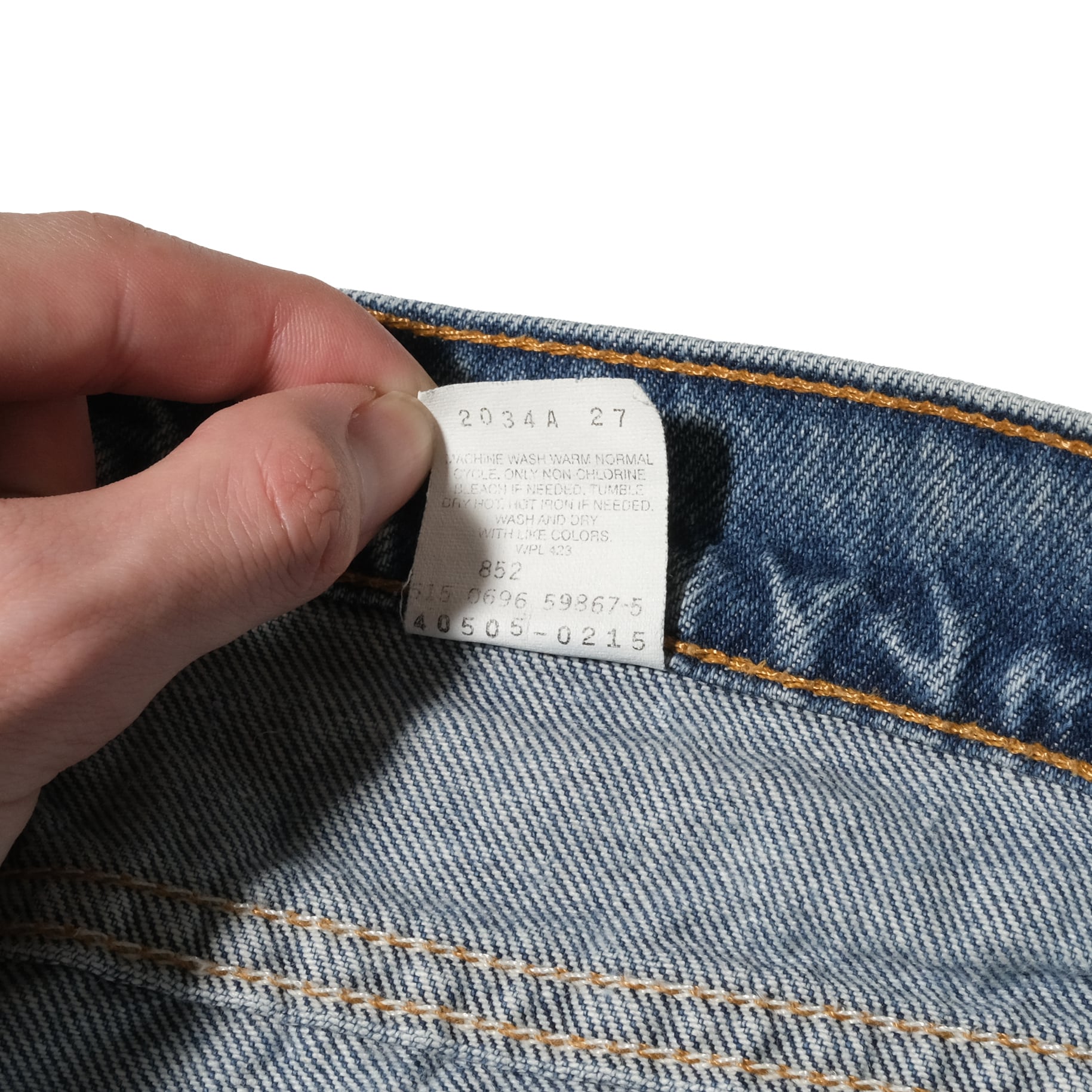 オレンジタブの505はやや細めですのでウエストは少し緩めがベストですね。