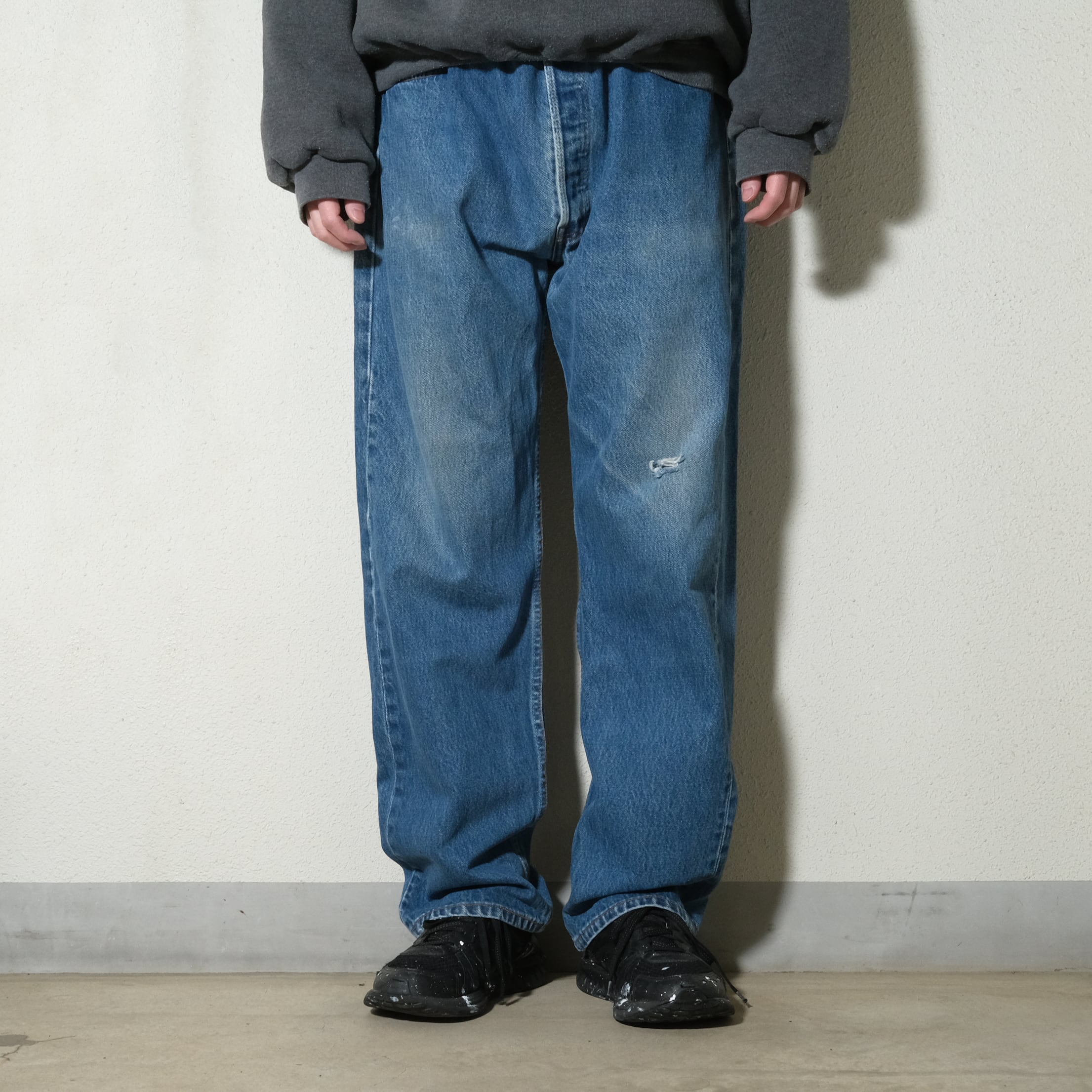左膝にダメージがありますのでそれを加味したプライスに設定しました。ゆるく穿ける501をお探しだった方はぜひ。