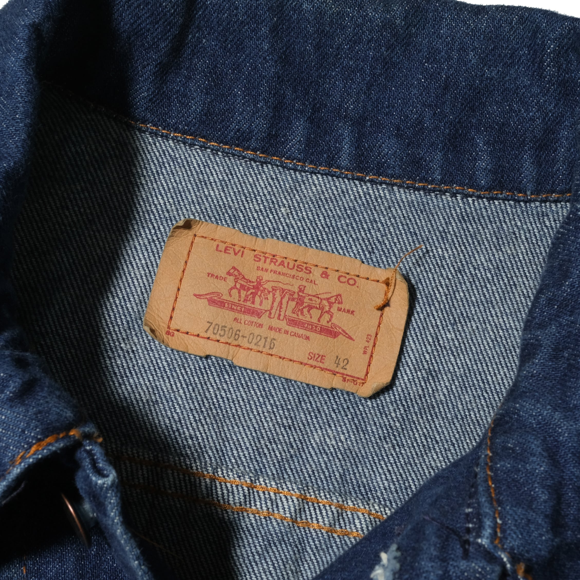 80'sのタグ、70506品番でカナダ製の個体。ウォッシュ回数少なめのかなりコンディションの良い個体です。サイズ表記は42、やはりこのサイズから身幅と着丈のバランスが同じくらいになってきますので、シルエット的にはこれ以上のサイズで探されている方が多い印象です。