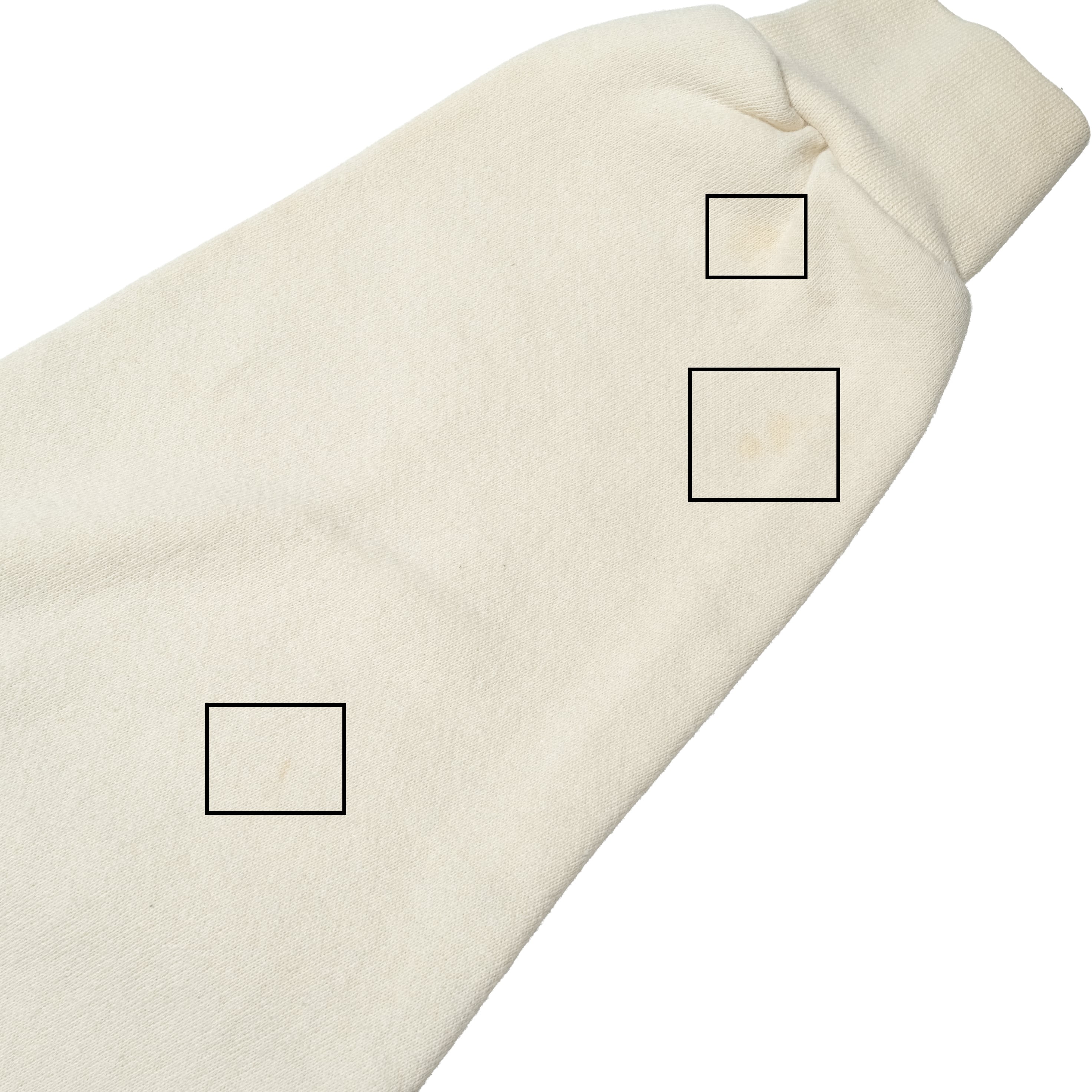 【状態】全体的に着用感、スレ。フロントにシミ、スレ。袖部に汚れ。その他目立つダメージやヨゴレなど見当たりません。